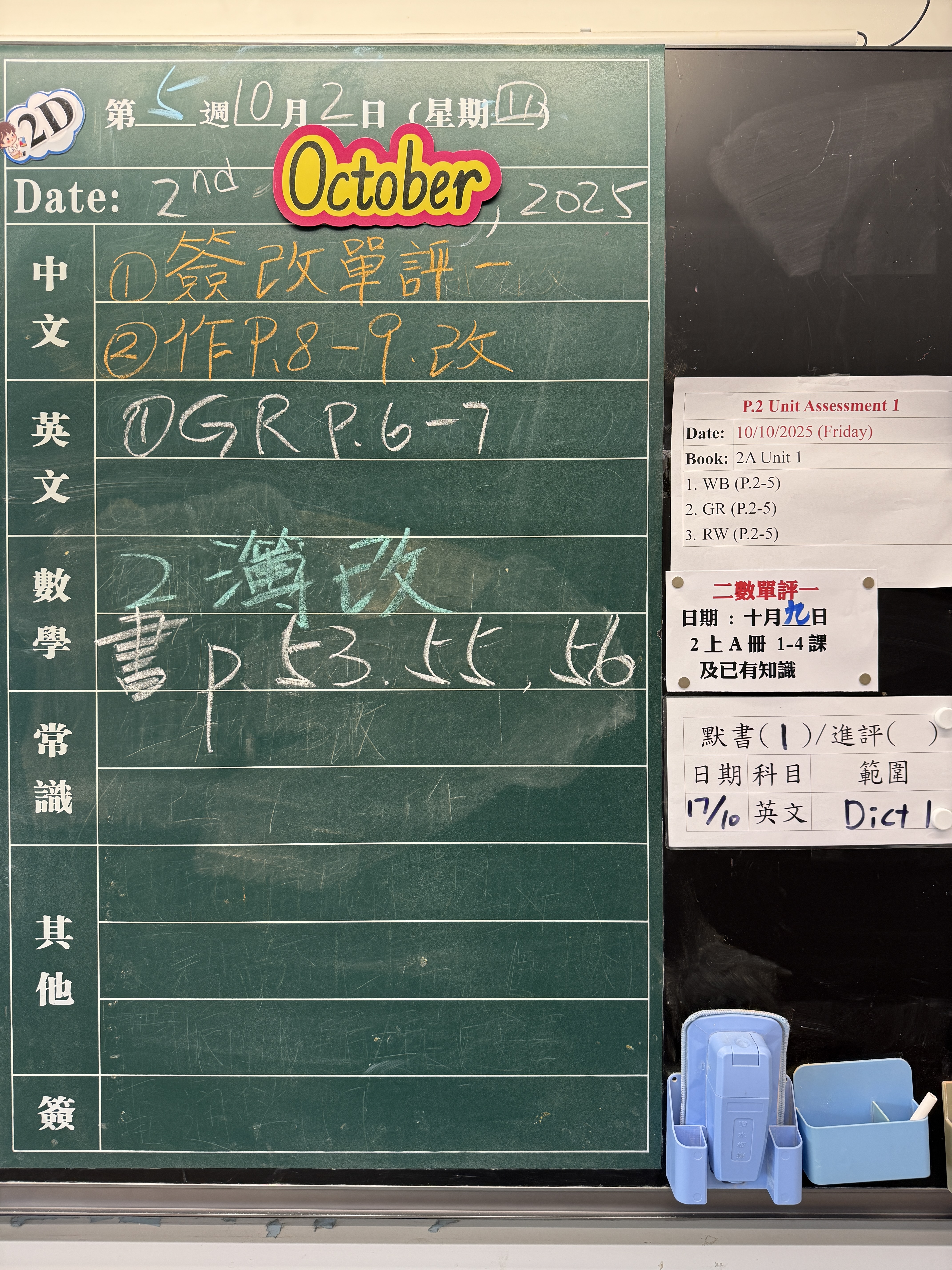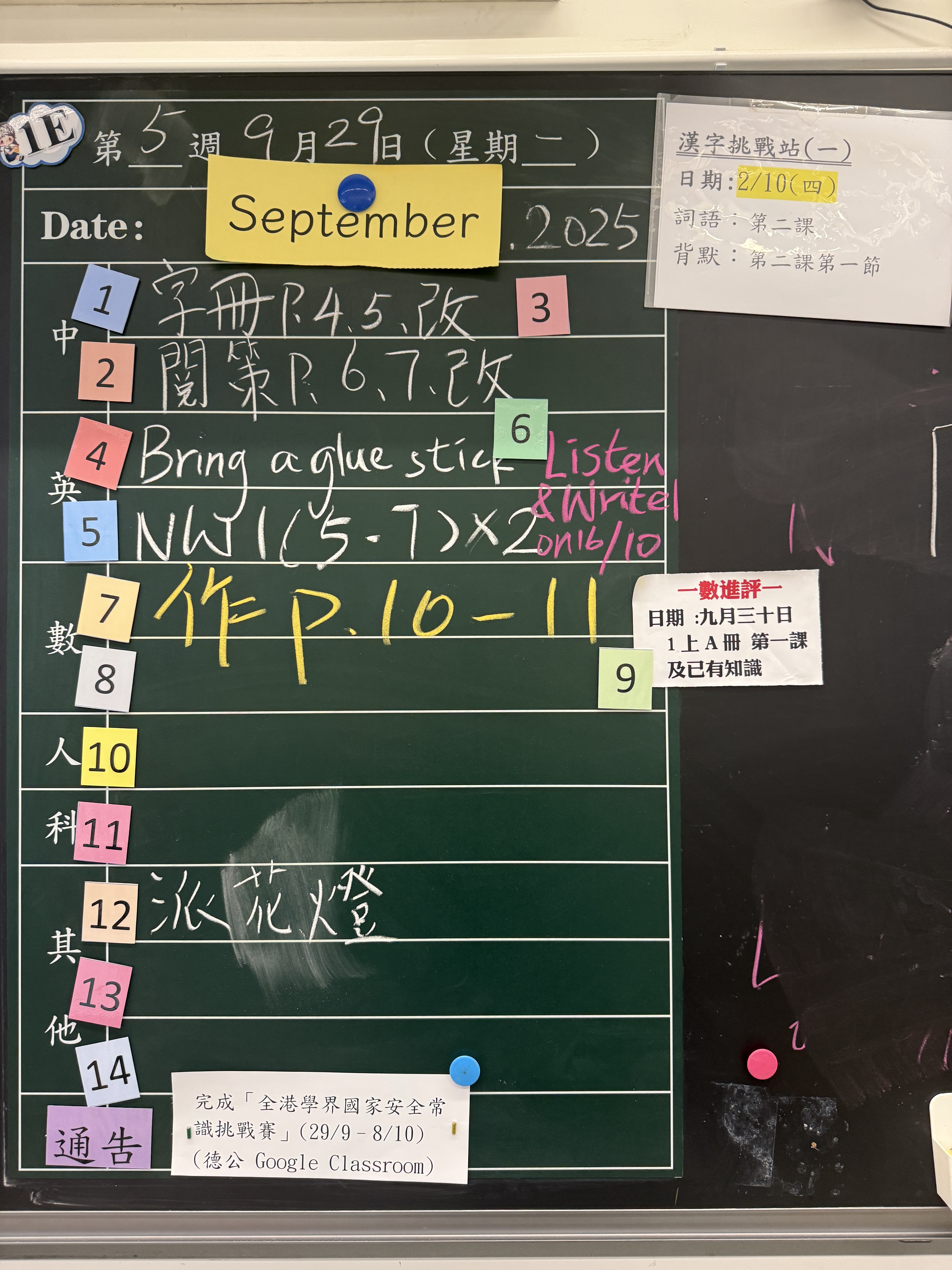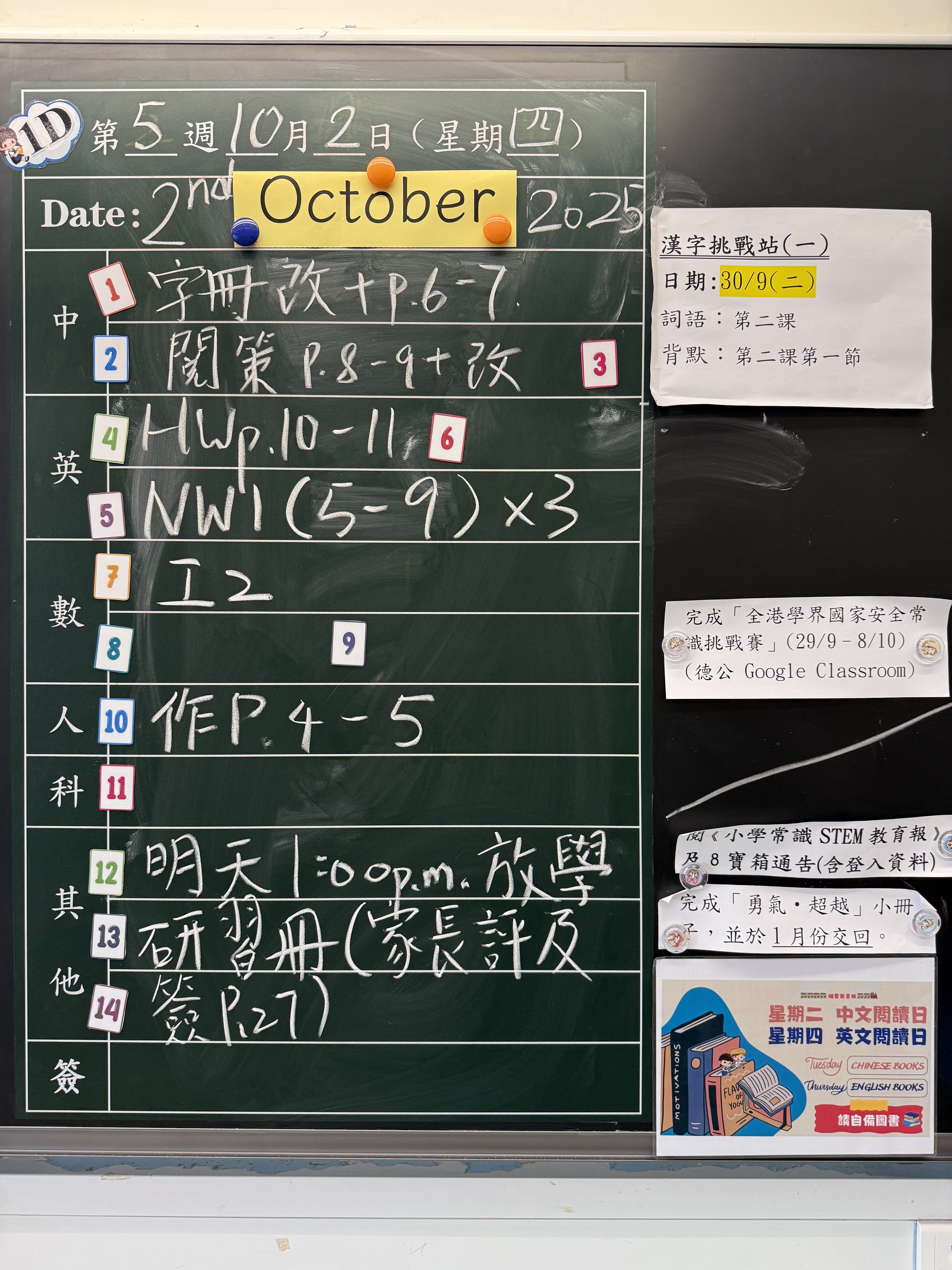 1D | 星期一 | 星期二 | 星期三 | 星期四 | 星期五 |