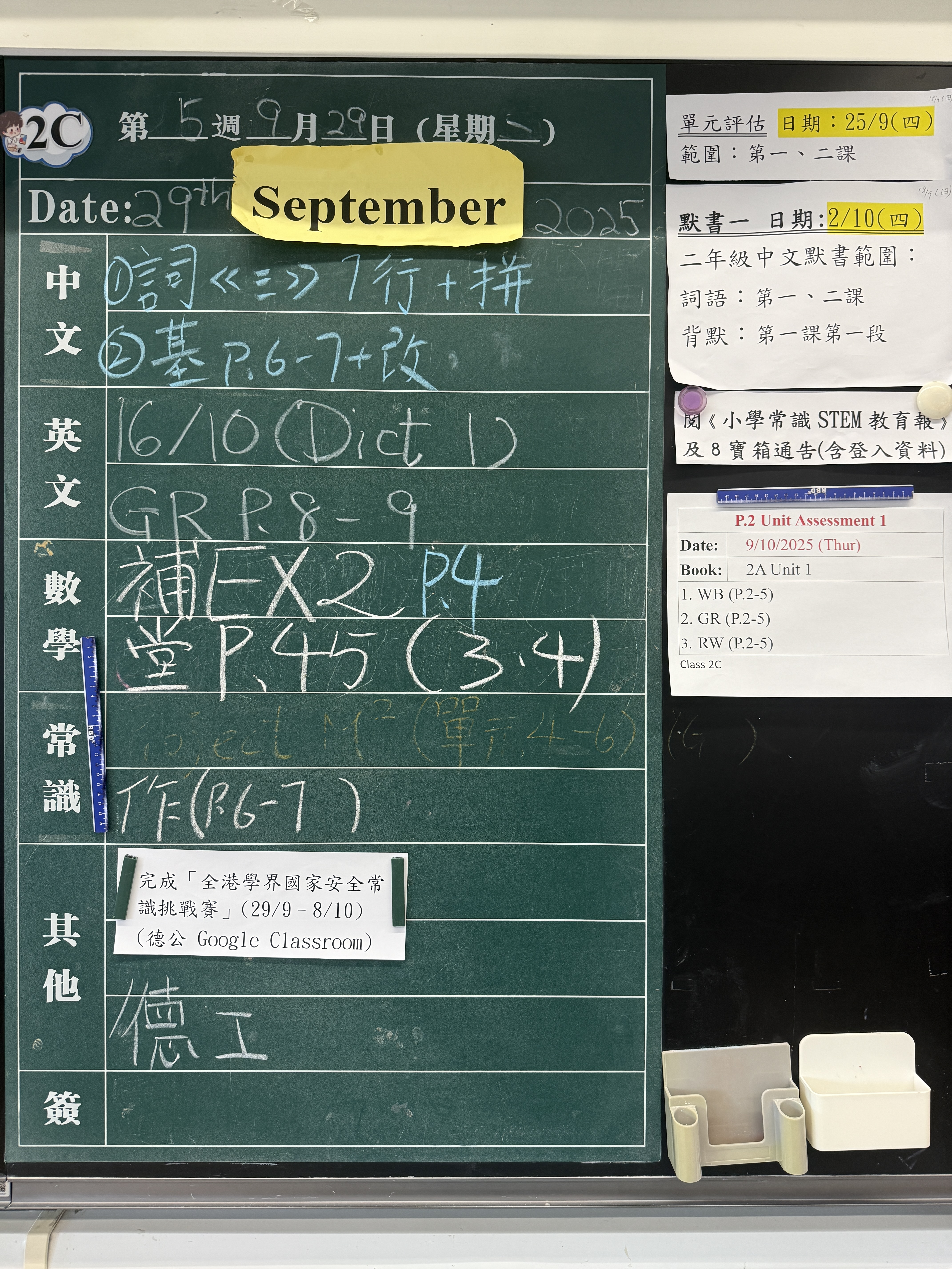 2C | 星期一 | 星期二 | 星期三 | 星期四 | 星期五 |