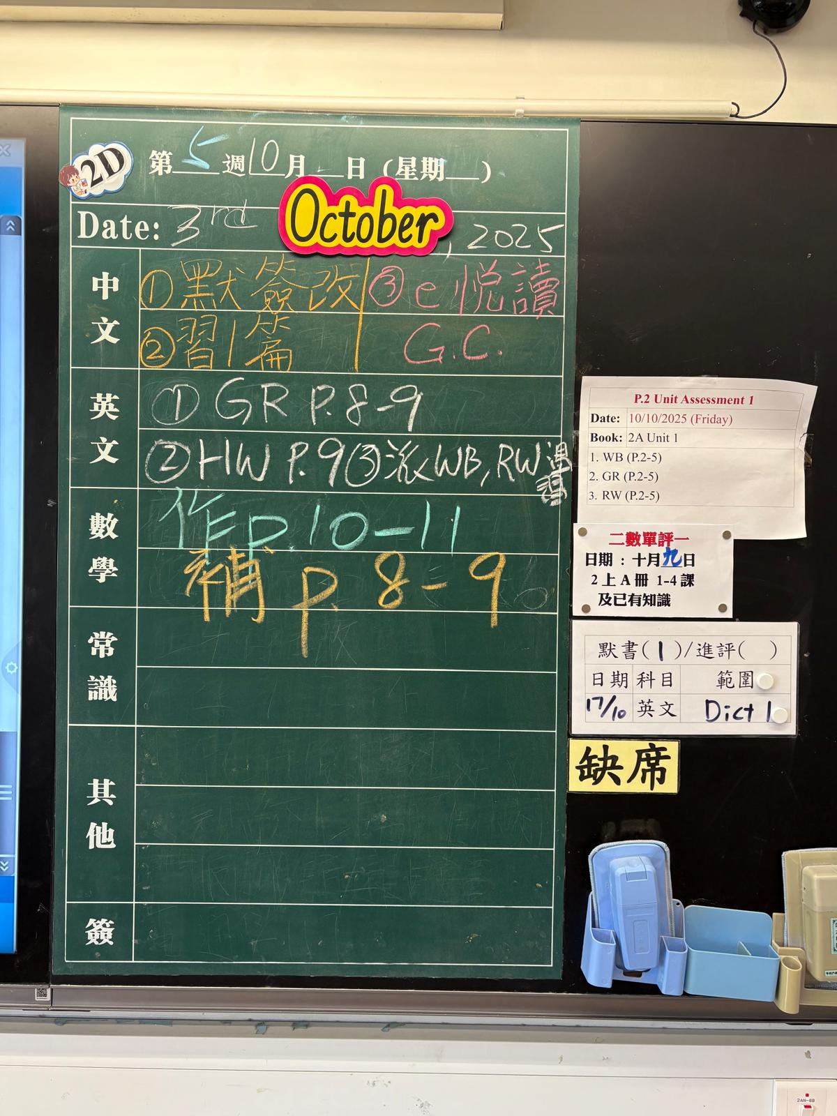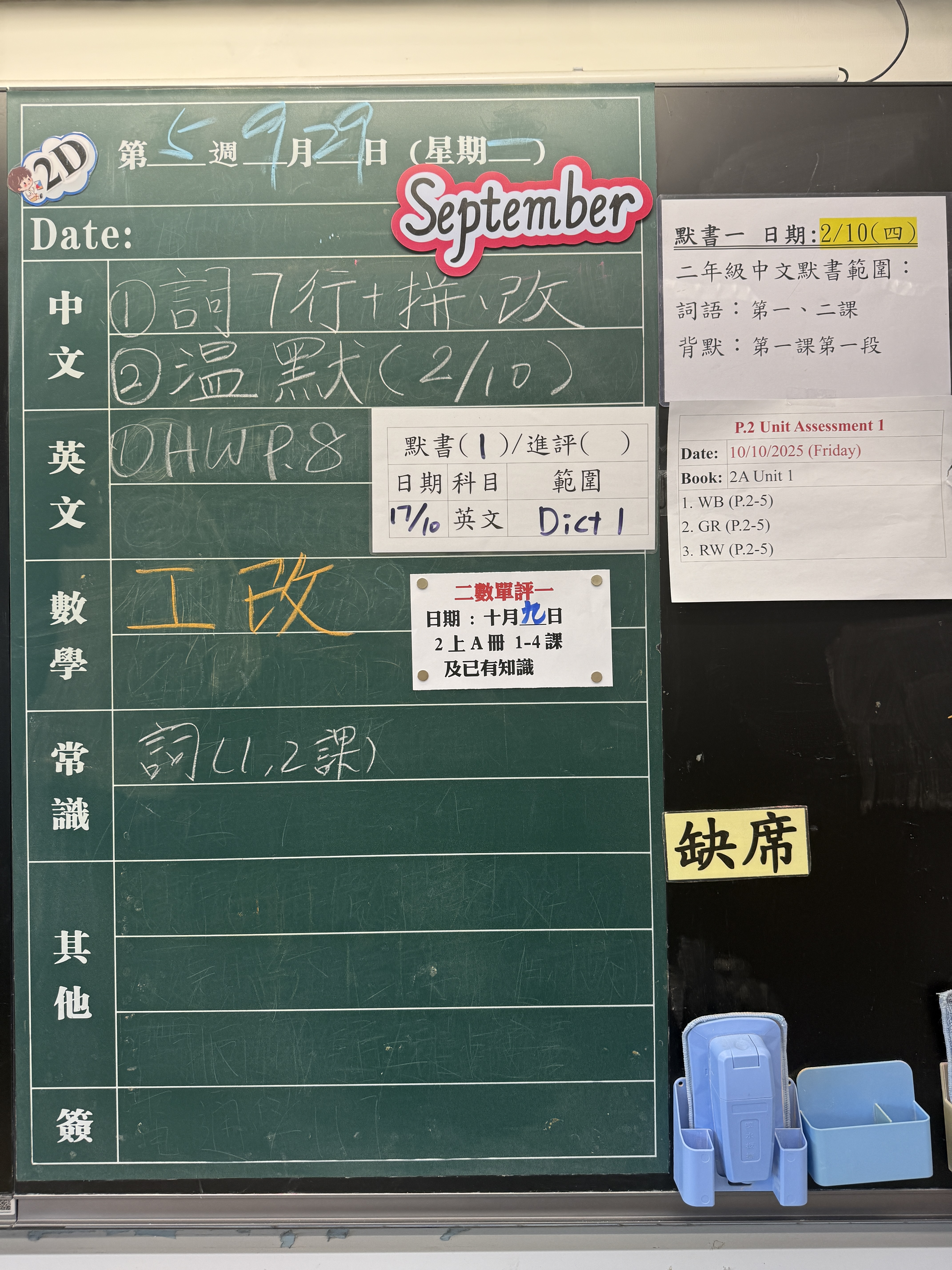 2D | 星期一 | 星期二 | 星期三 | 星期四 | 星期五 |