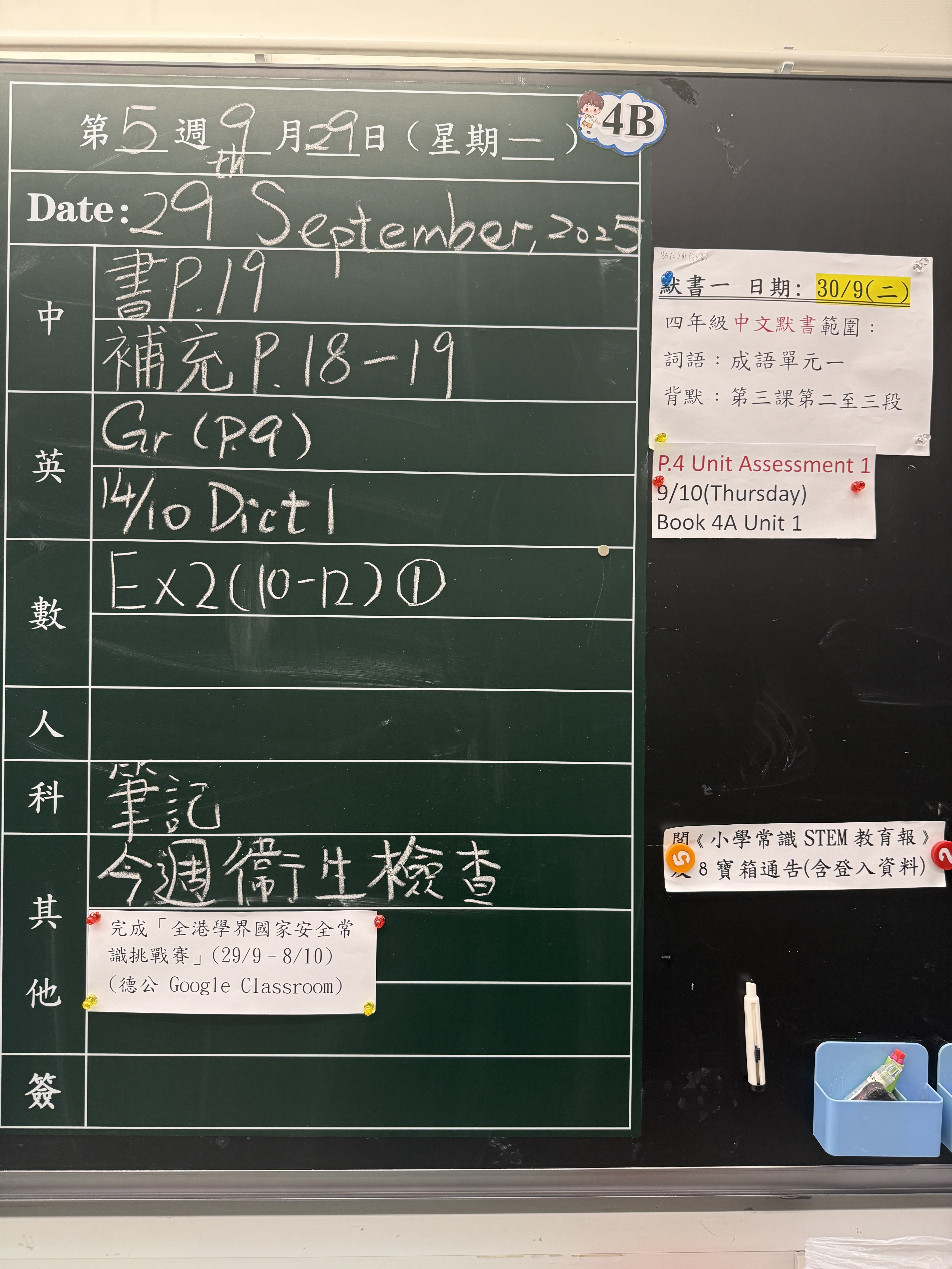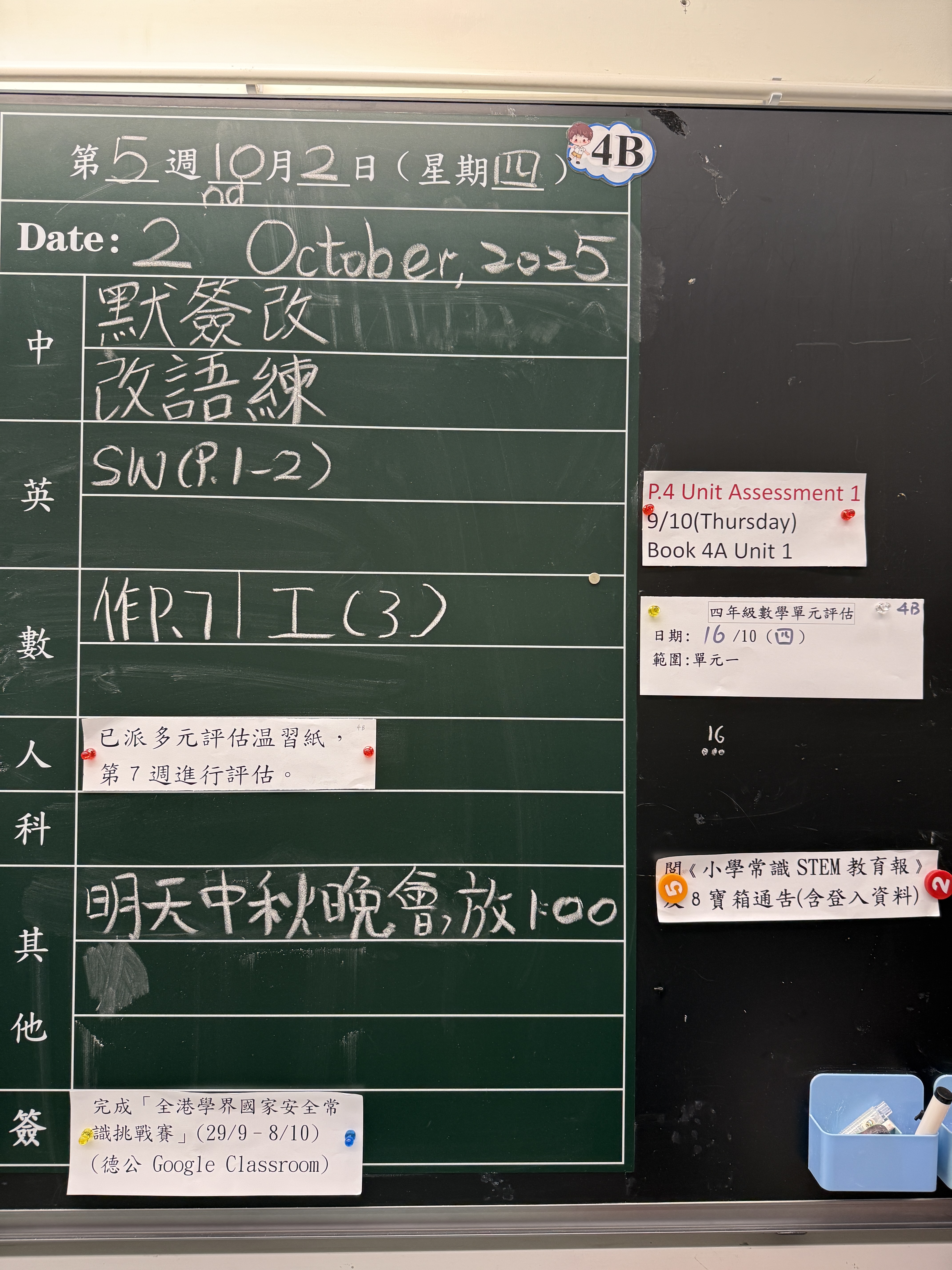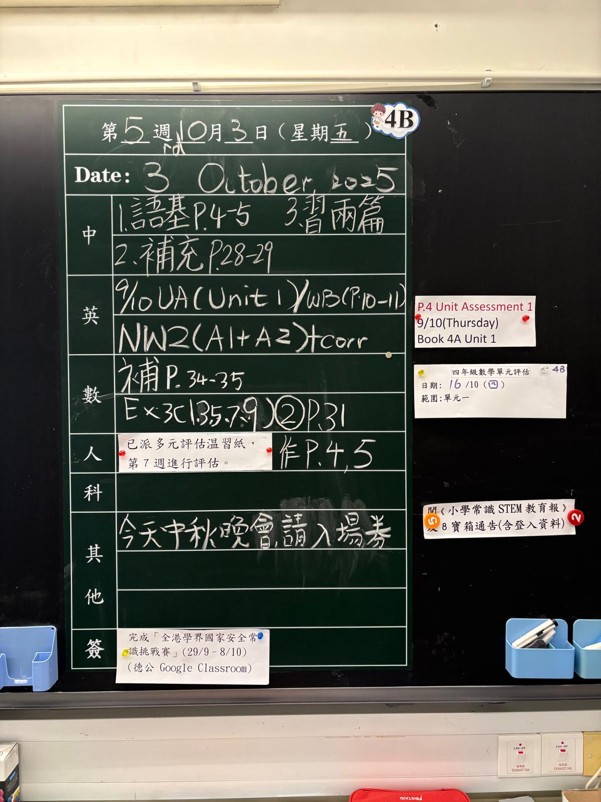 4B | 星期一 | 星期二 | 星期三 | 星期四 | 星期五 |