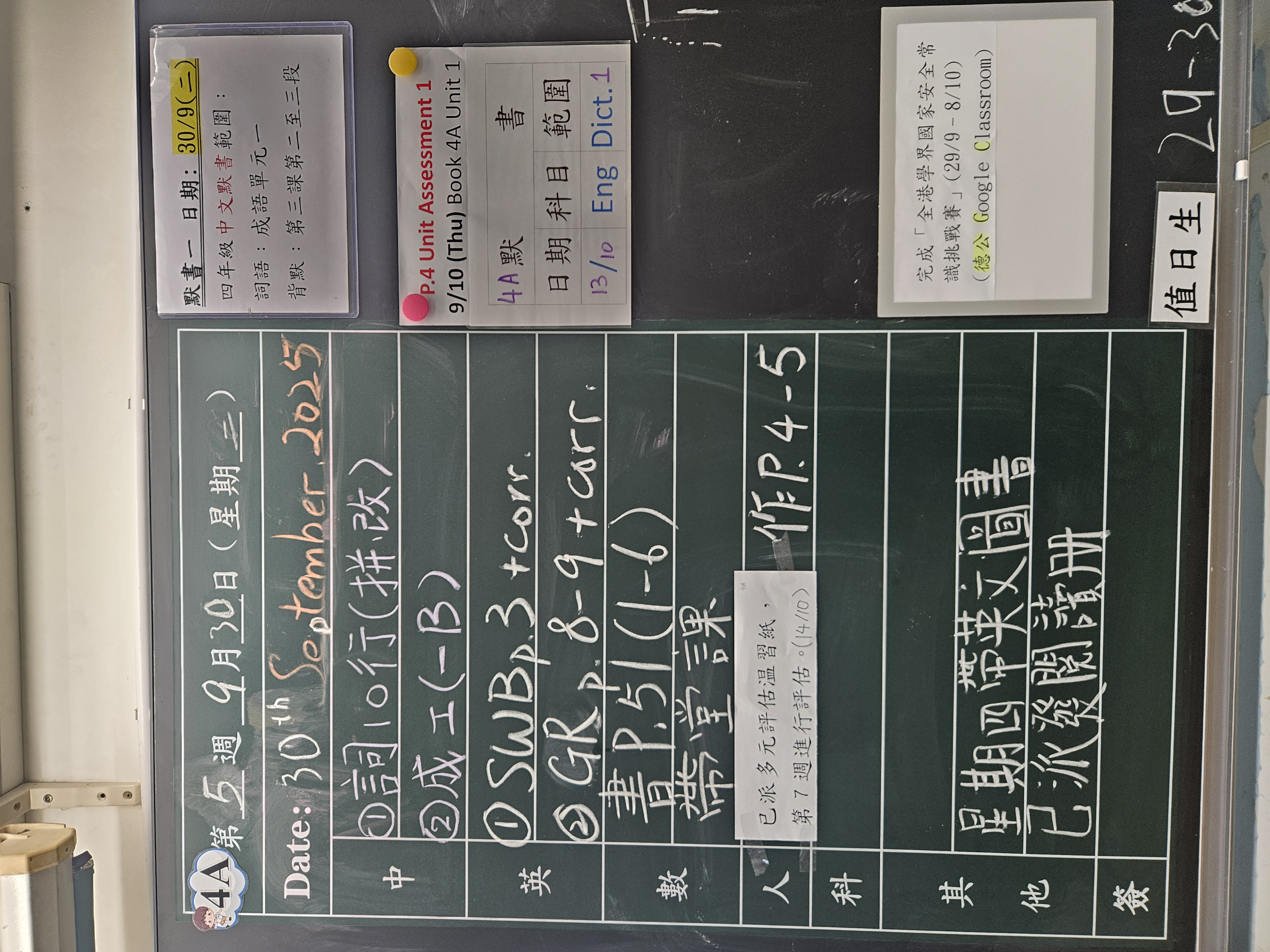 4A | 星期一 | 星期二 | 星期三 | 星期四 | 星期五 |