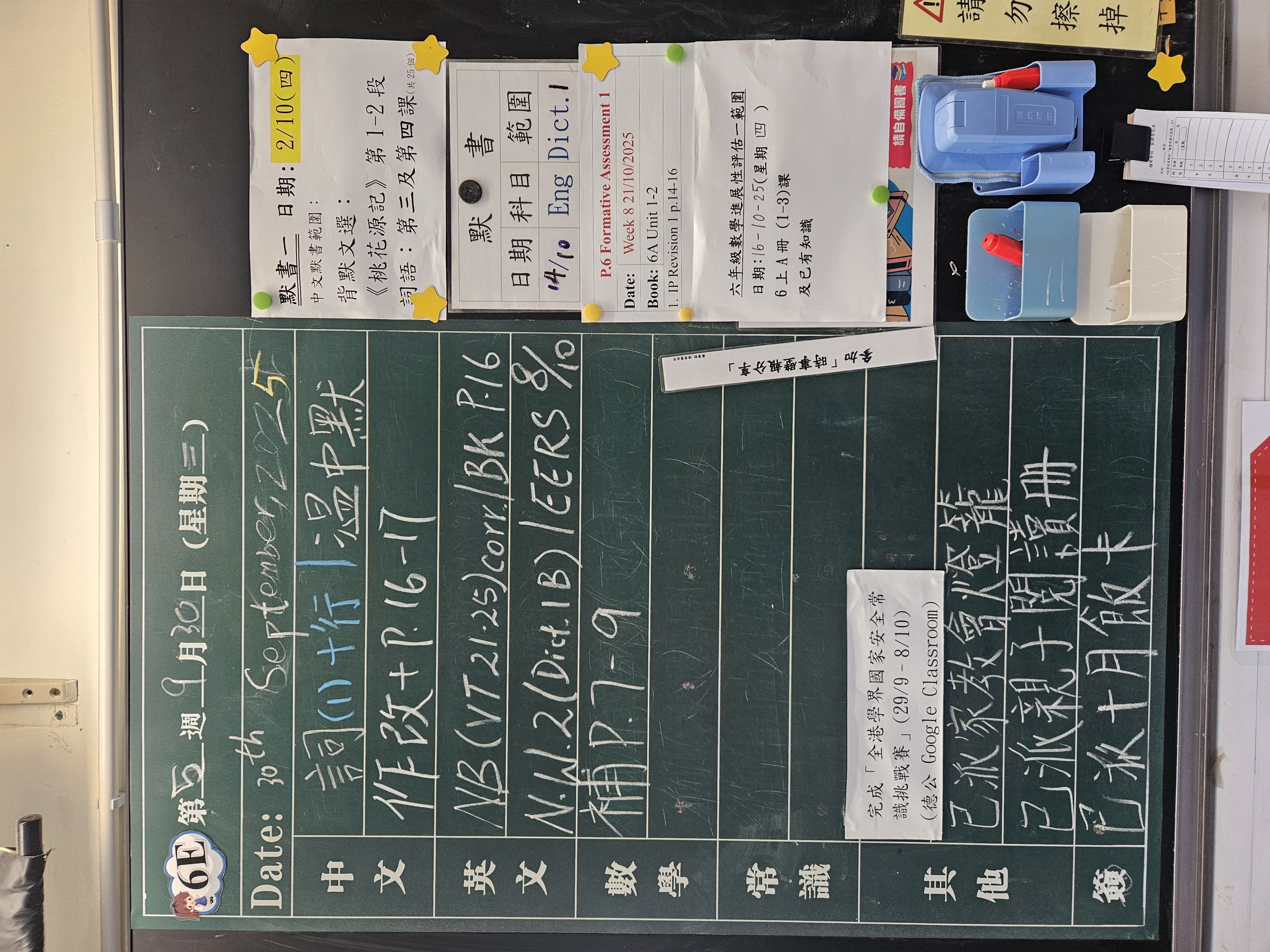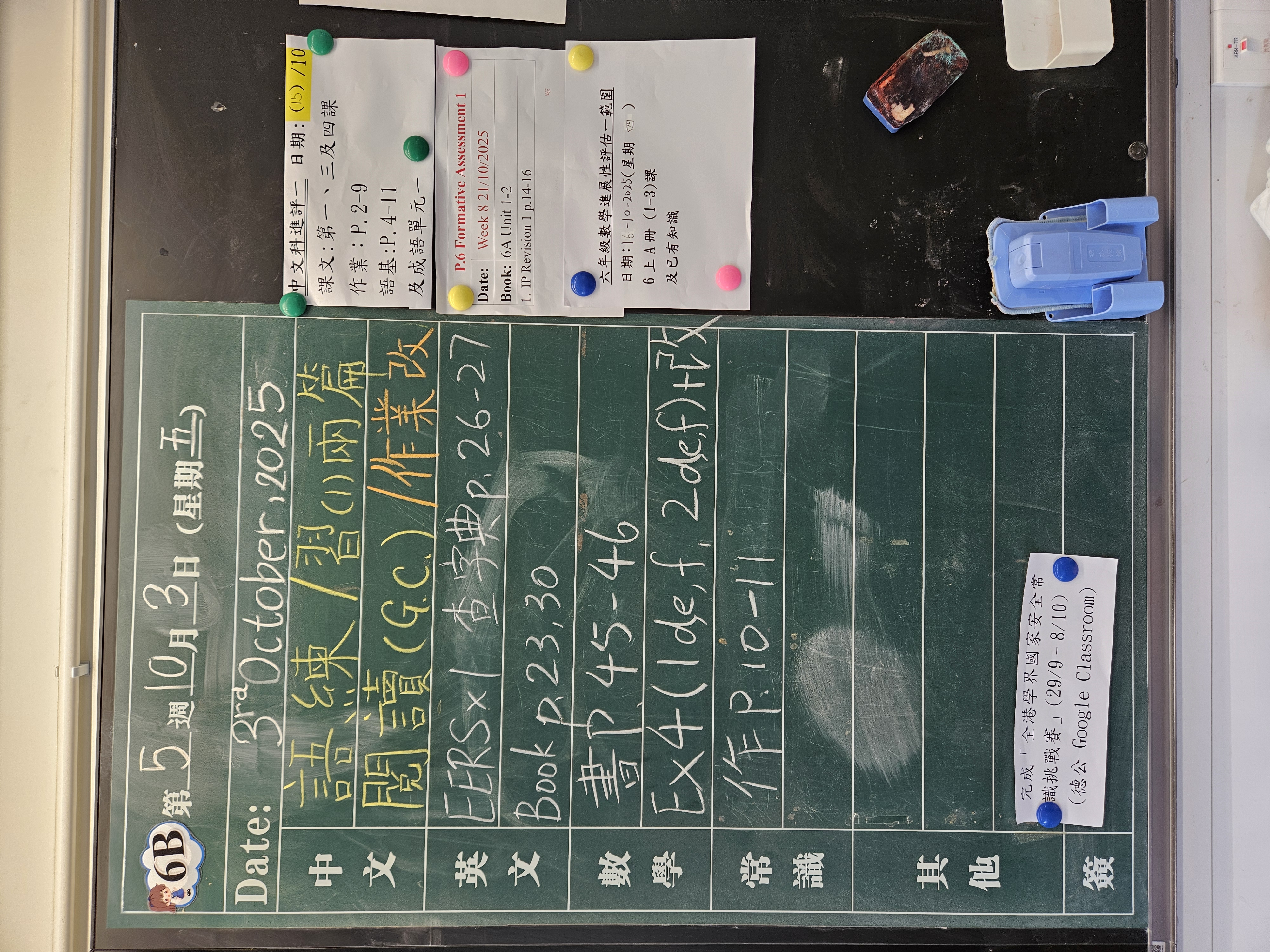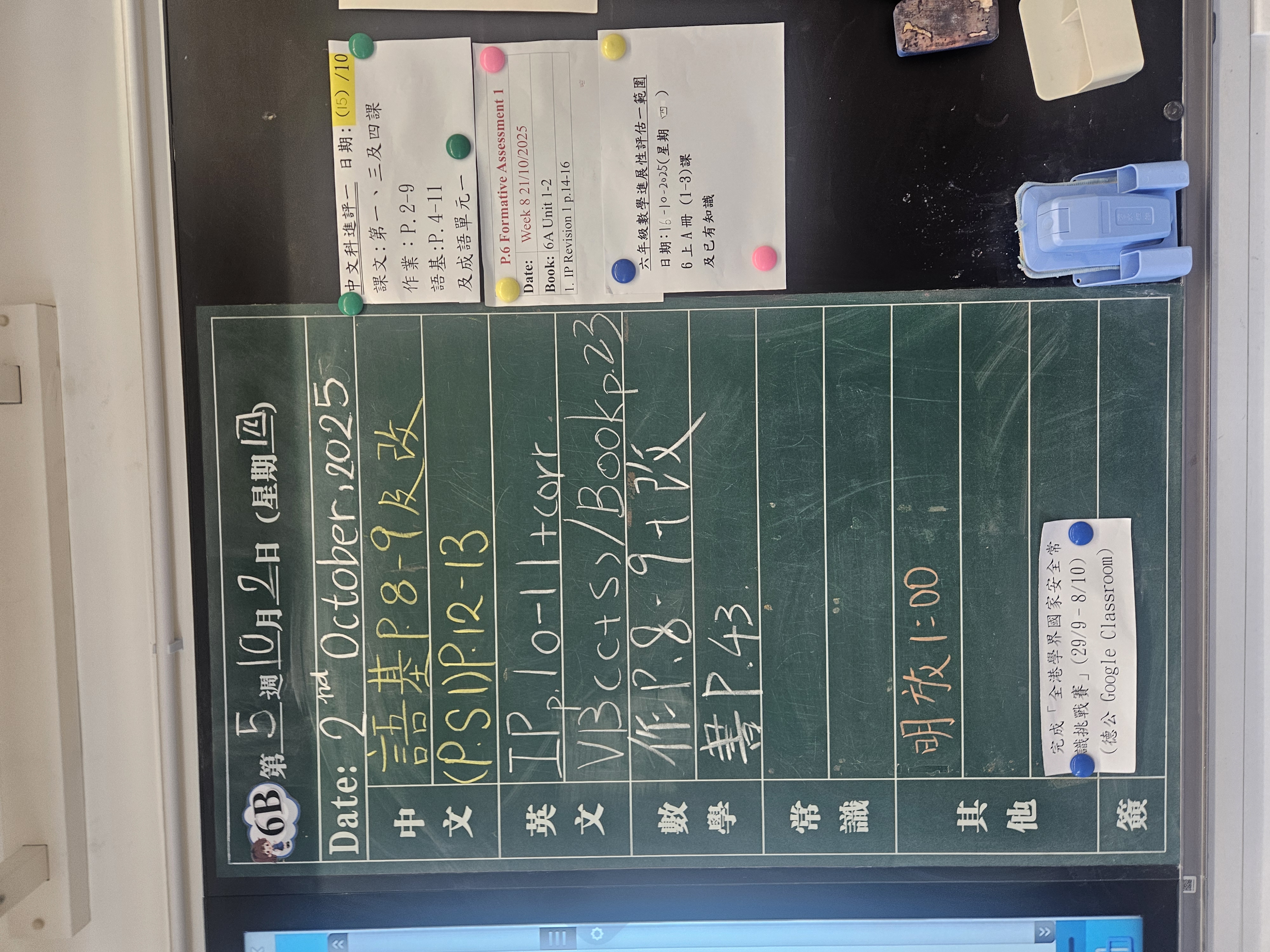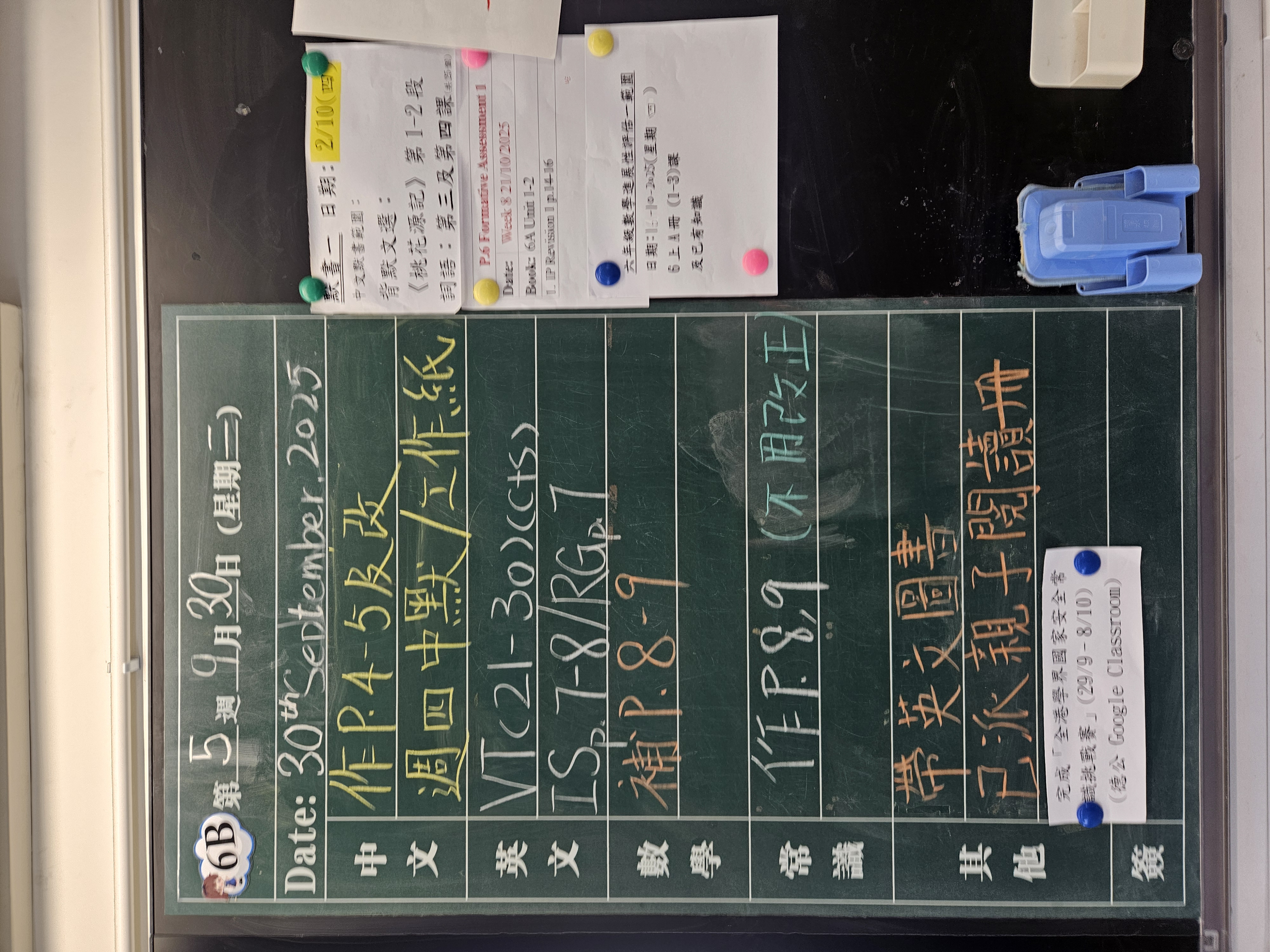 6B | 星期一 | 星期二 | 星期三 | 星期四 | 星期五 |