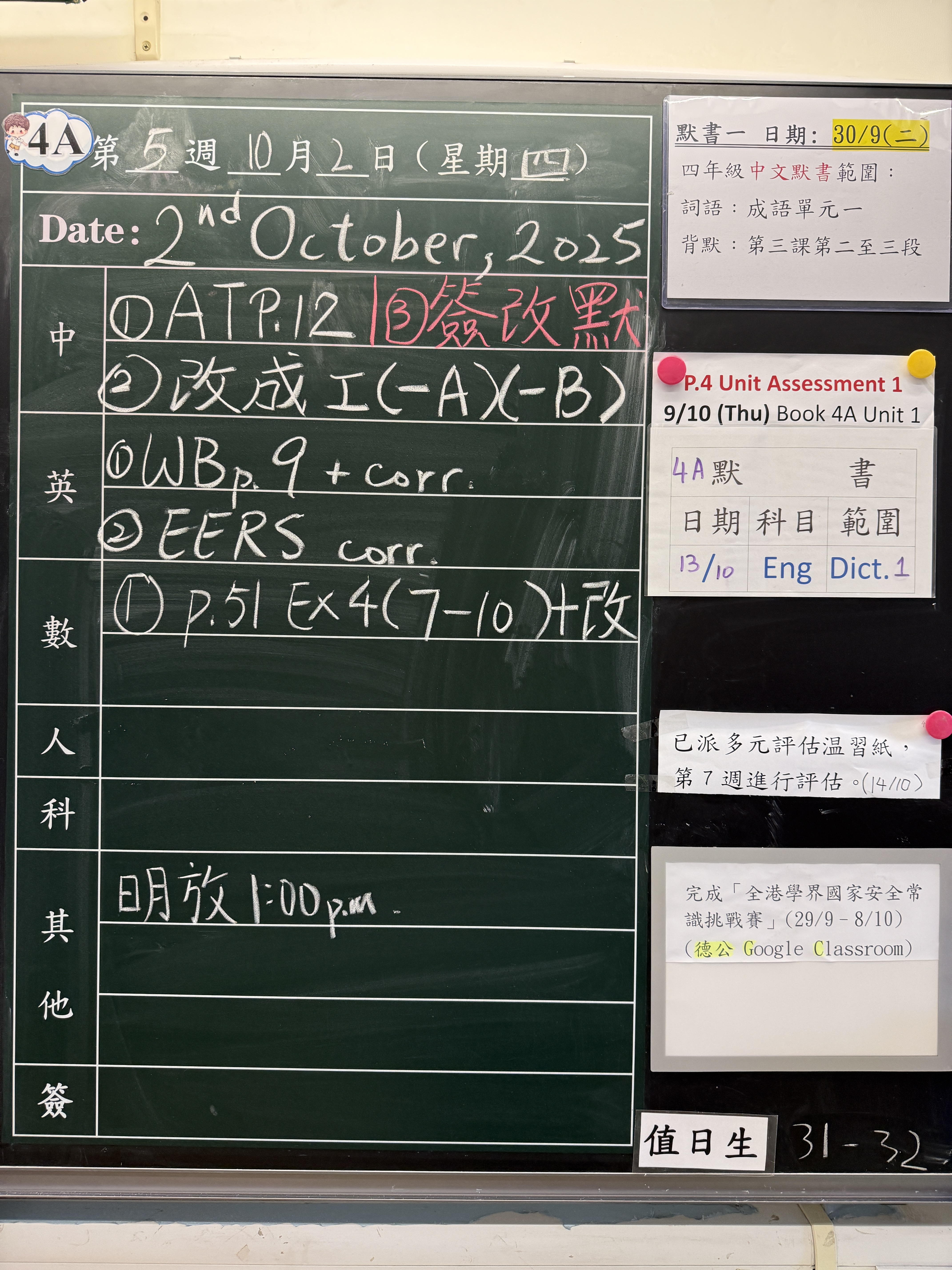4E | 星期一 | 星期二 | 星期三 | 星期四 | 星期五 |
