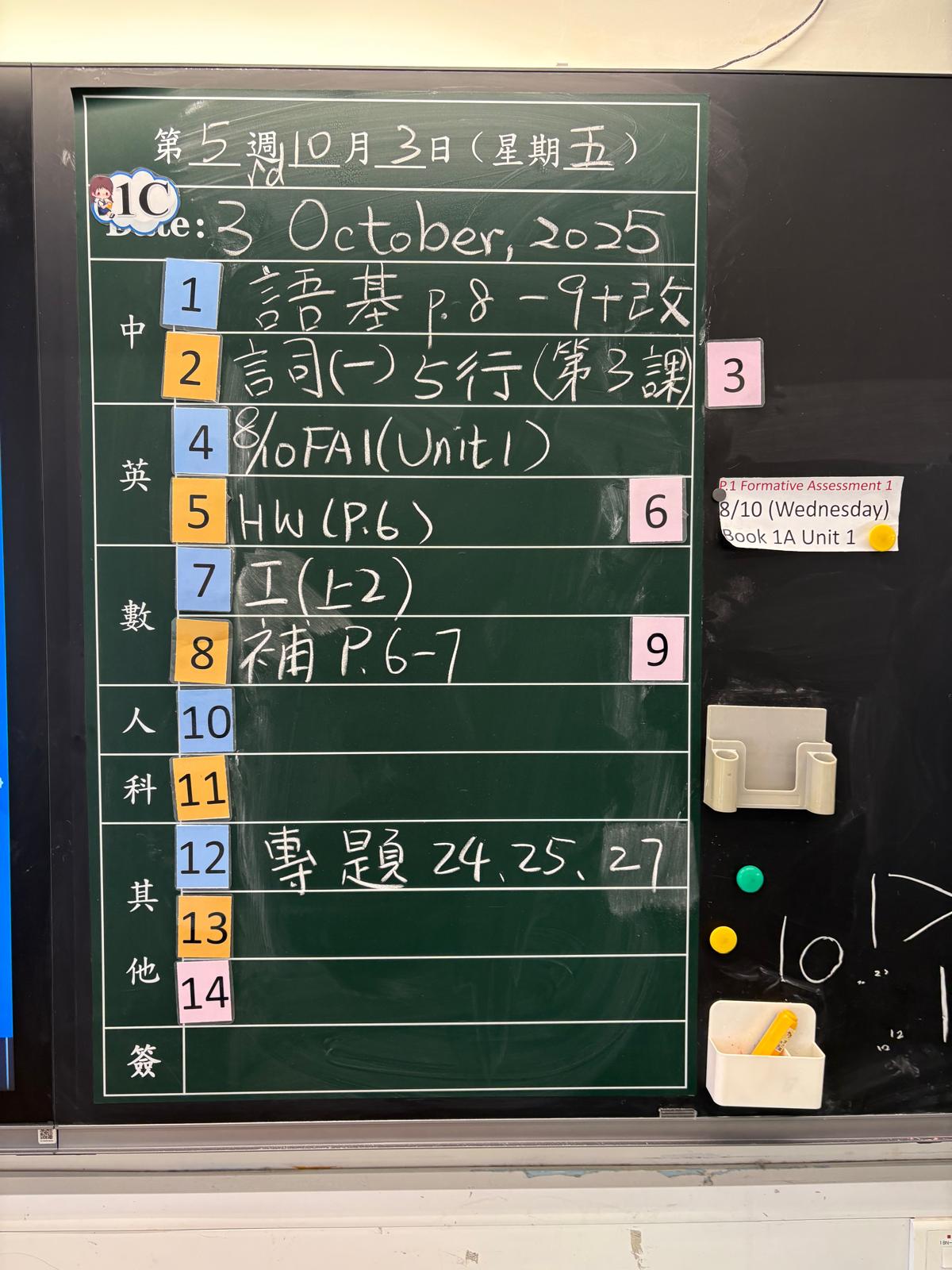1C | 星期一 | 星期二 | 星期三 | 星期四 | 星期五 |