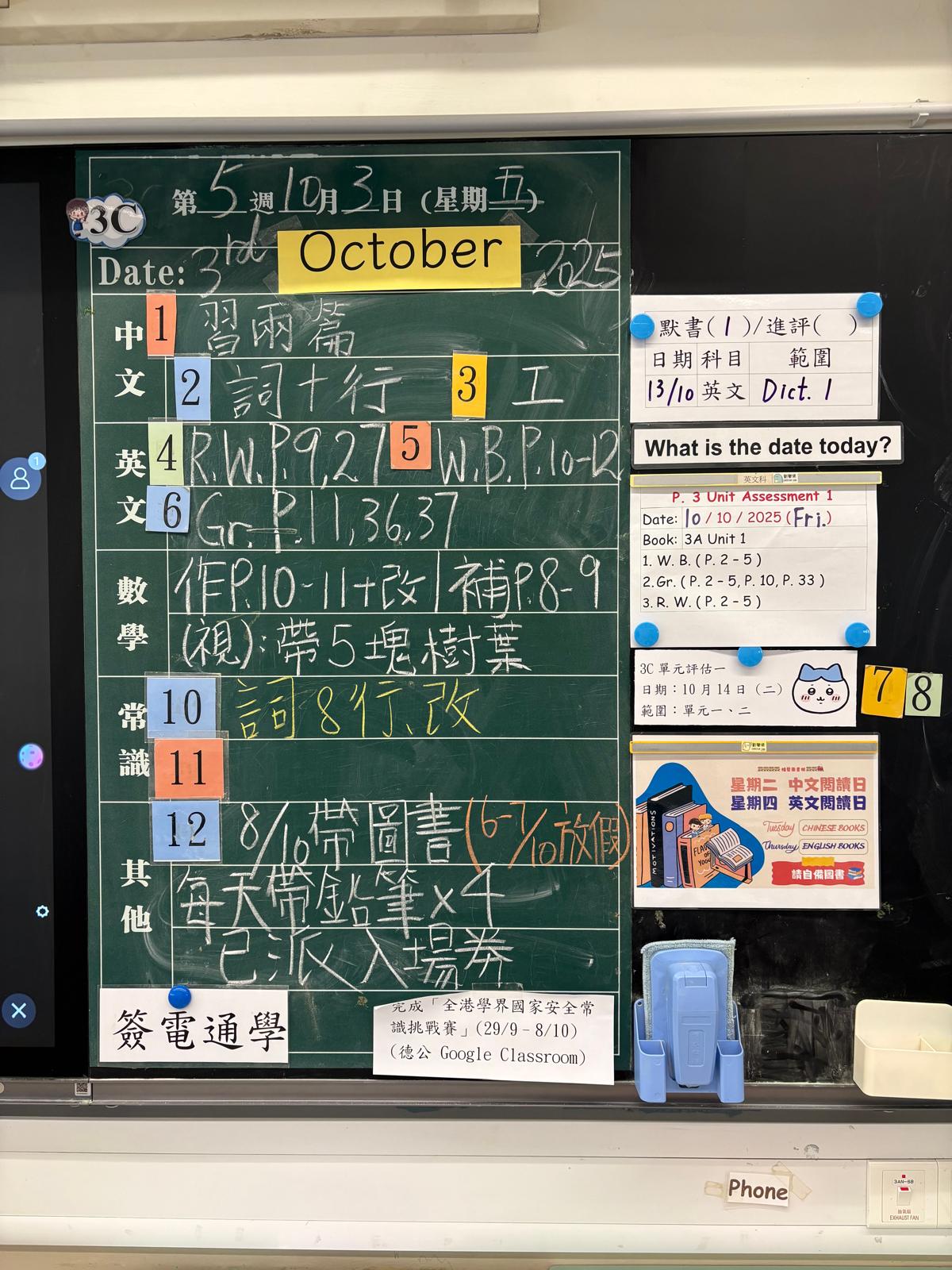 3C | 星期一 | 星期二 | 星期三 | 星期四 | 星期五 |