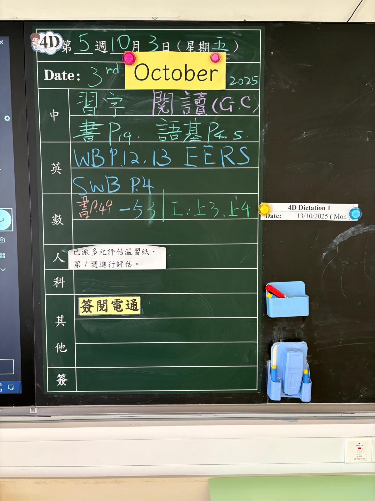 4D | 星期一 | 星期二 | 星期三 | 星期四 | 星期五 |