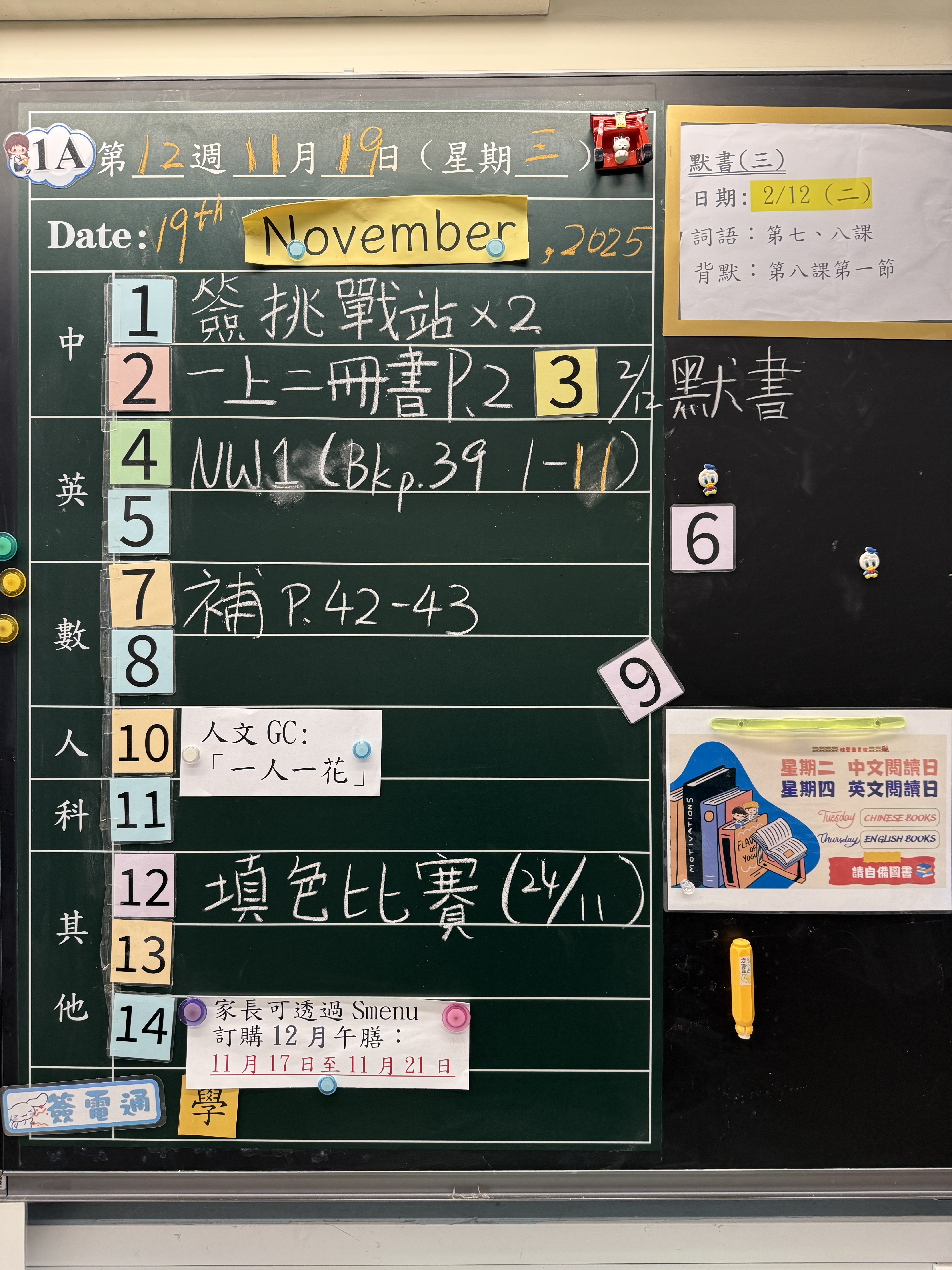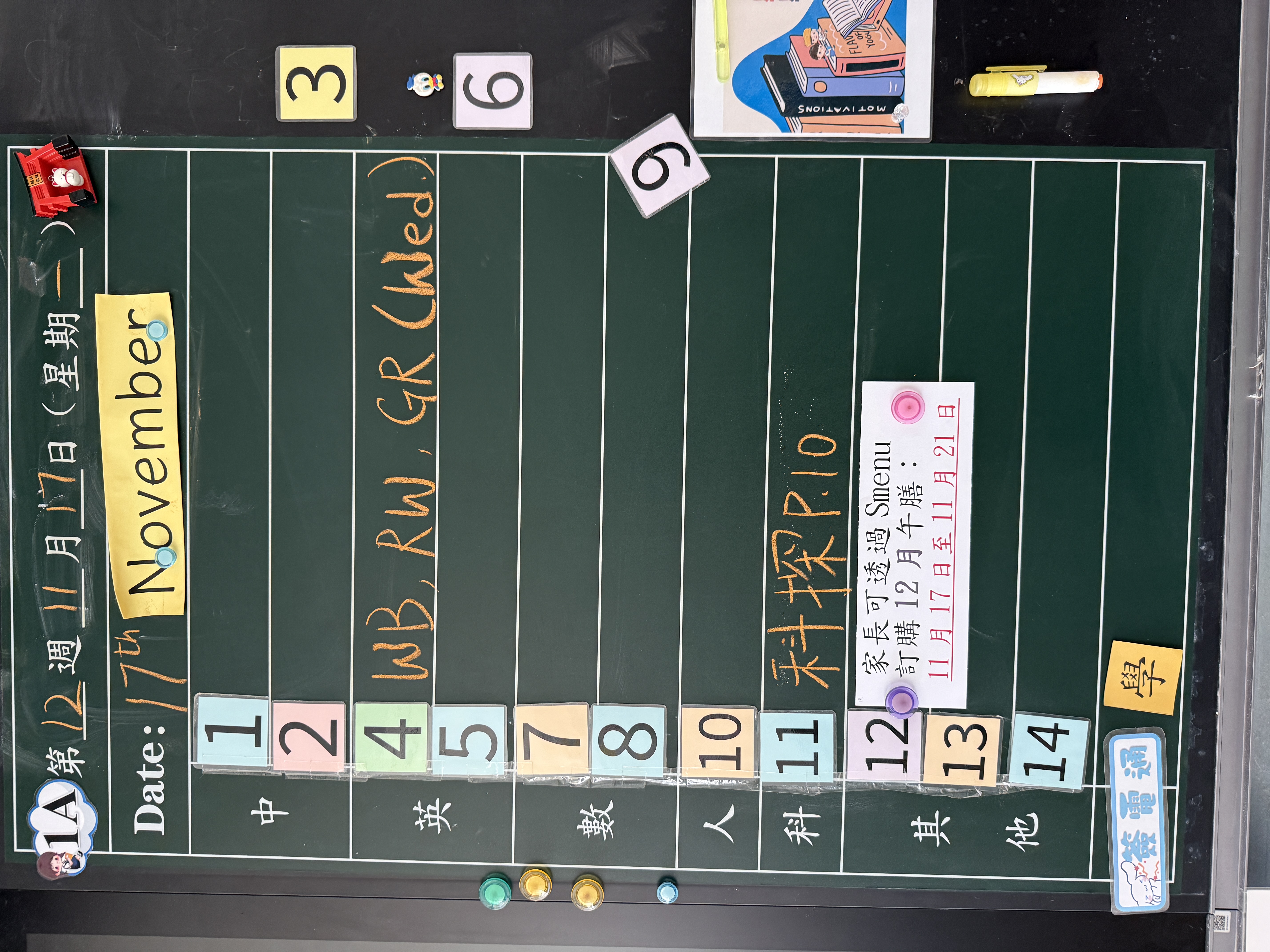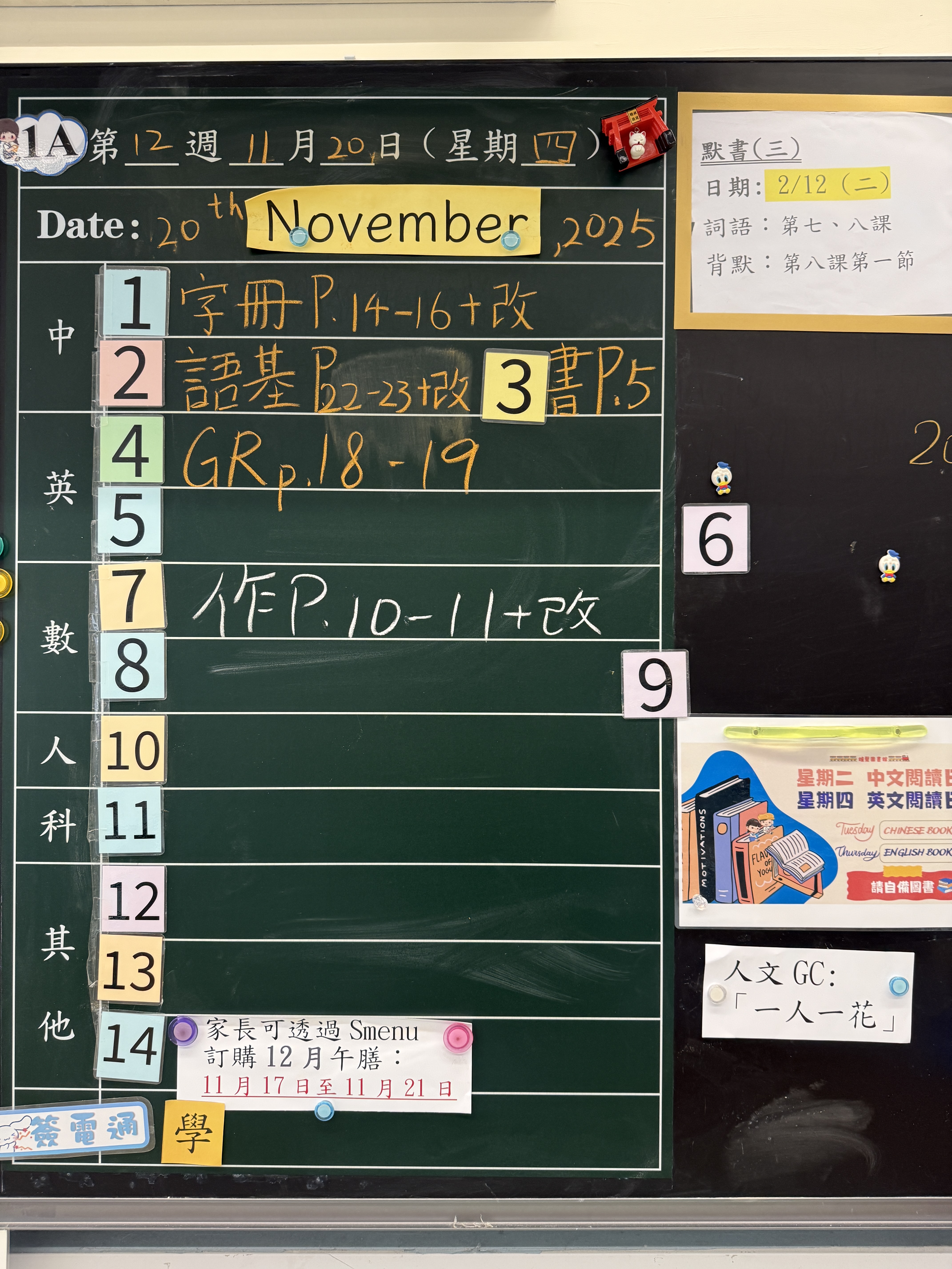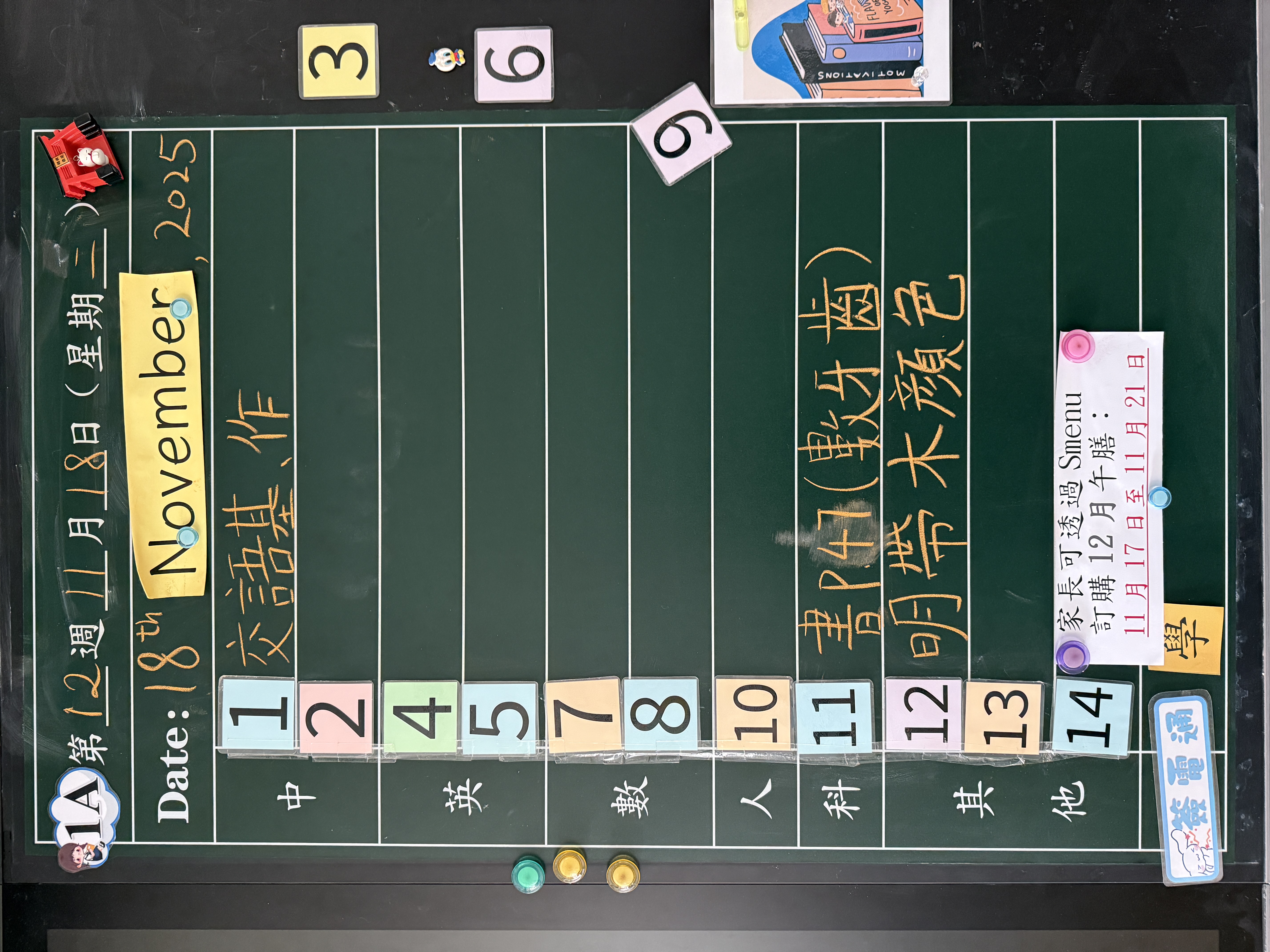 | 1A | 星期一 | 星期二 | 星期三 | 星期四 | 星期五 |