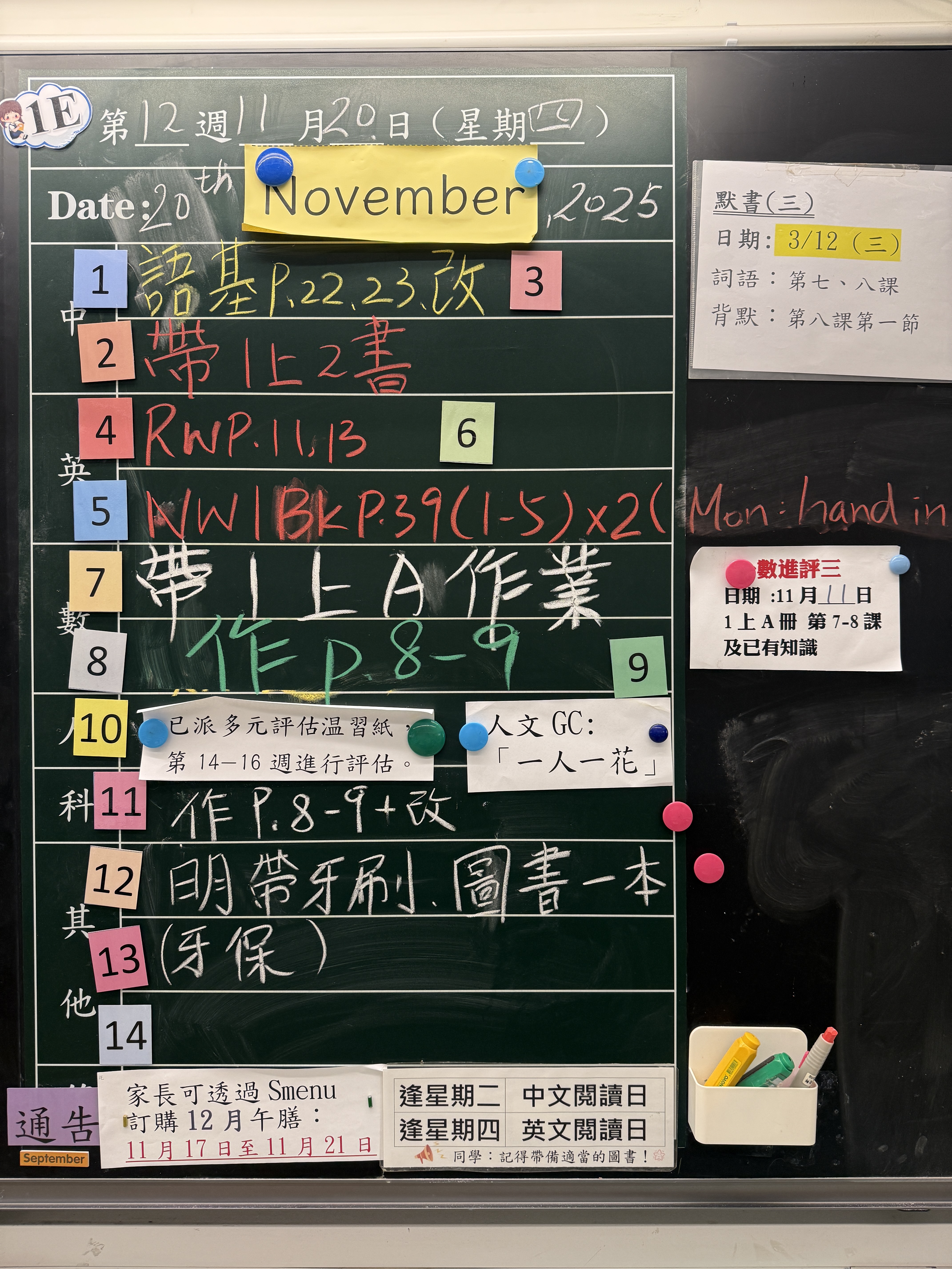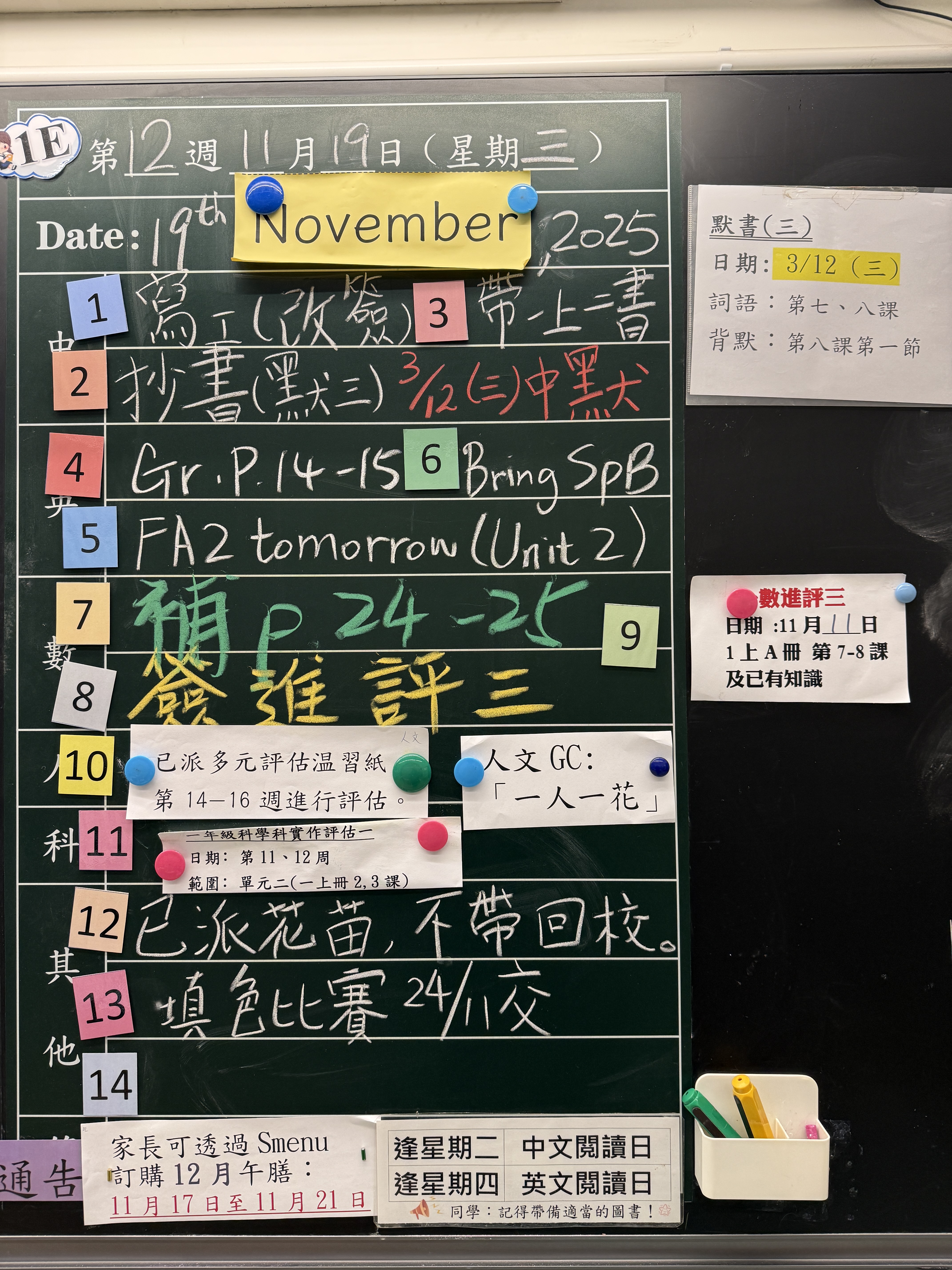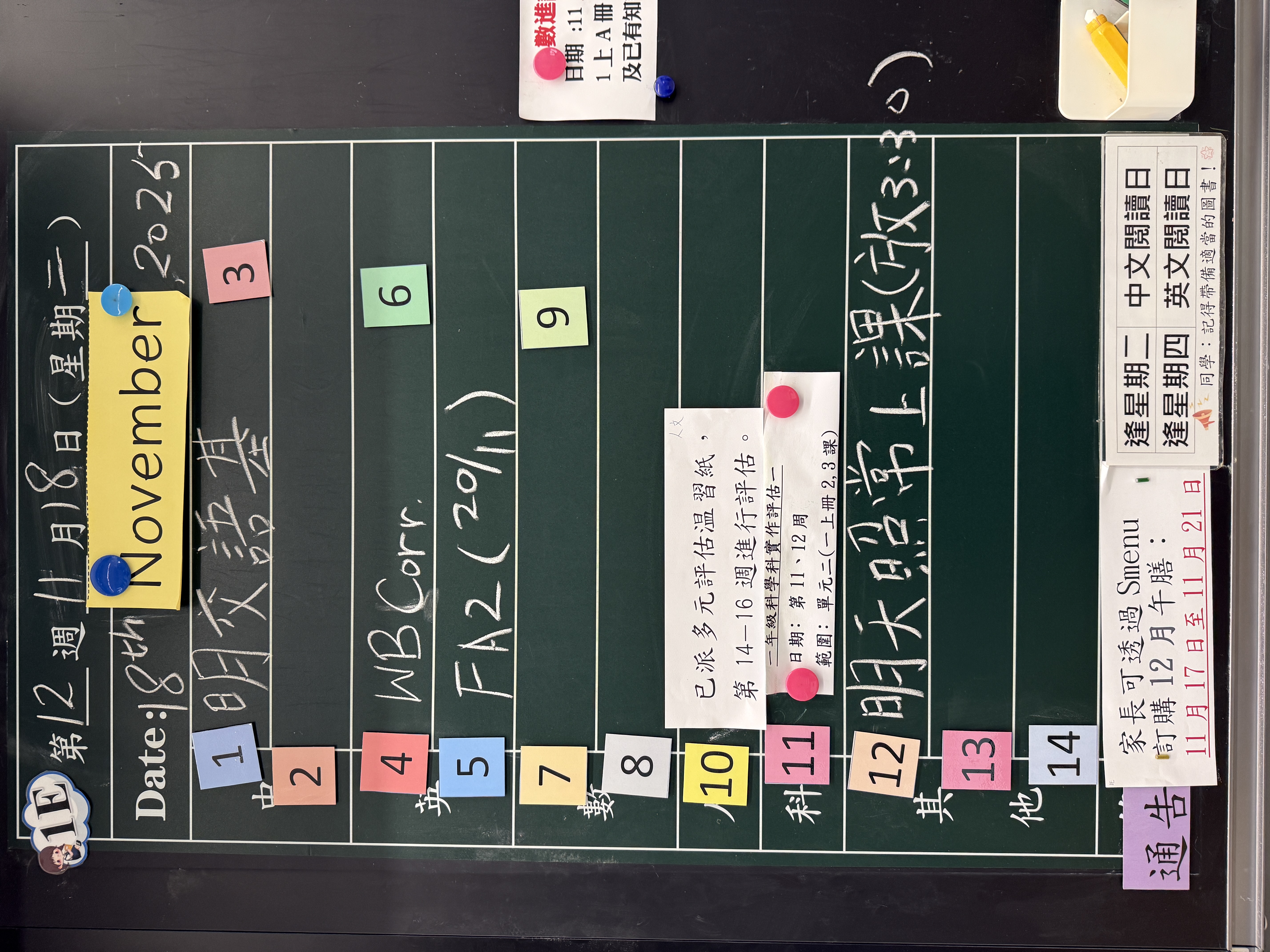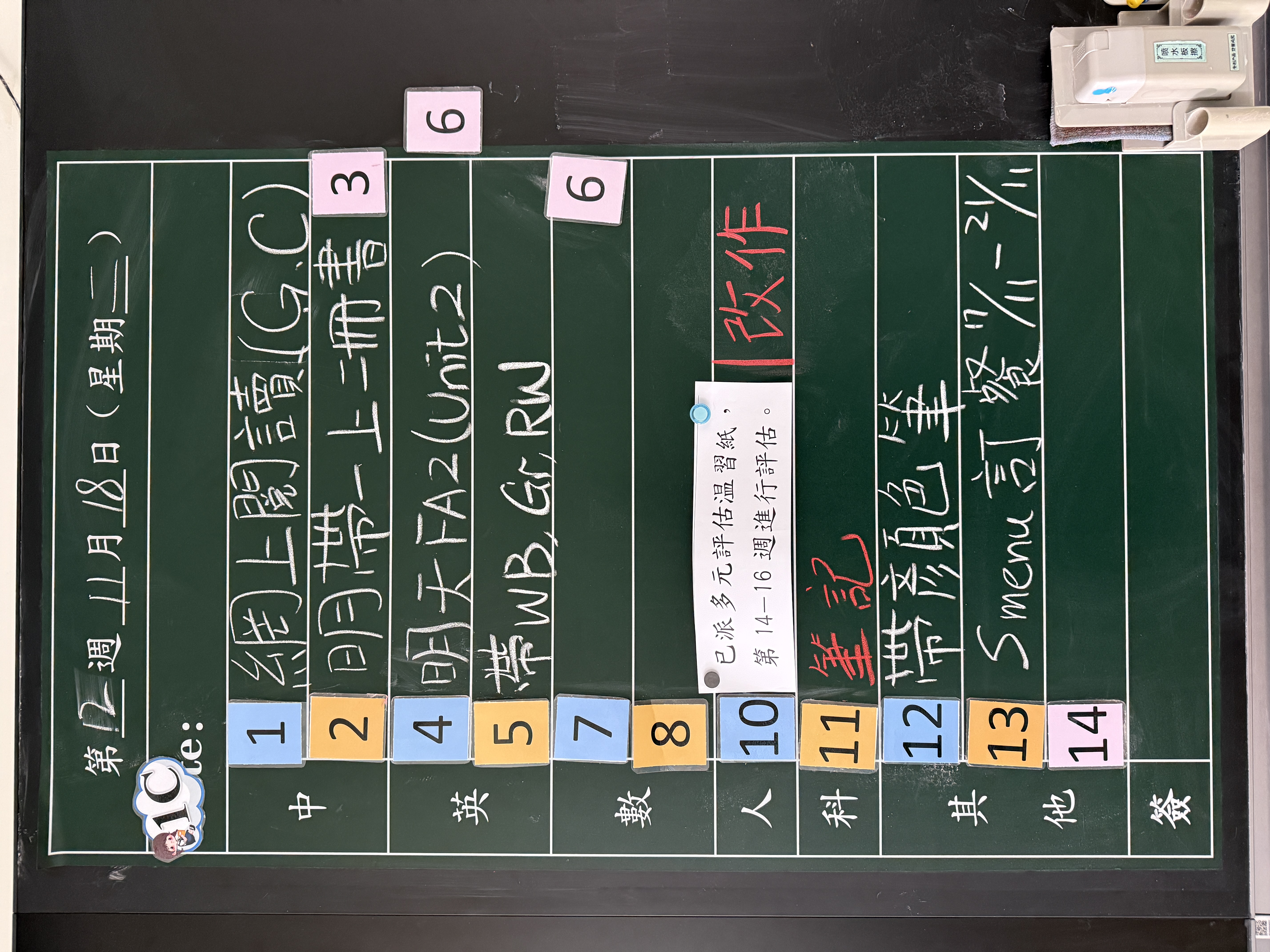 | 1A | 星期一 | 星期二 | 星期三 | 星期四 | 星期五 |