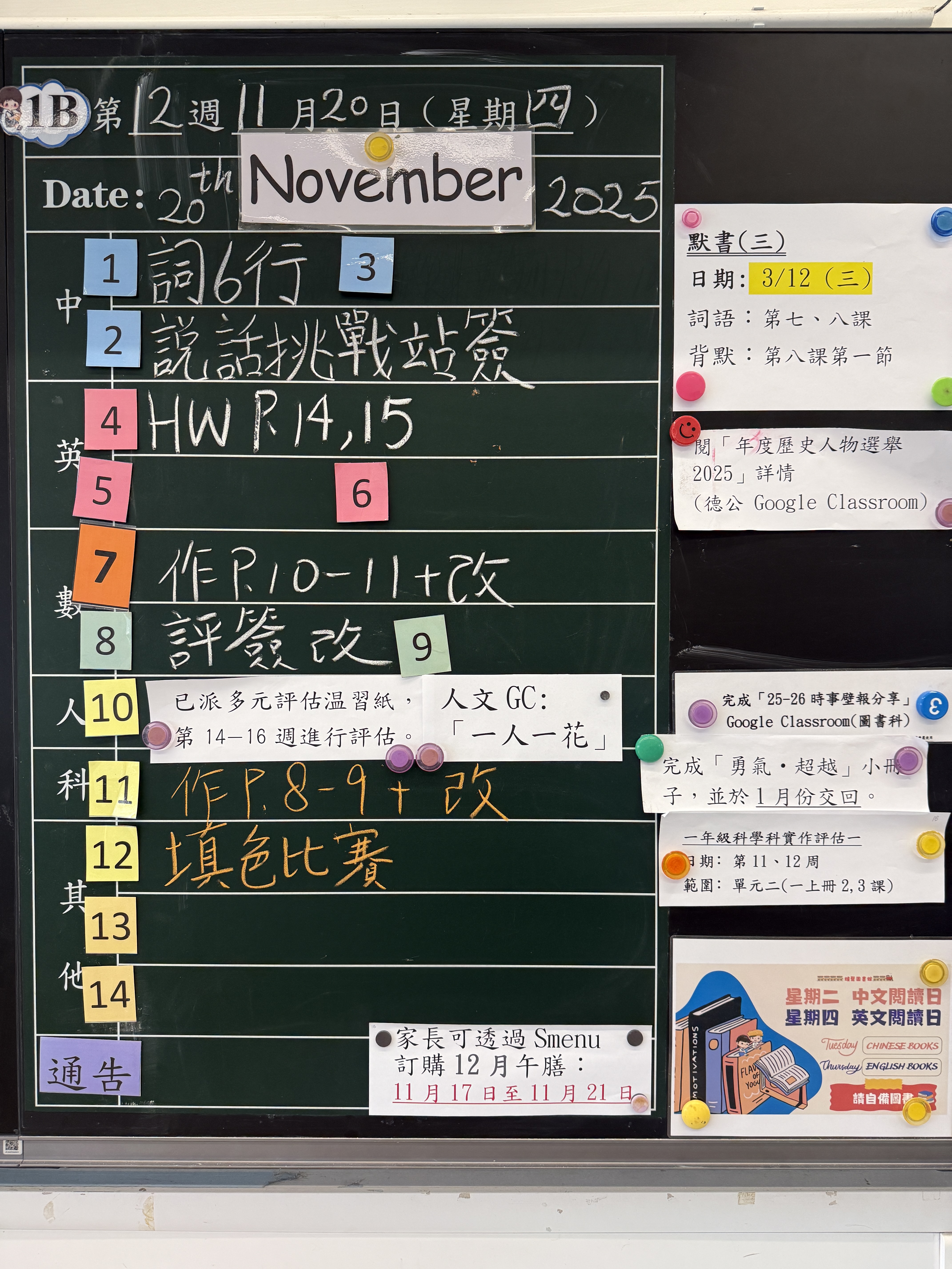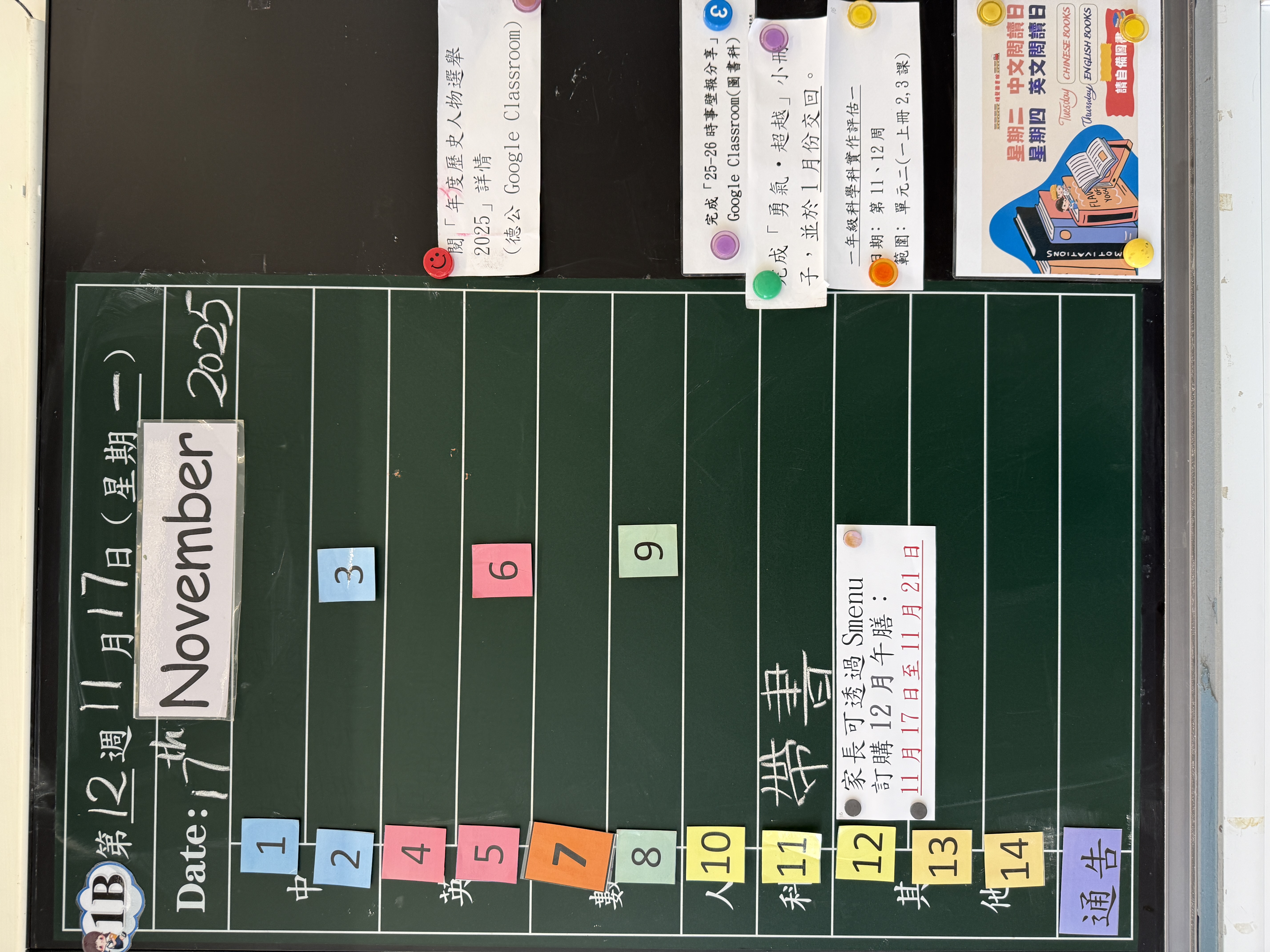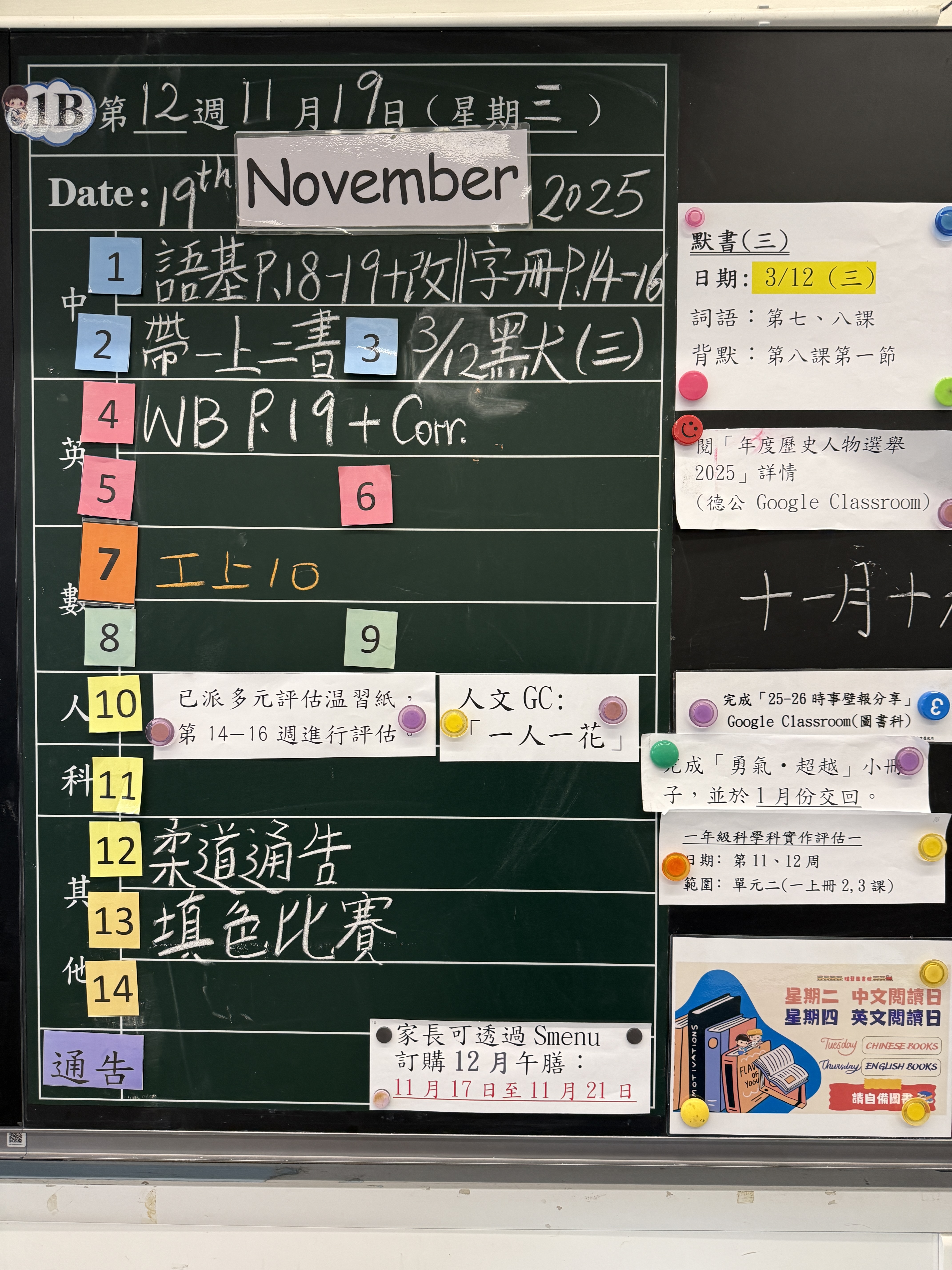 | 1B | 星期一 | 星期二 | 星期三 | 星期四 | 星期五 |