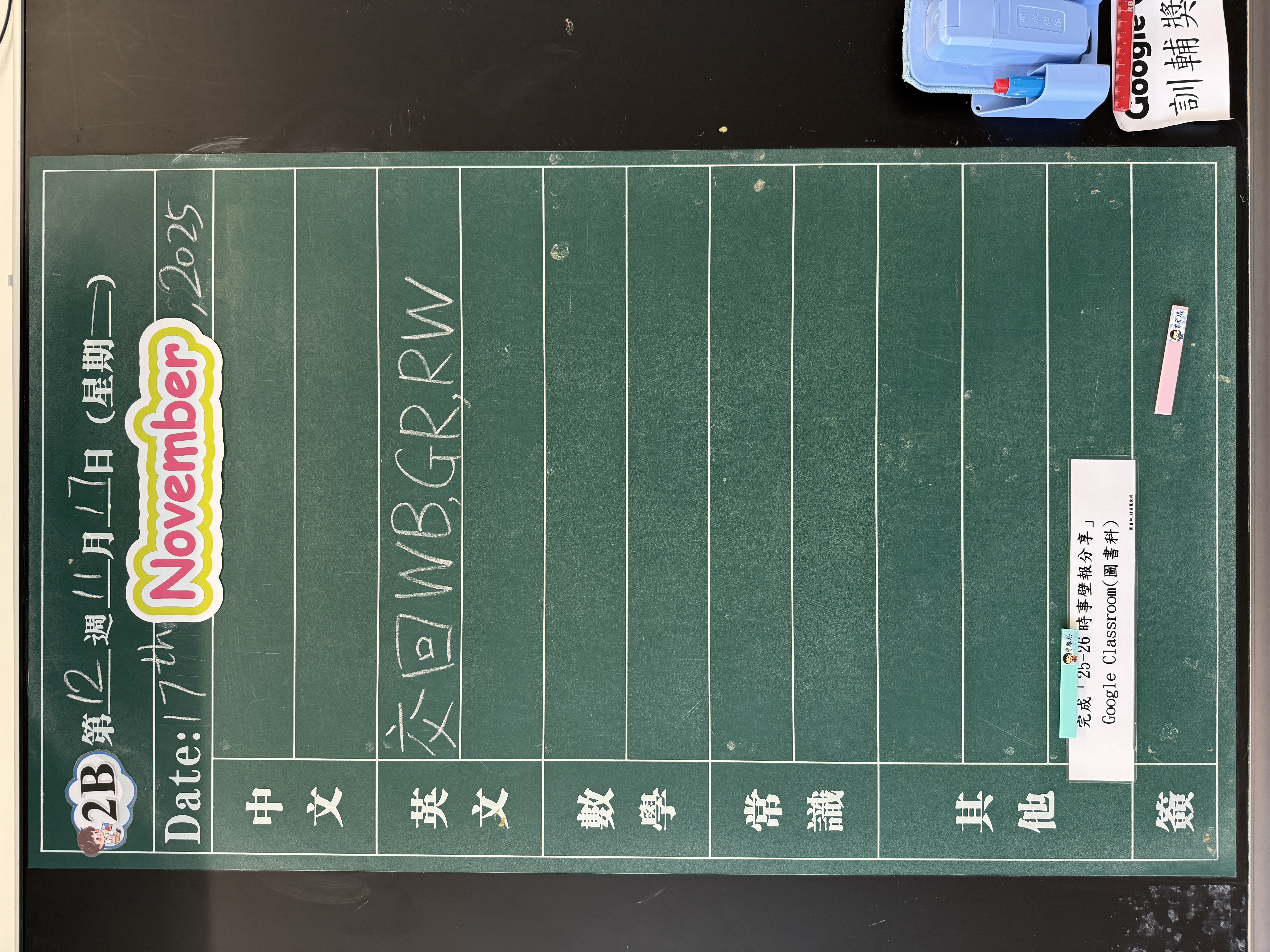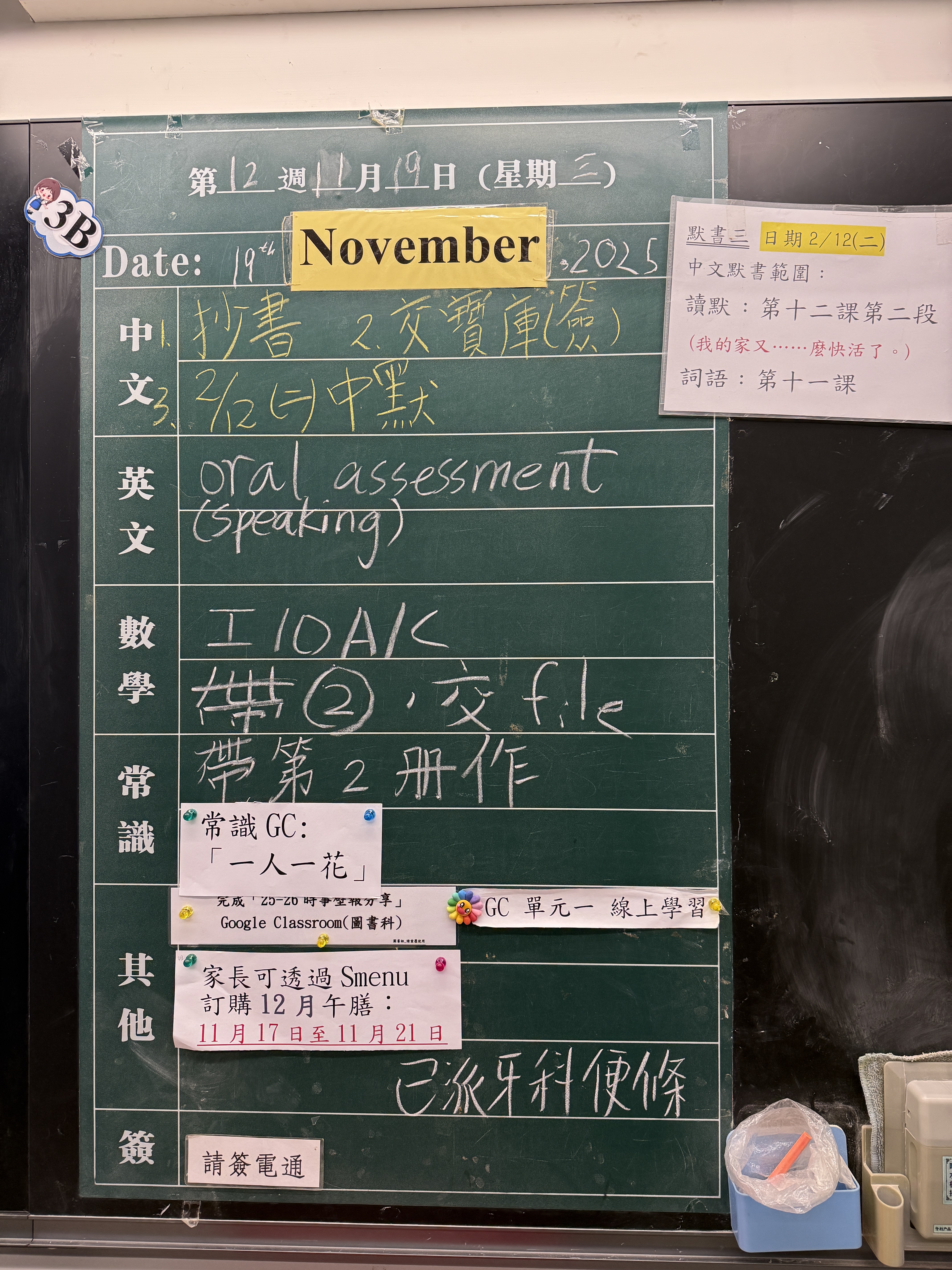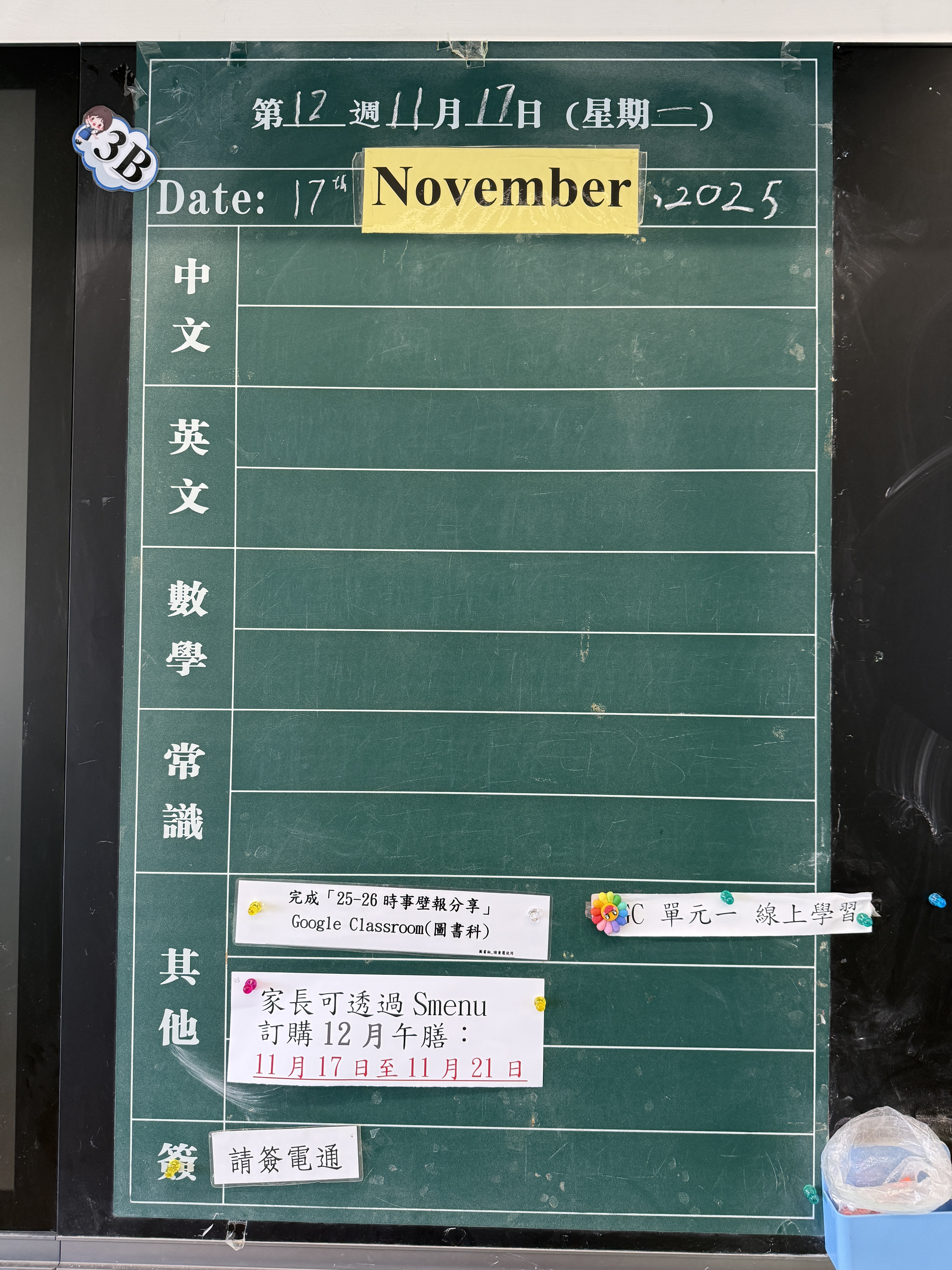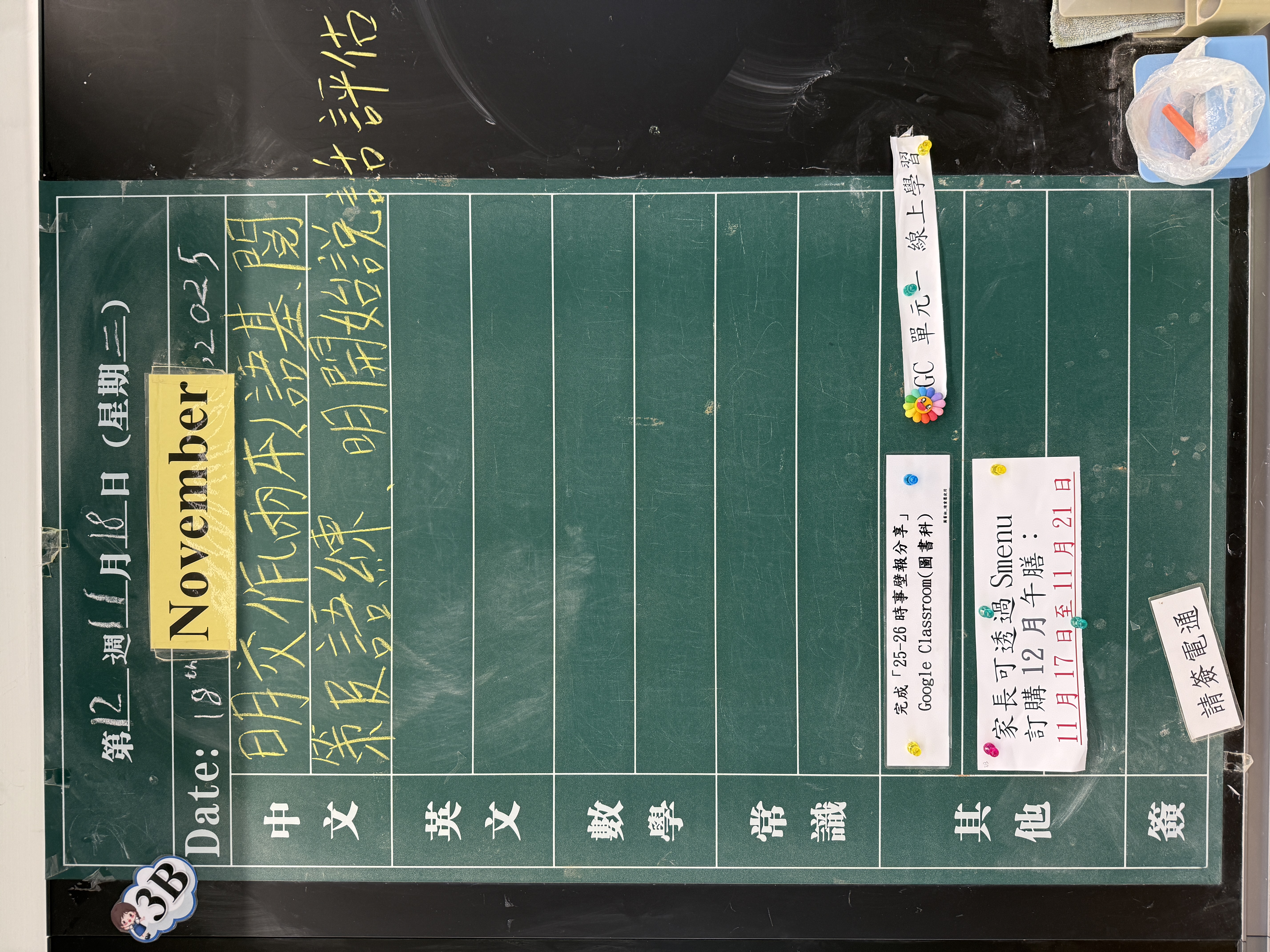 | 3B | 星期一 | 星期二 | 星期三 | 星期四 | 星期五 |