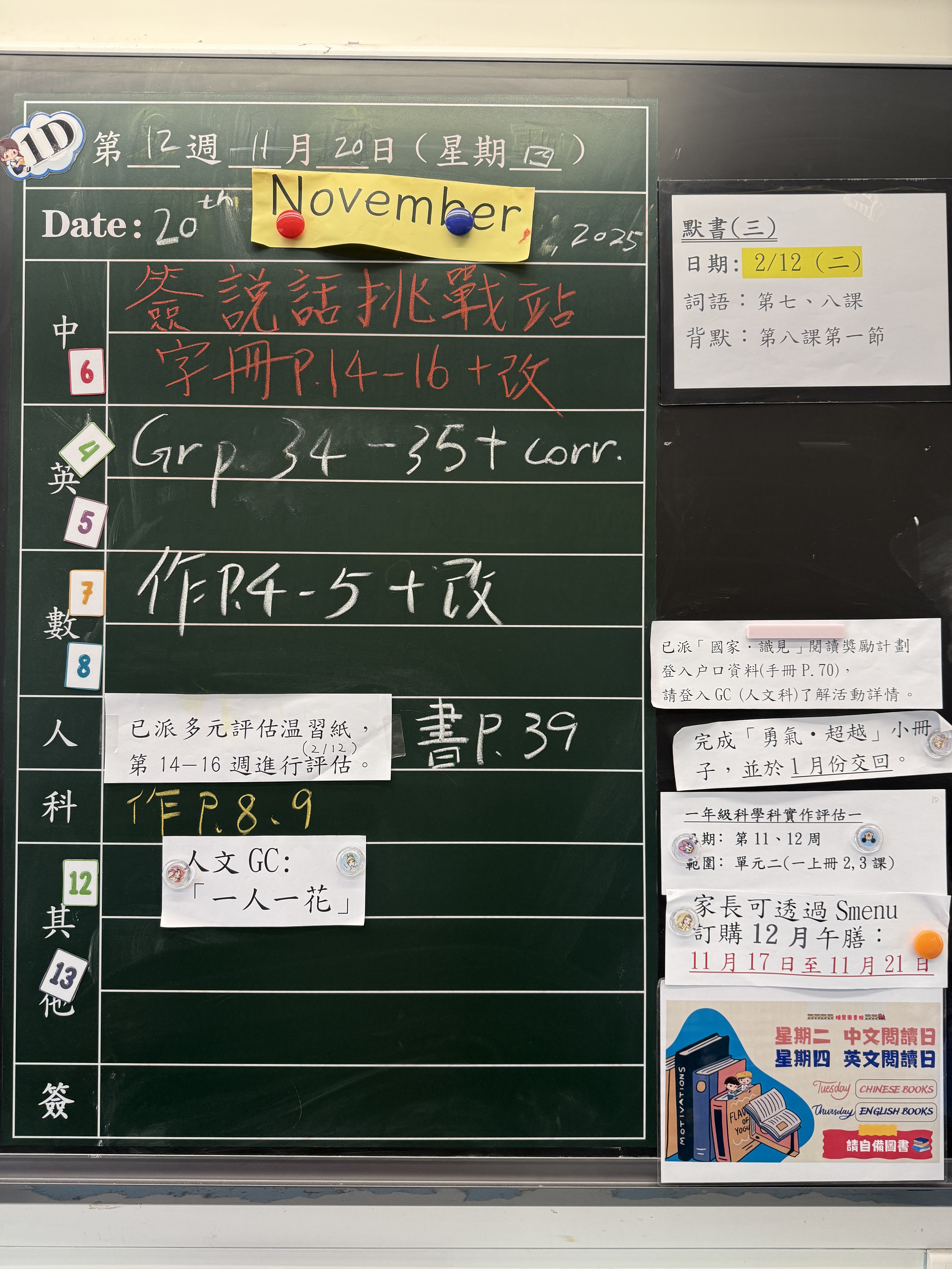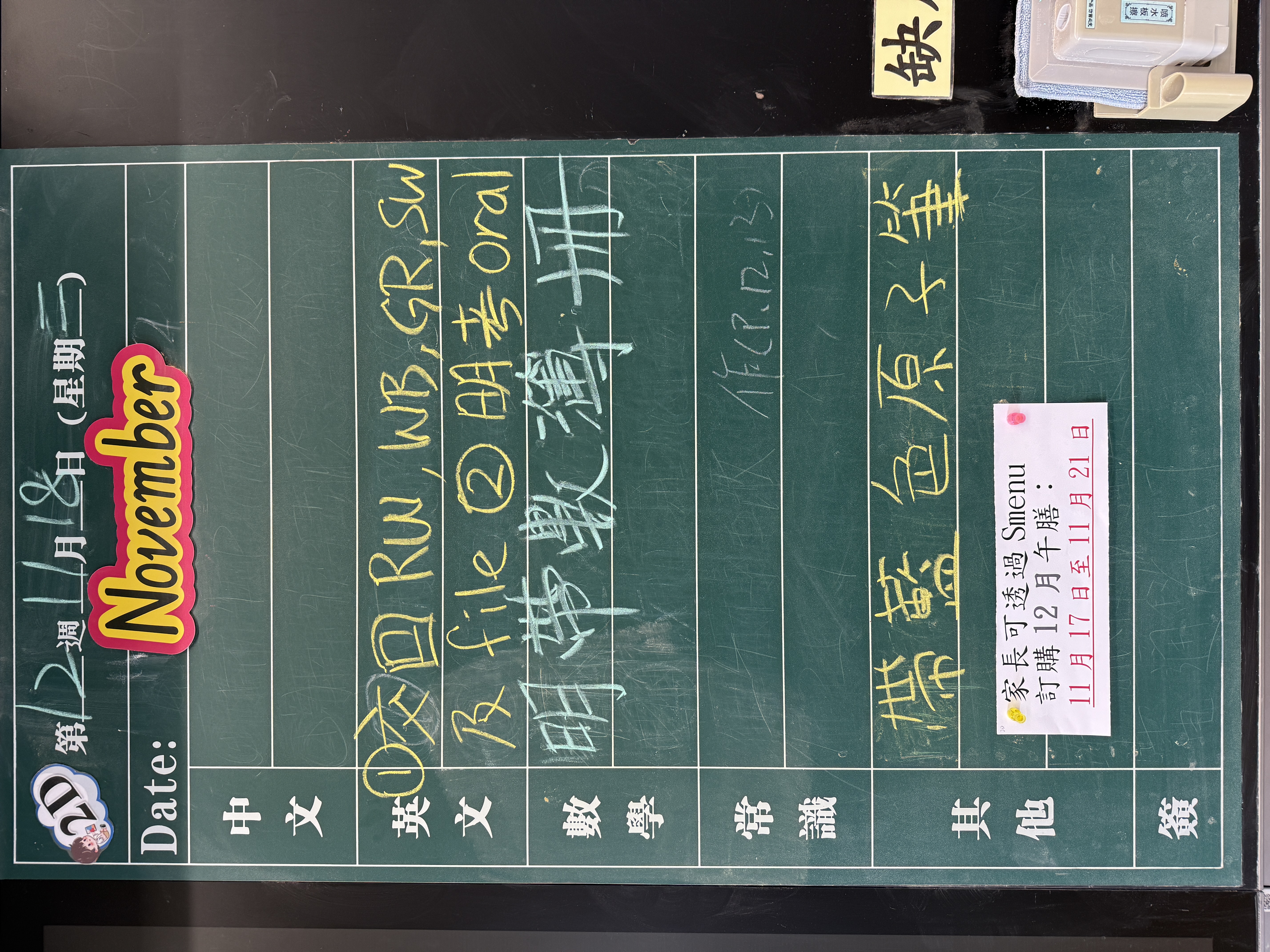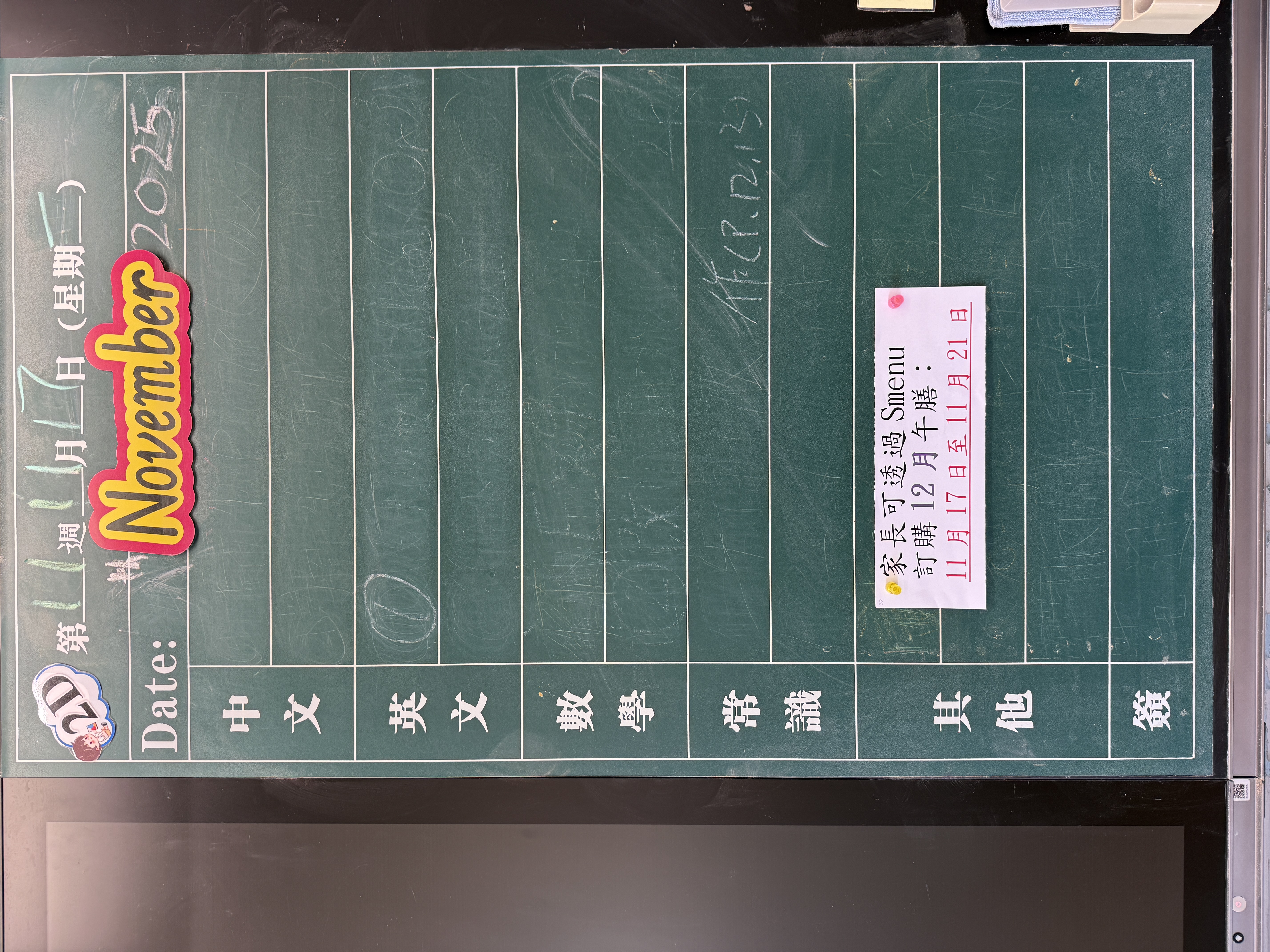 | 1D | 星期一 | 星期二 | 星期三 | 星期四 | 星期五 |