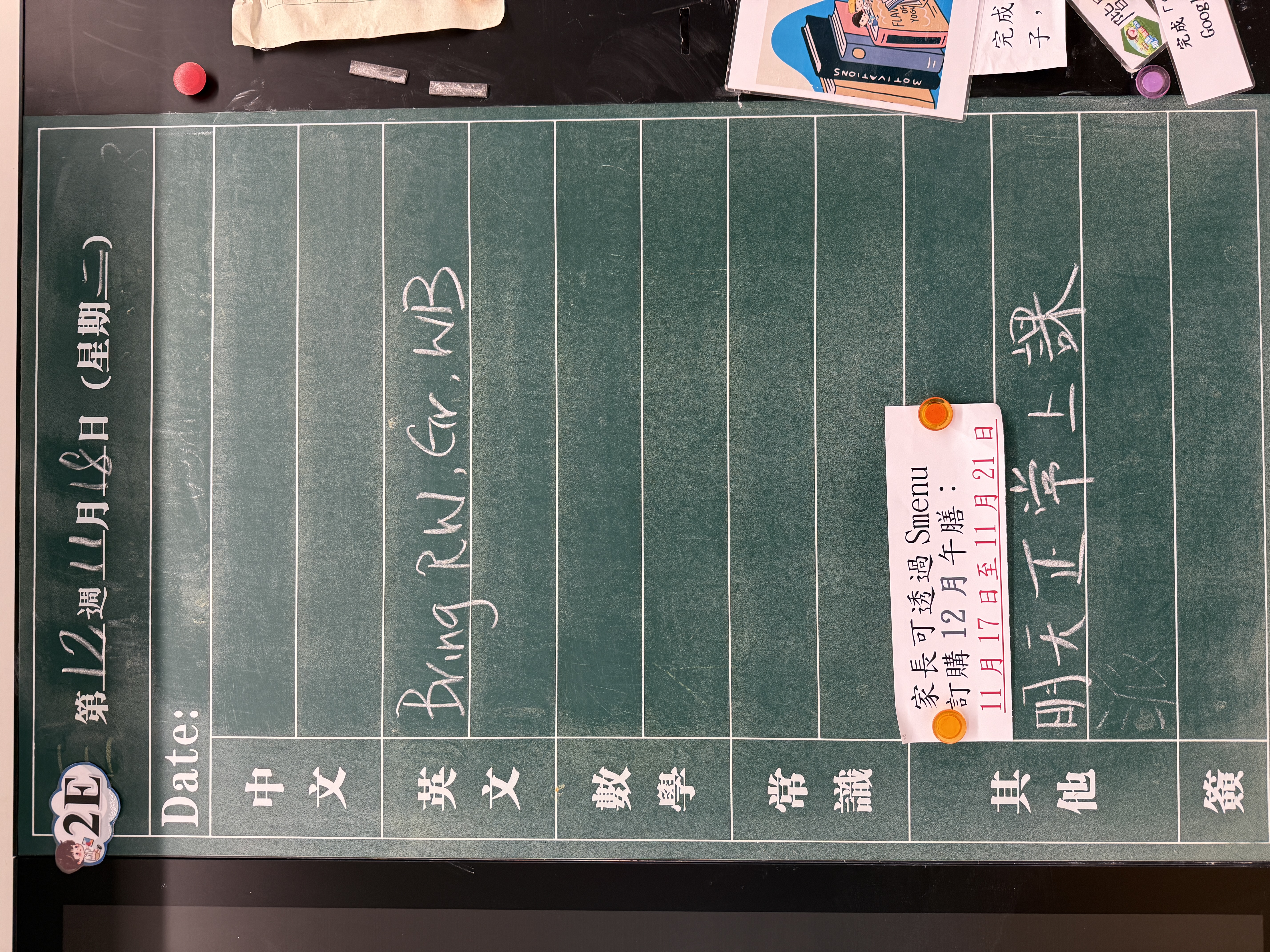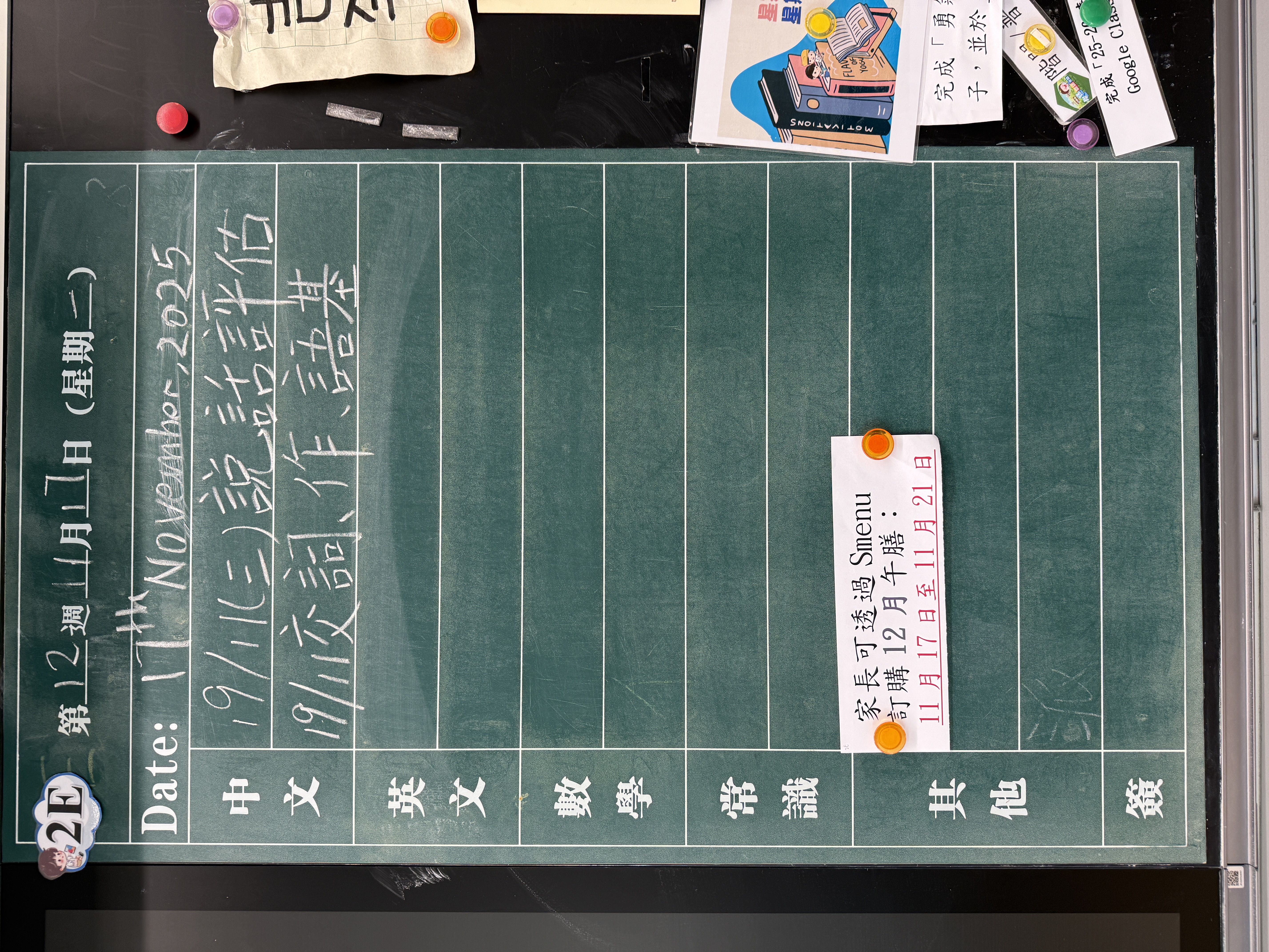 | 2E | 星期一 | 星期二 | 星期三 | 星期四 | 星期五 |
