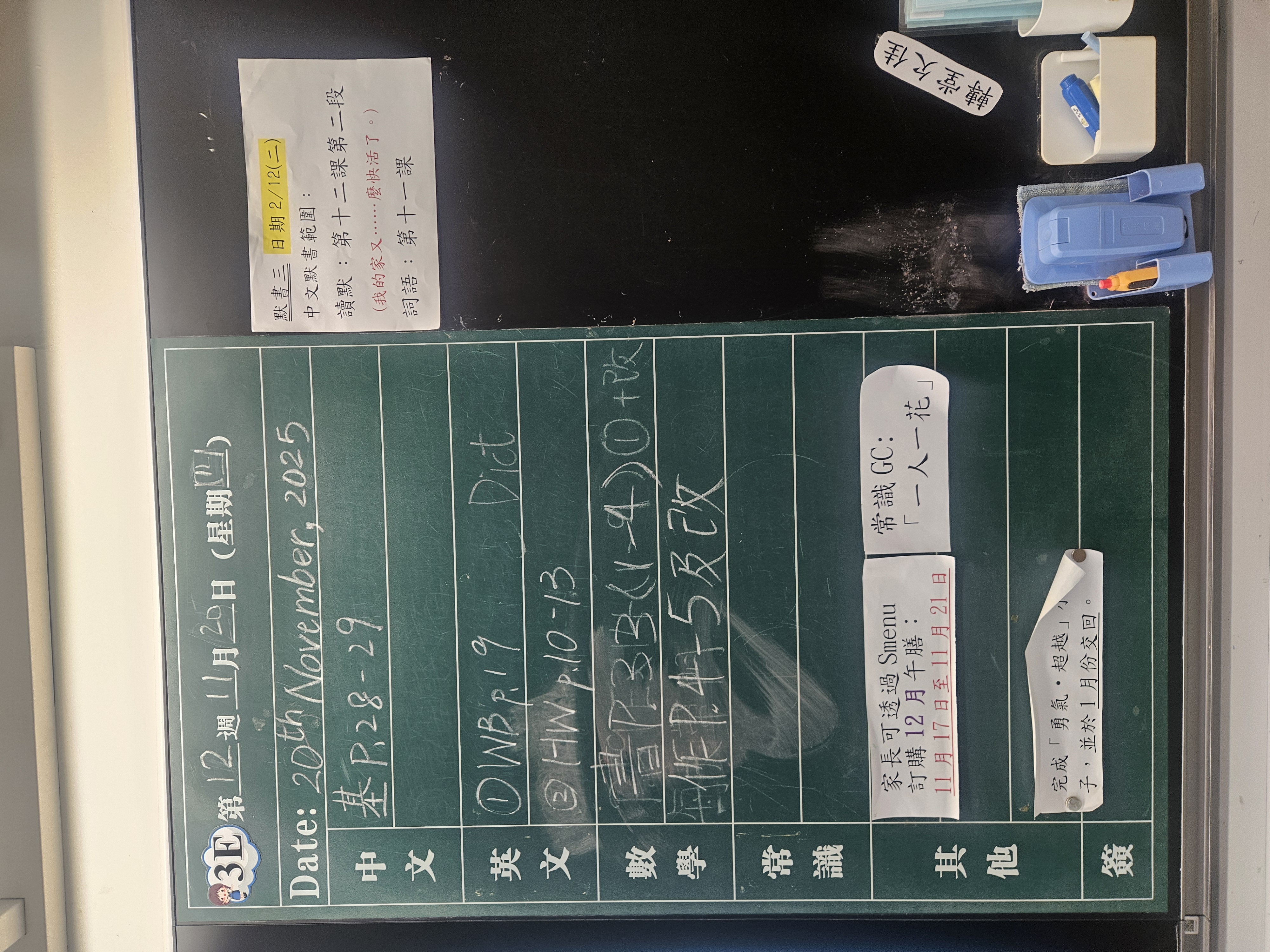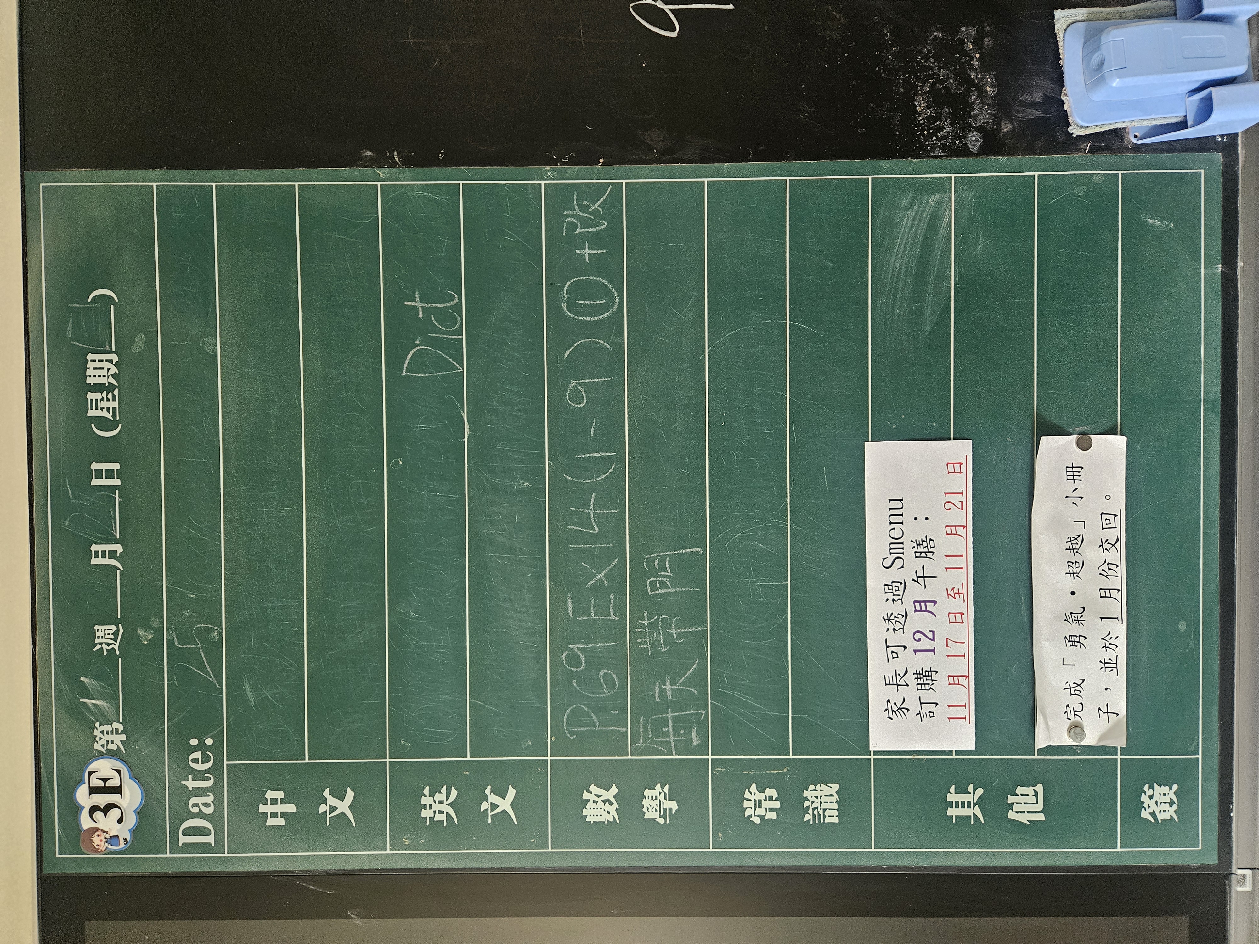 | 3E | 星期一 | 星期二 | 星期三 | 星期四 | 星期五 |
