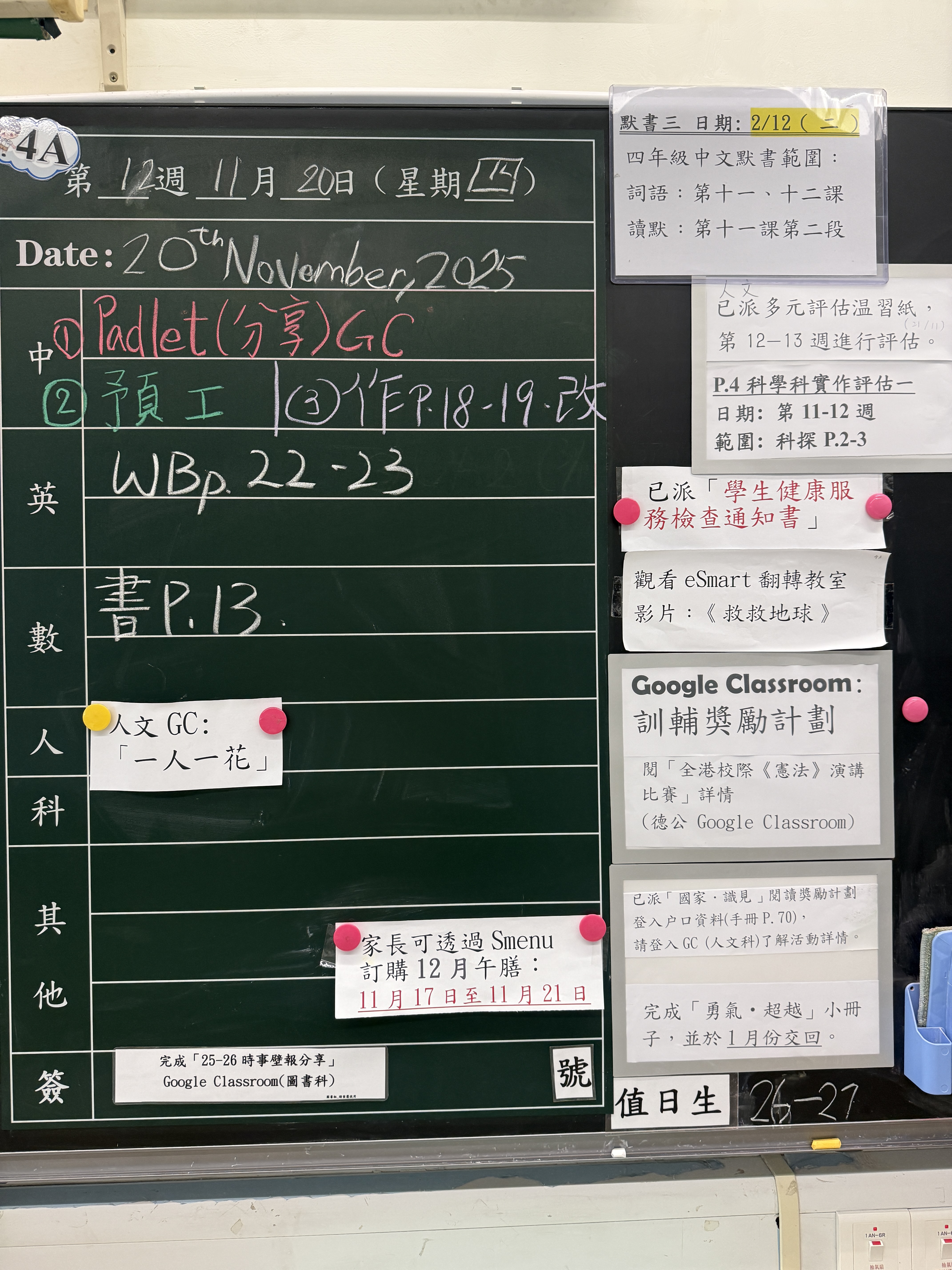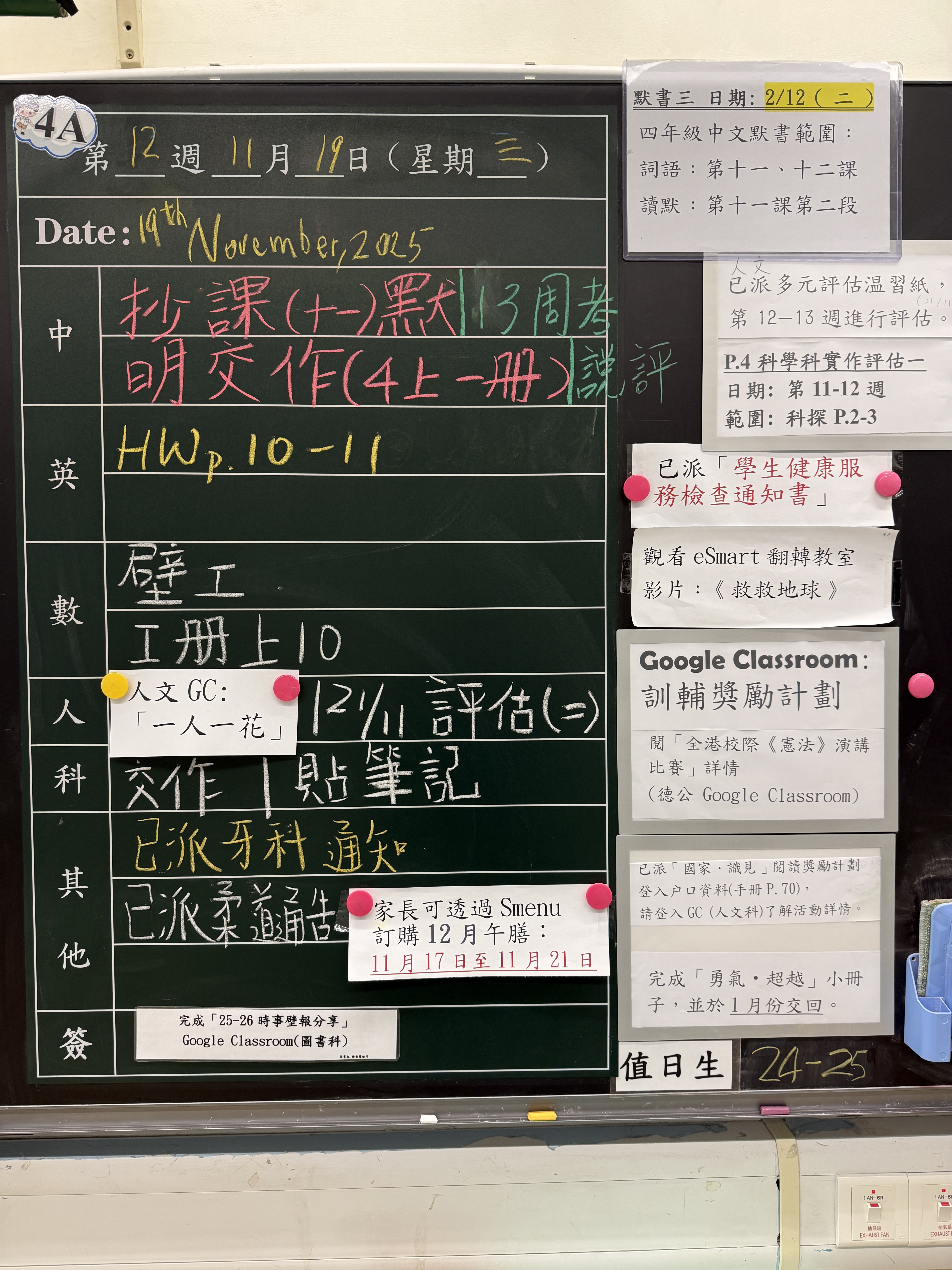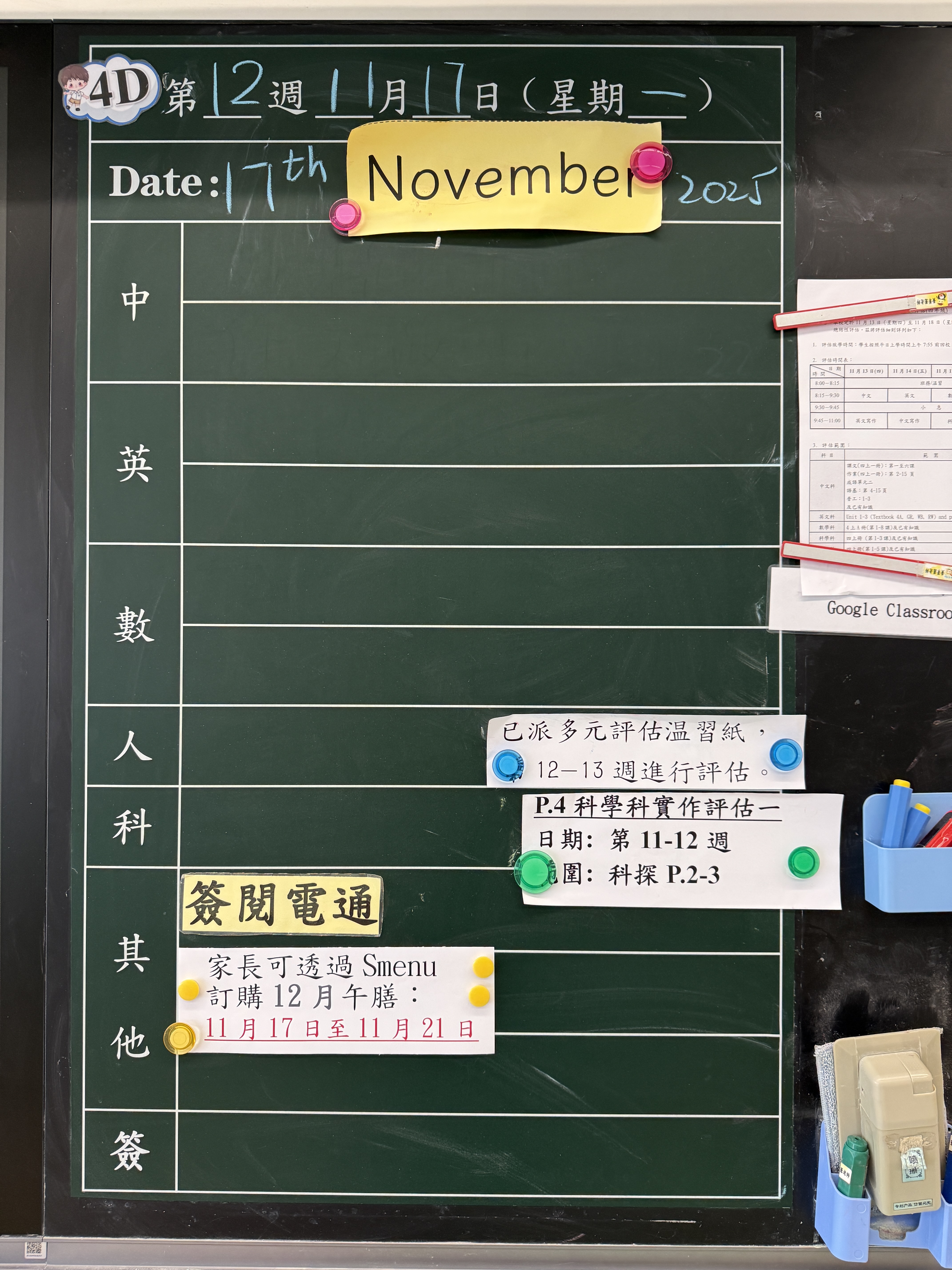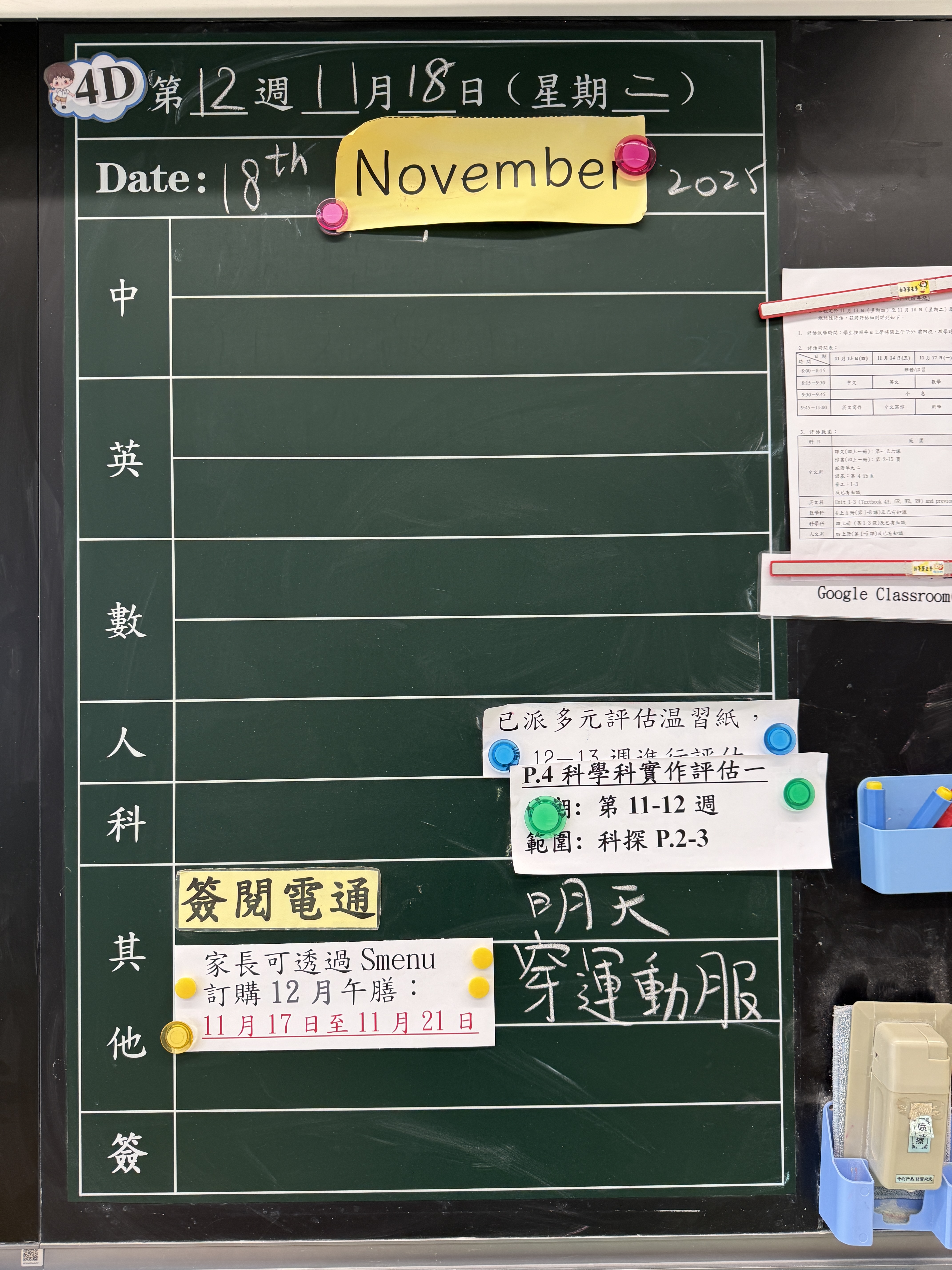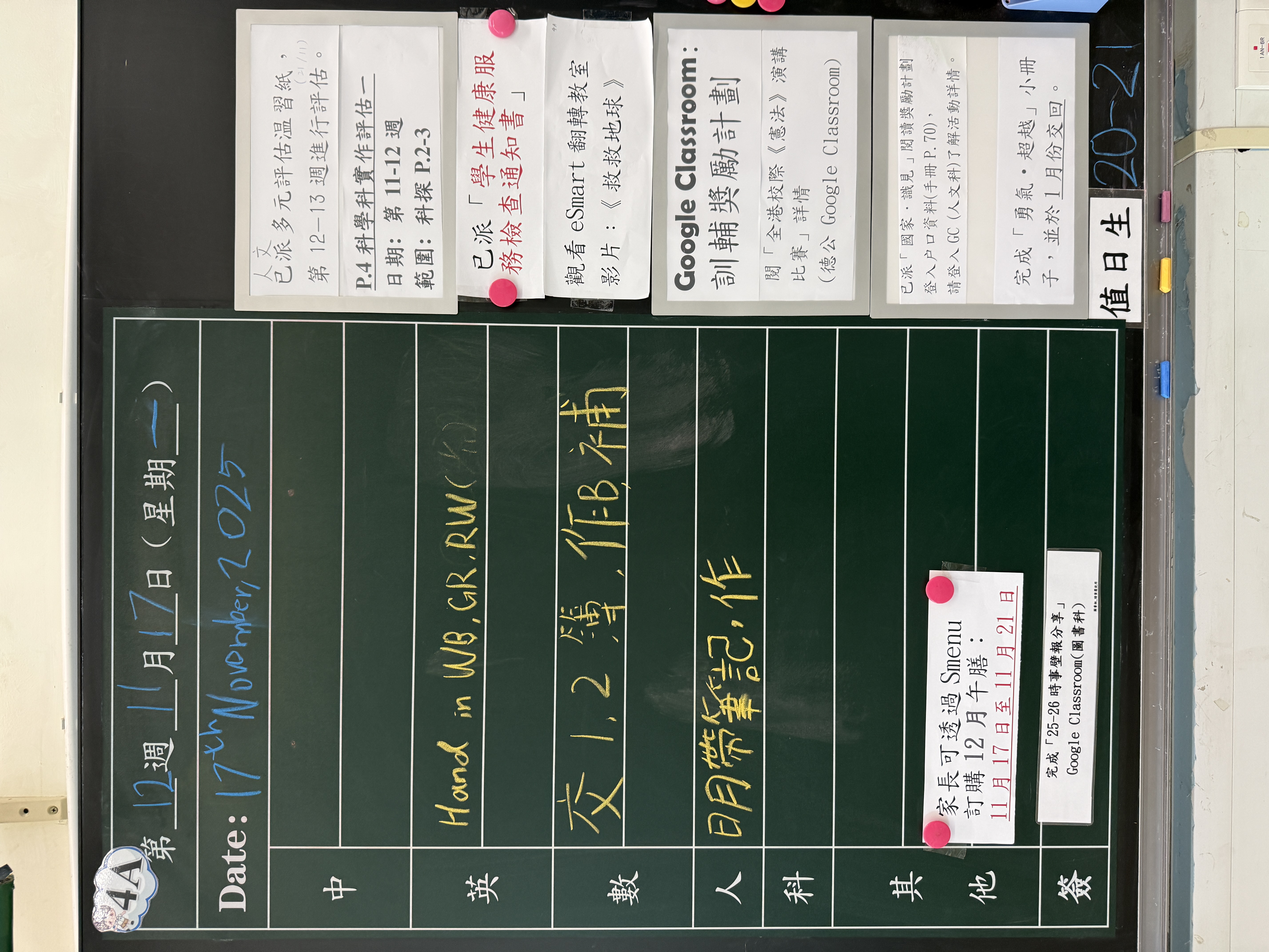 | 4A | 星期一 | 星期二 | 星期三 | 星期四 | 星期五 |
