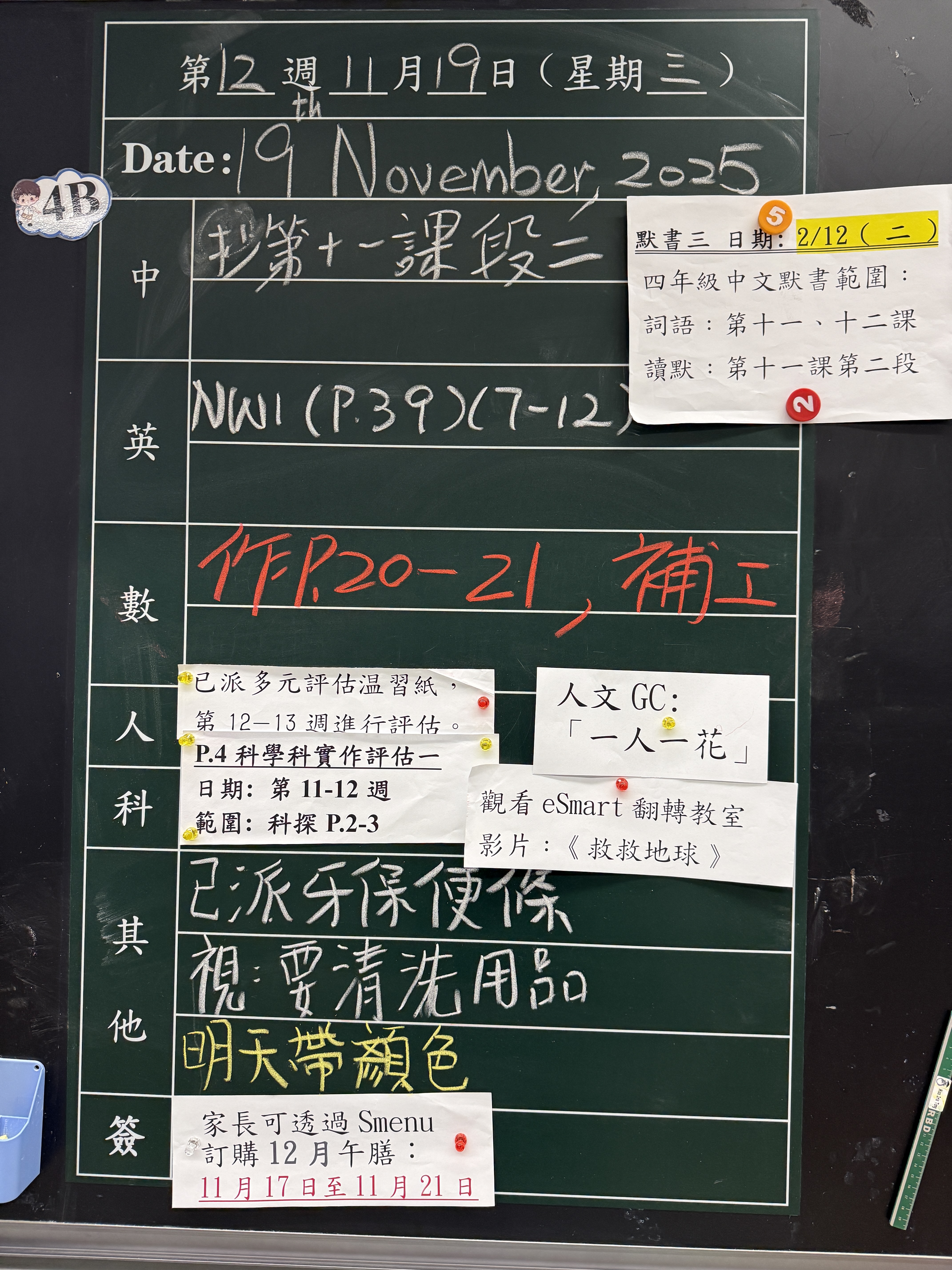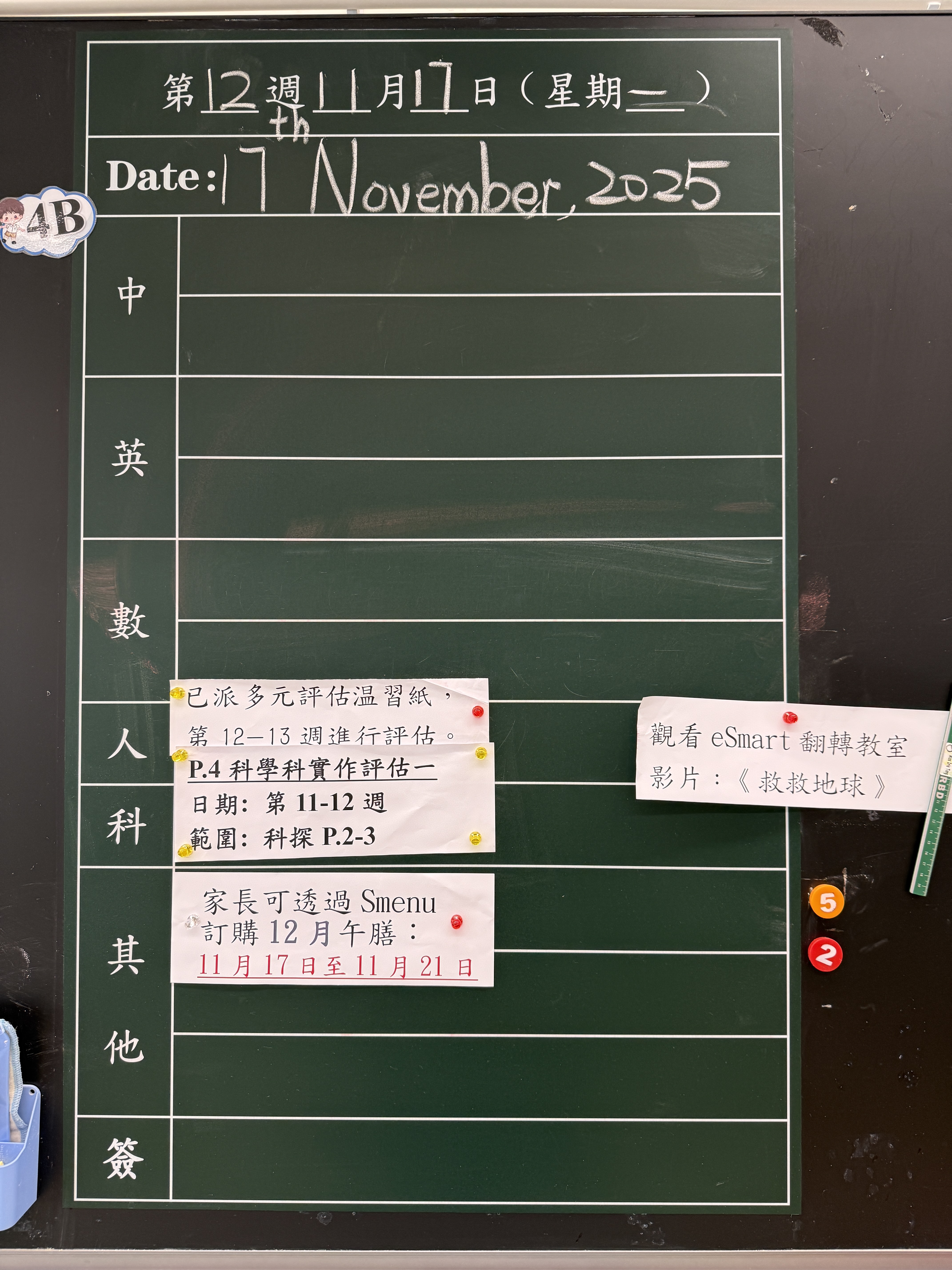| 4B | 星期一 | 星期二 | 星期三 | 星期四 | 星期五 |