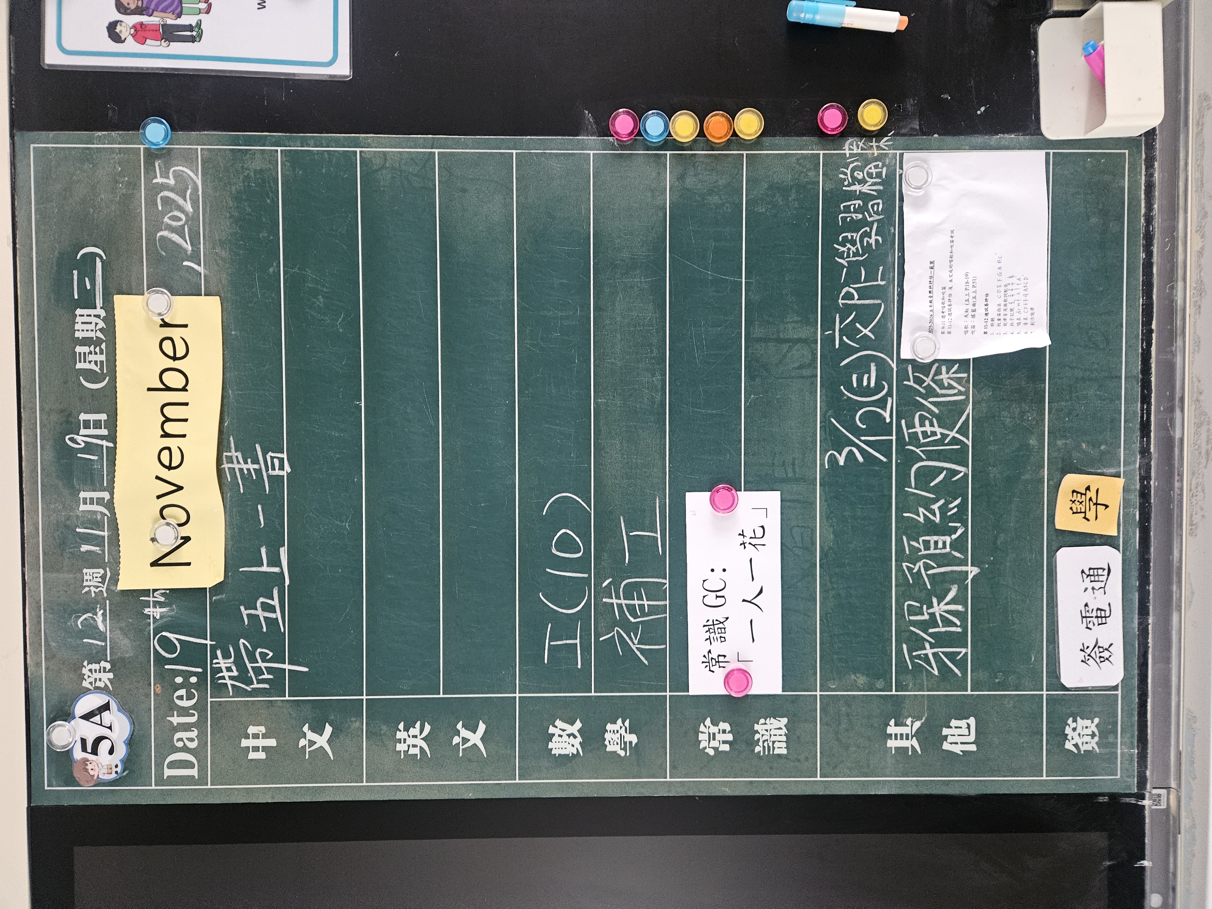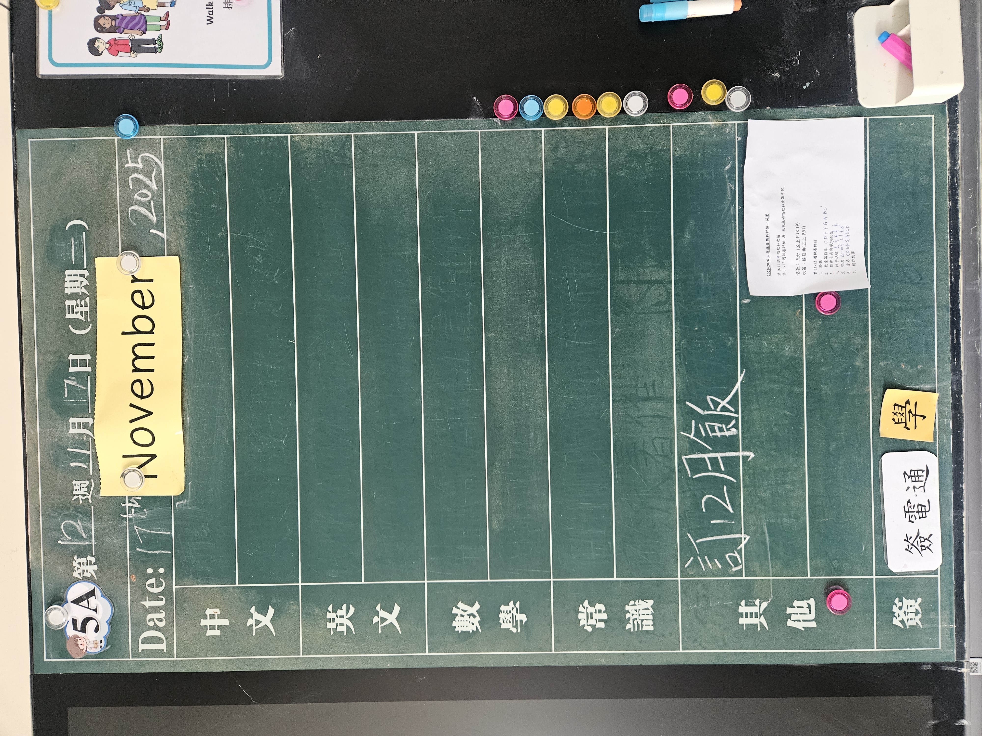 | 5A | 星期一 | 星期二 | 星期三 | 星期四 | 星期五 |