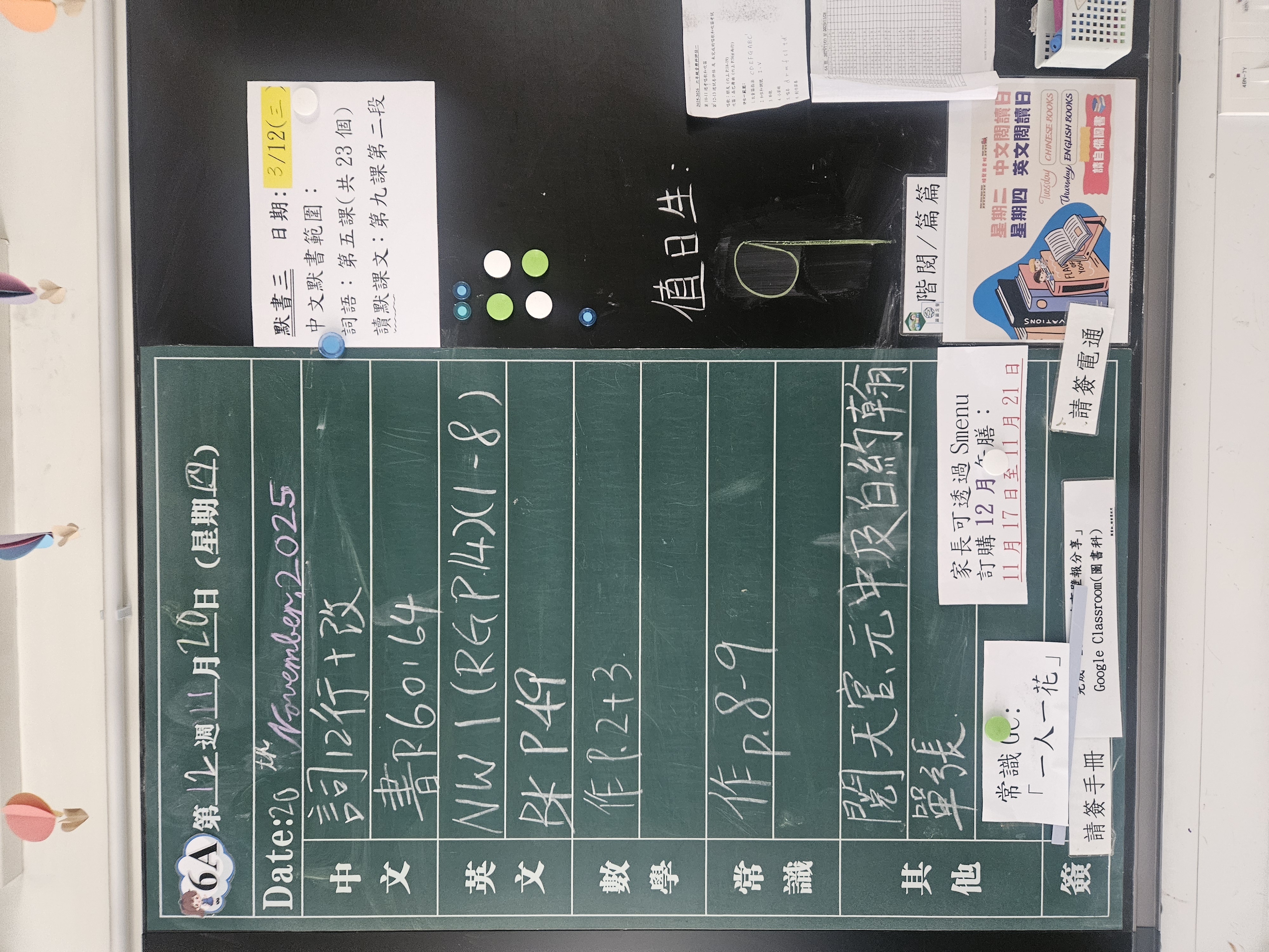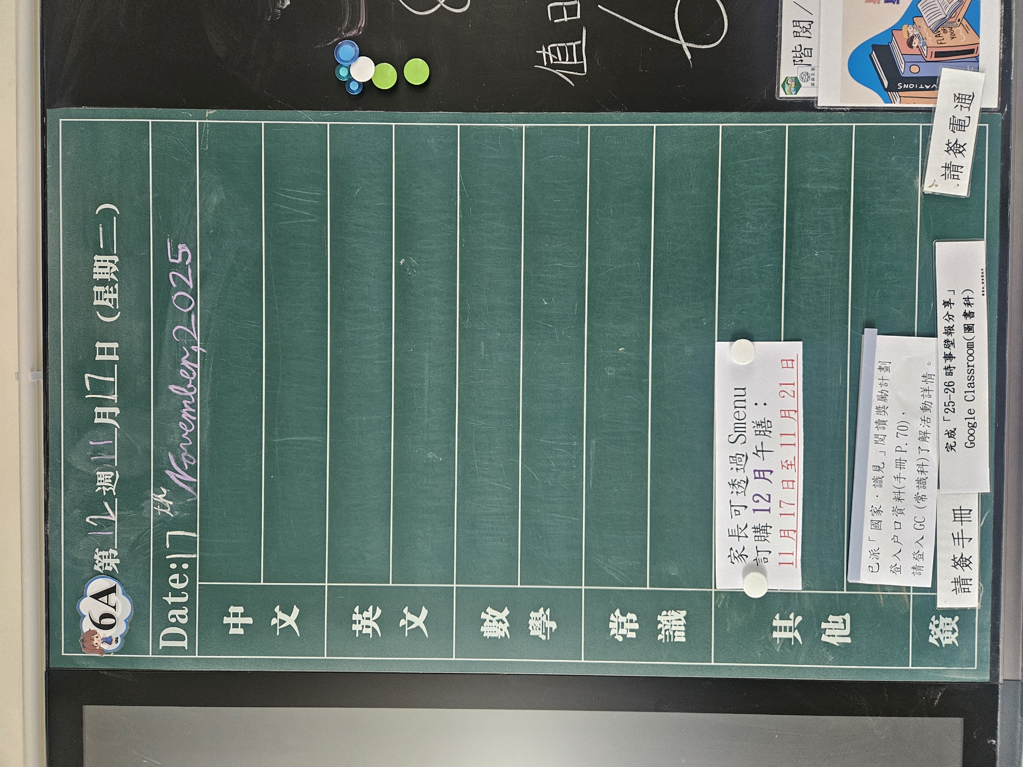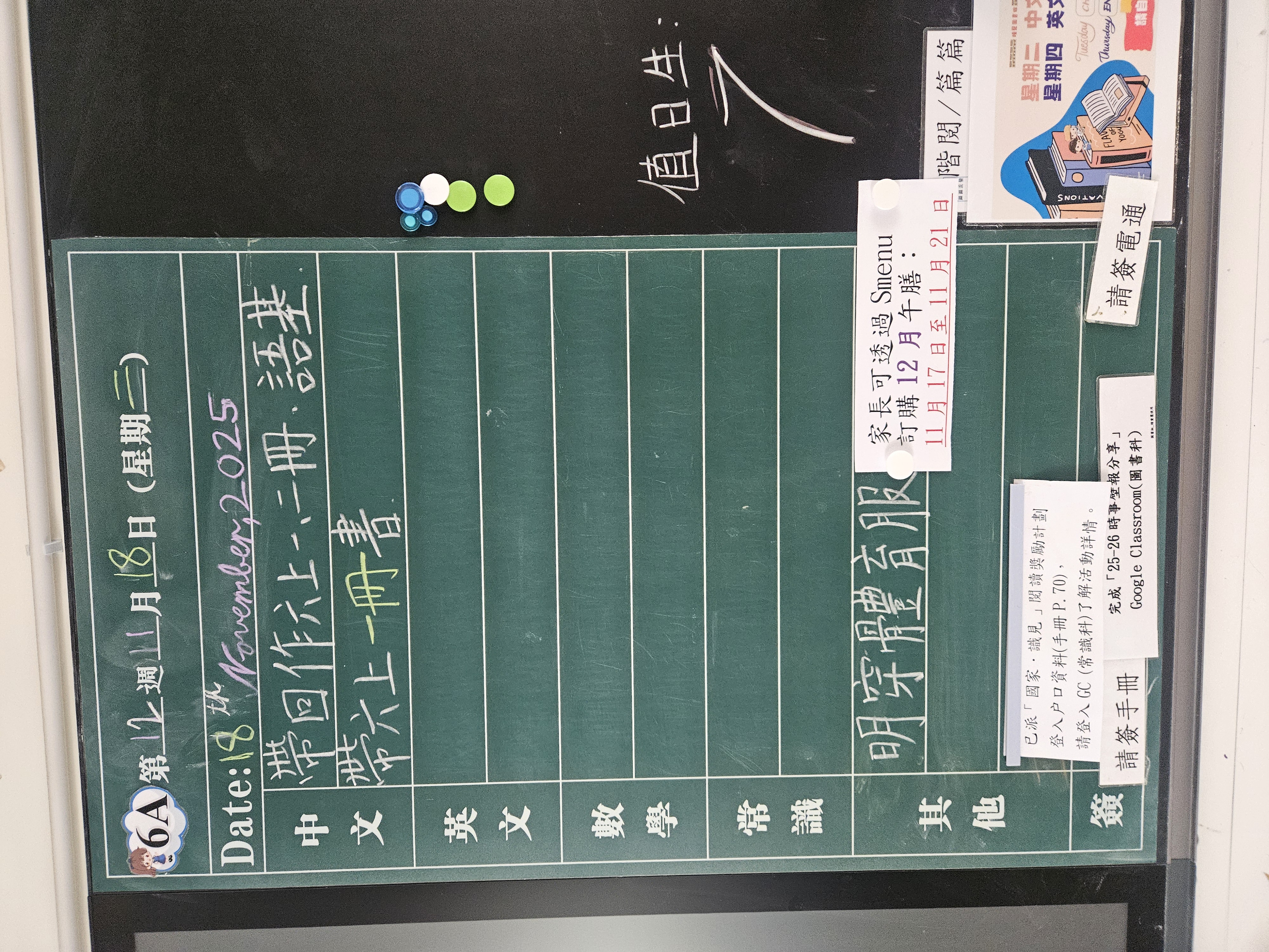 | 6A | 星期一 | 星期二 | 星期三 | 星期四 | 星期五 |