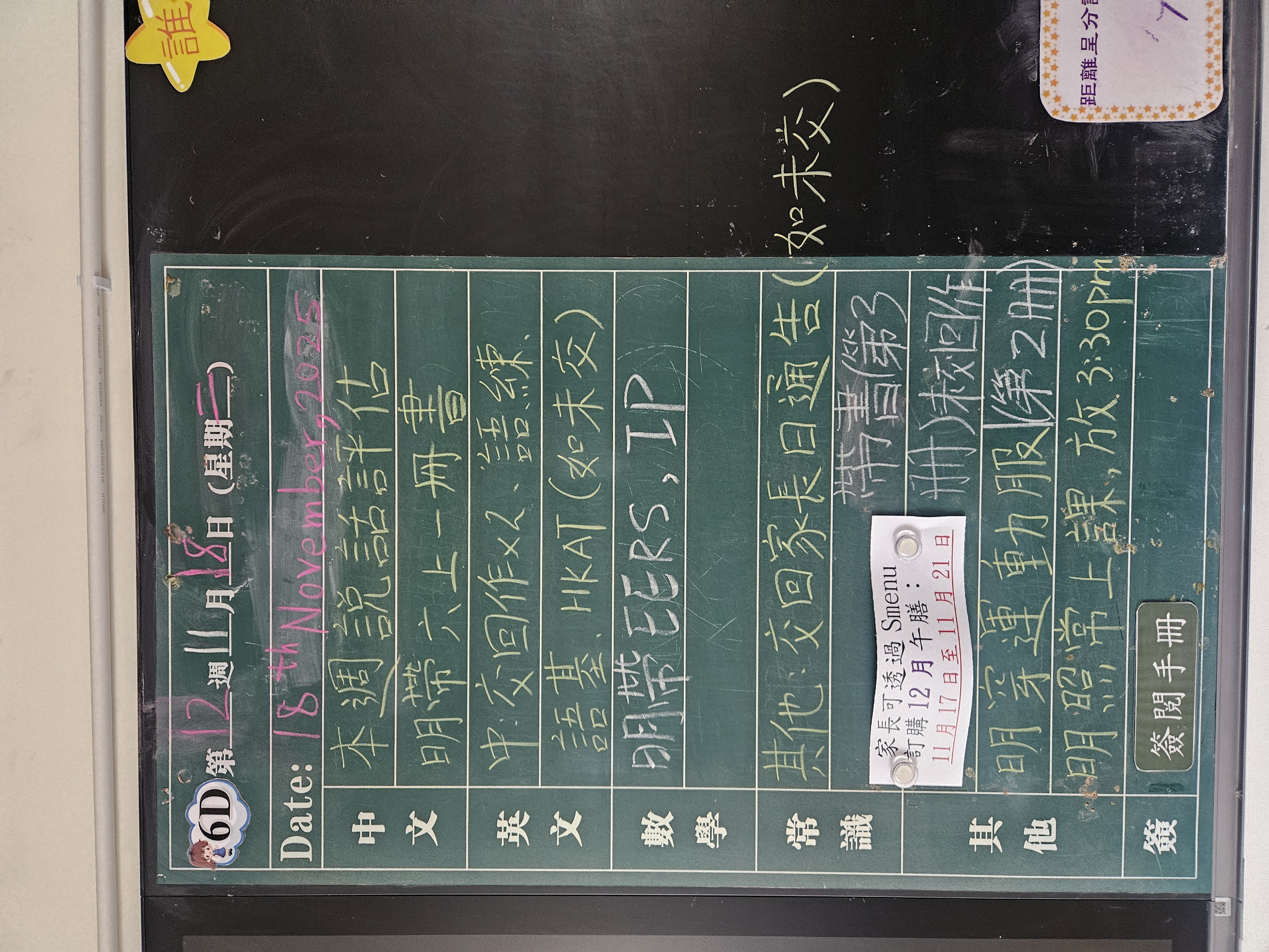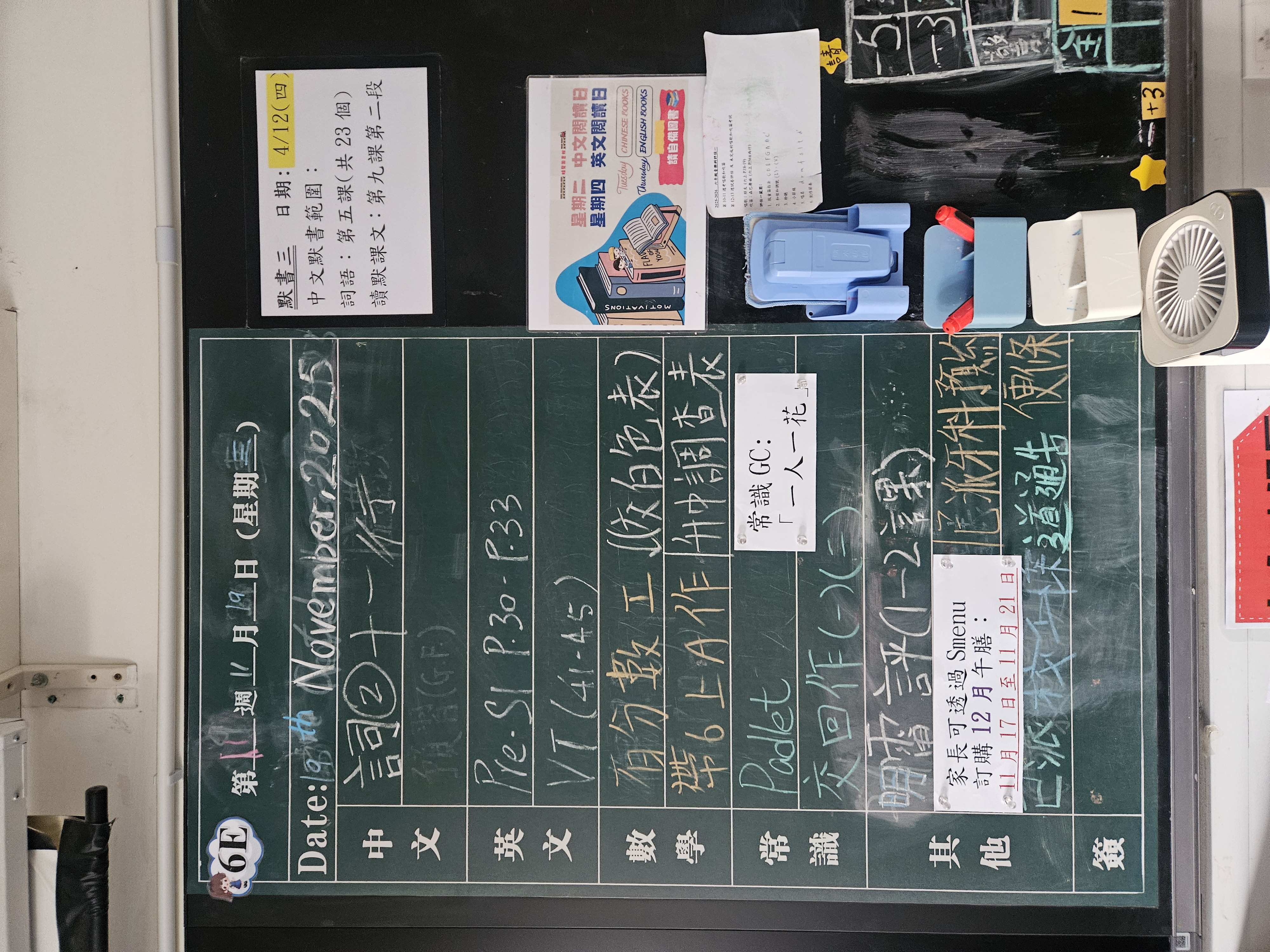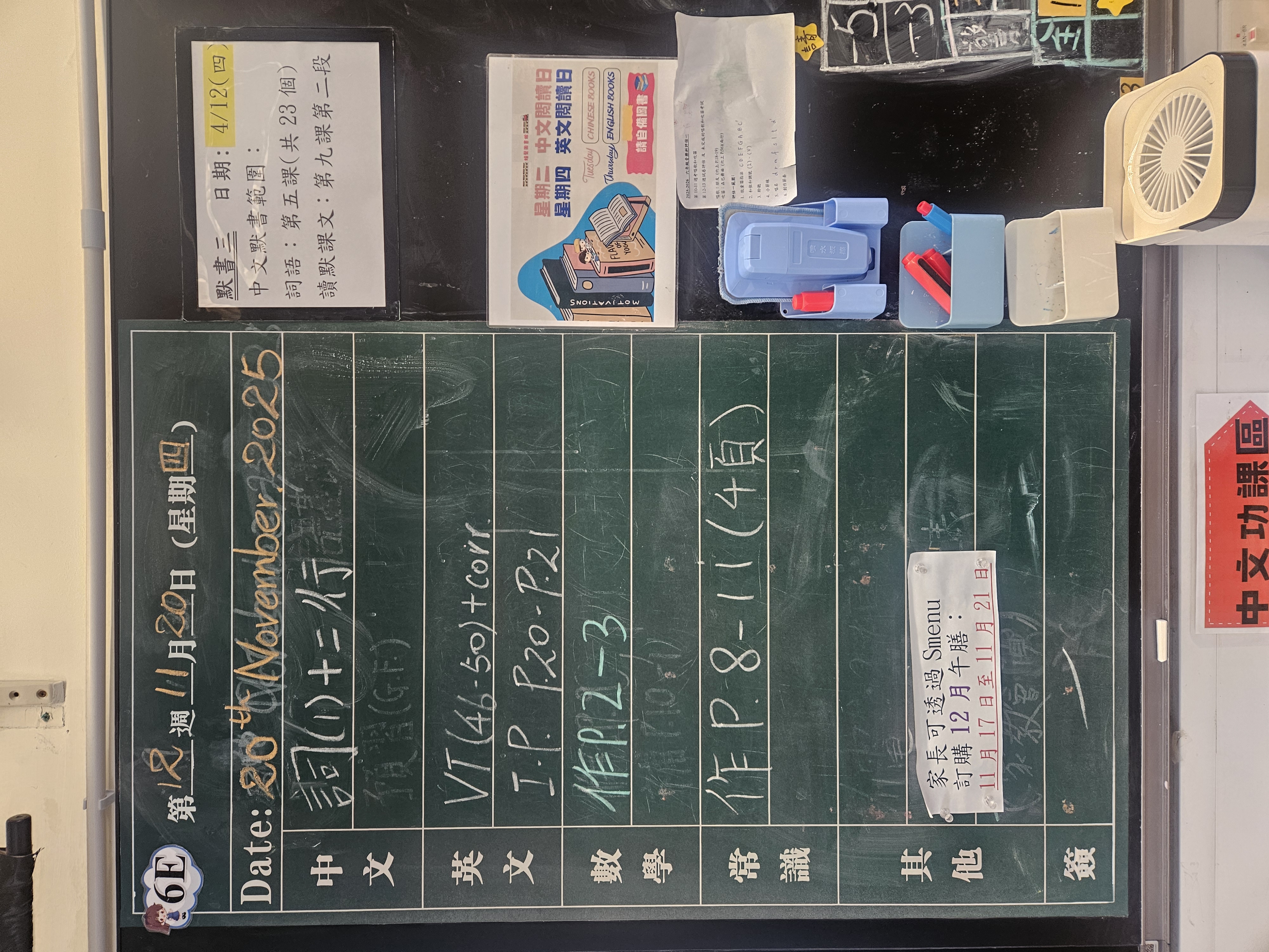 | 6A | 星期一 | 星期二 | 星期三 | 星期四 | 星期五 |