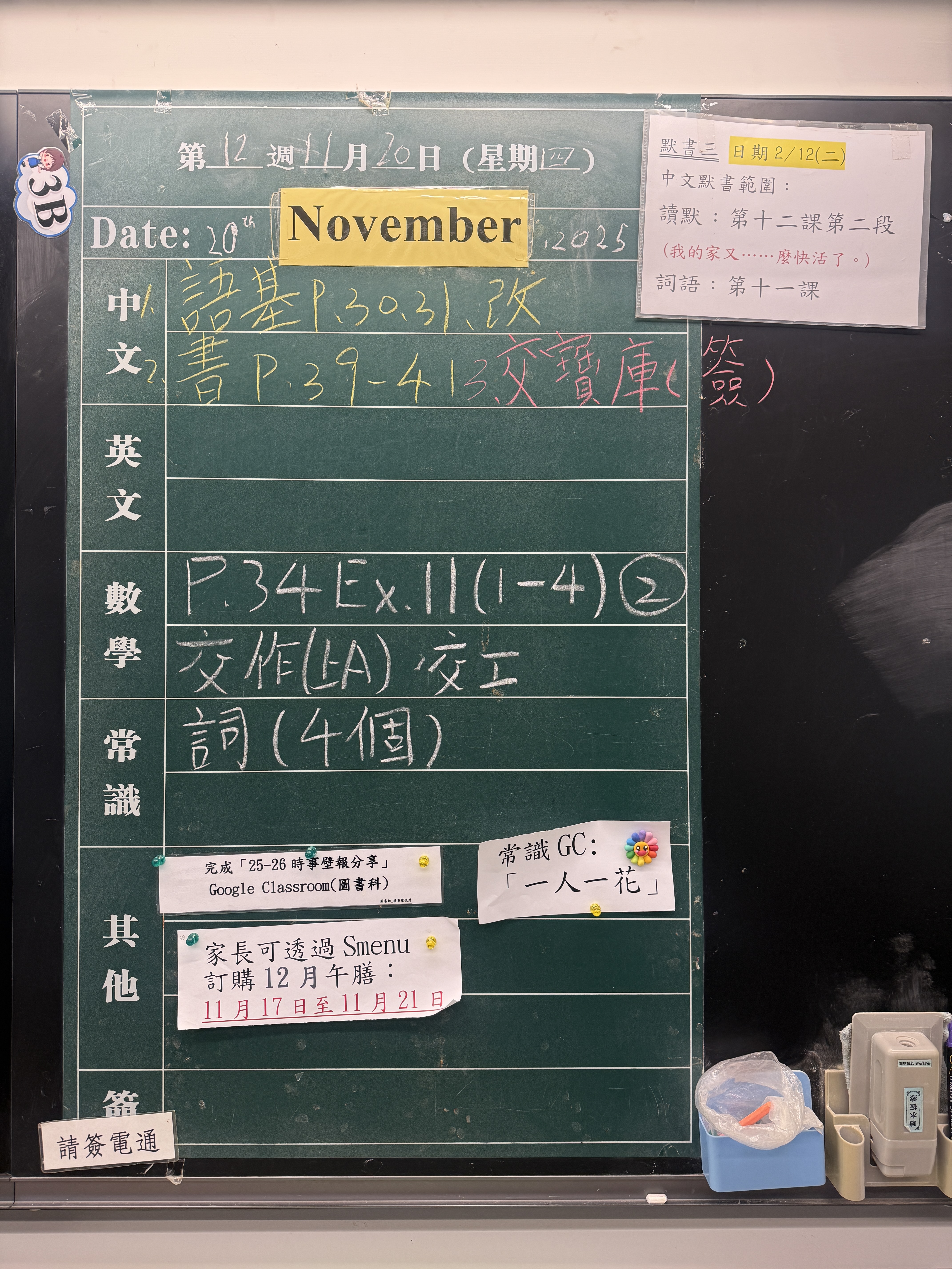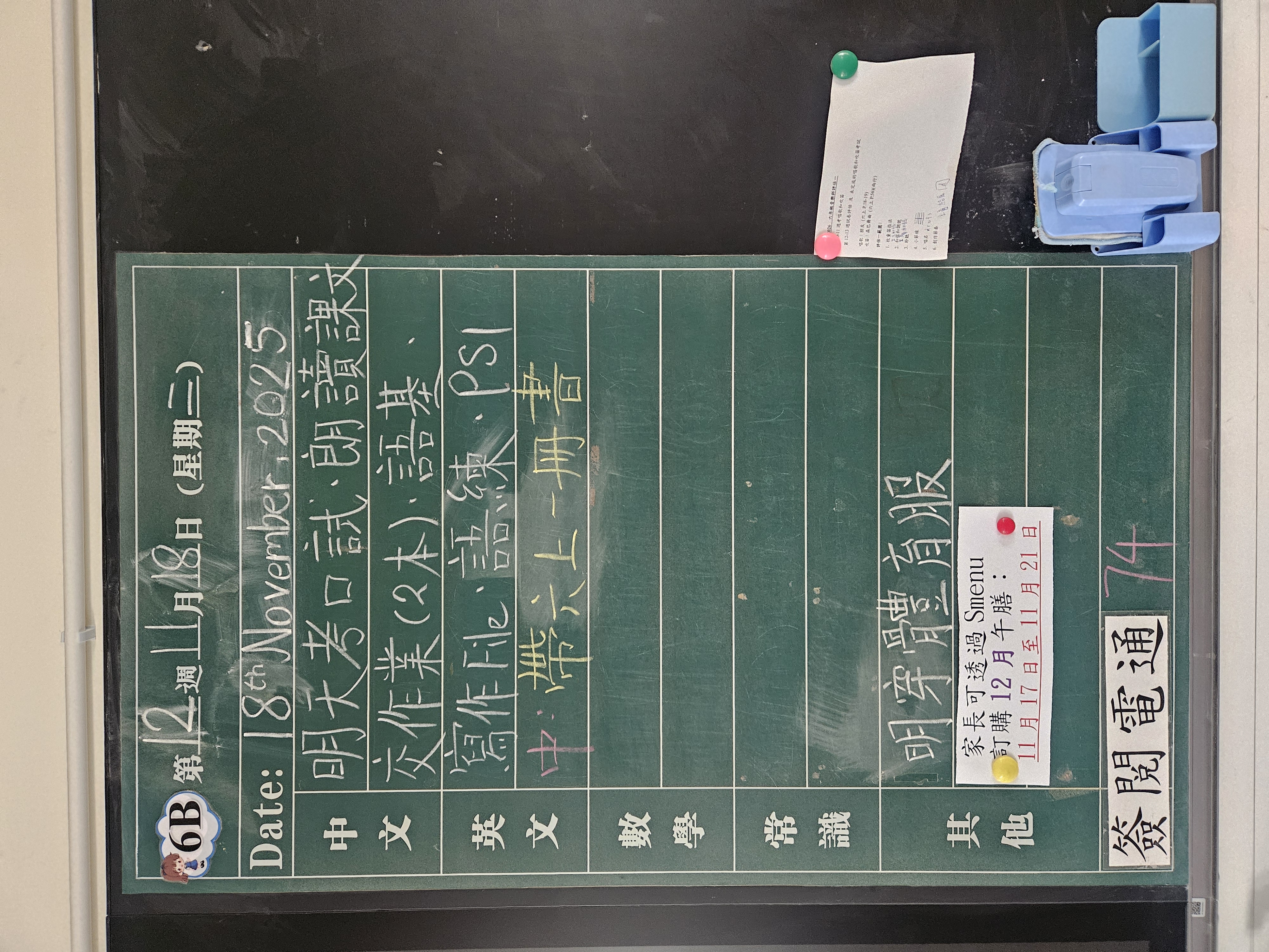 | 6B | 星期一 | 星期二 | 星期三 | 星期四 | 星期五 |