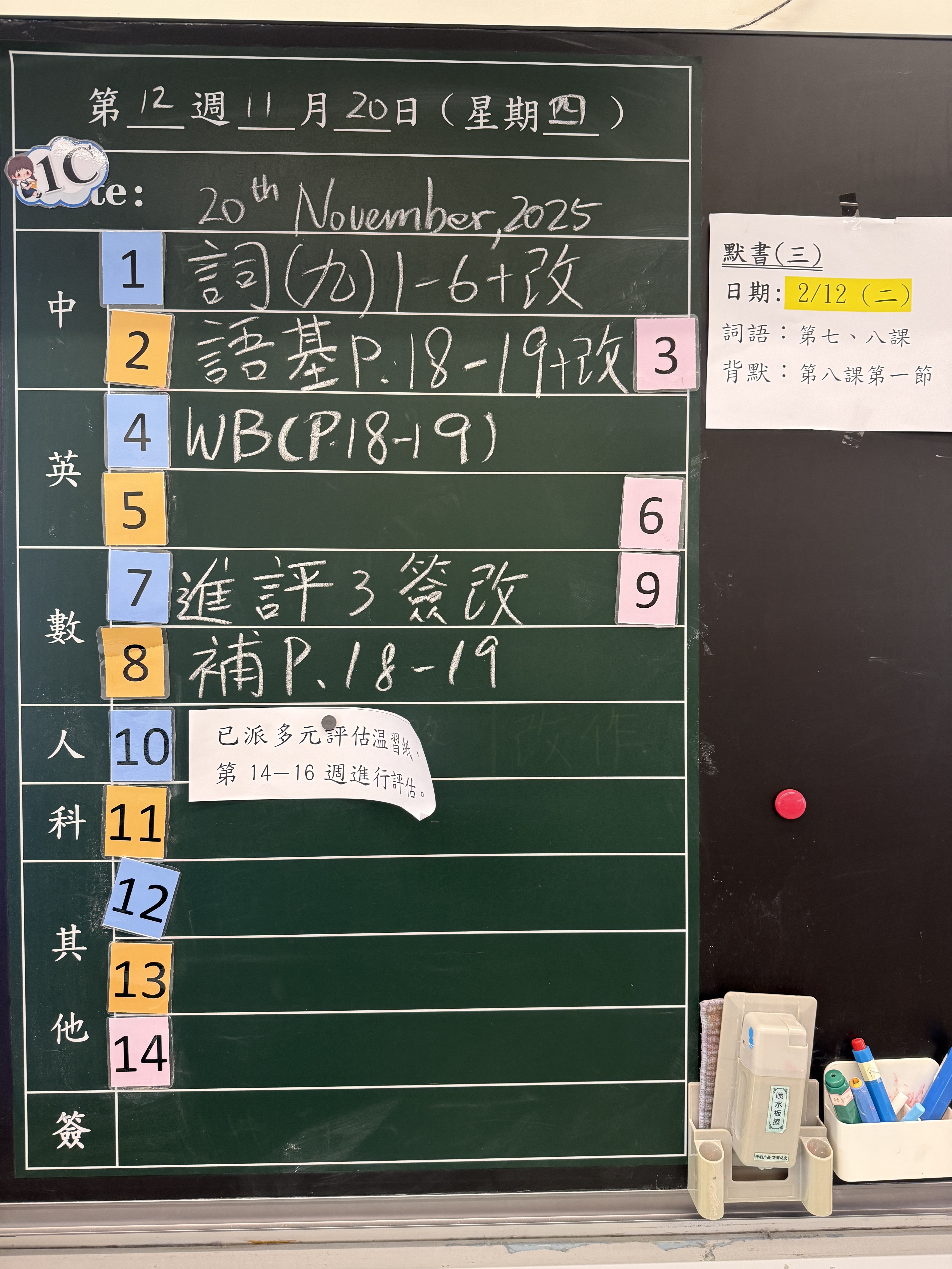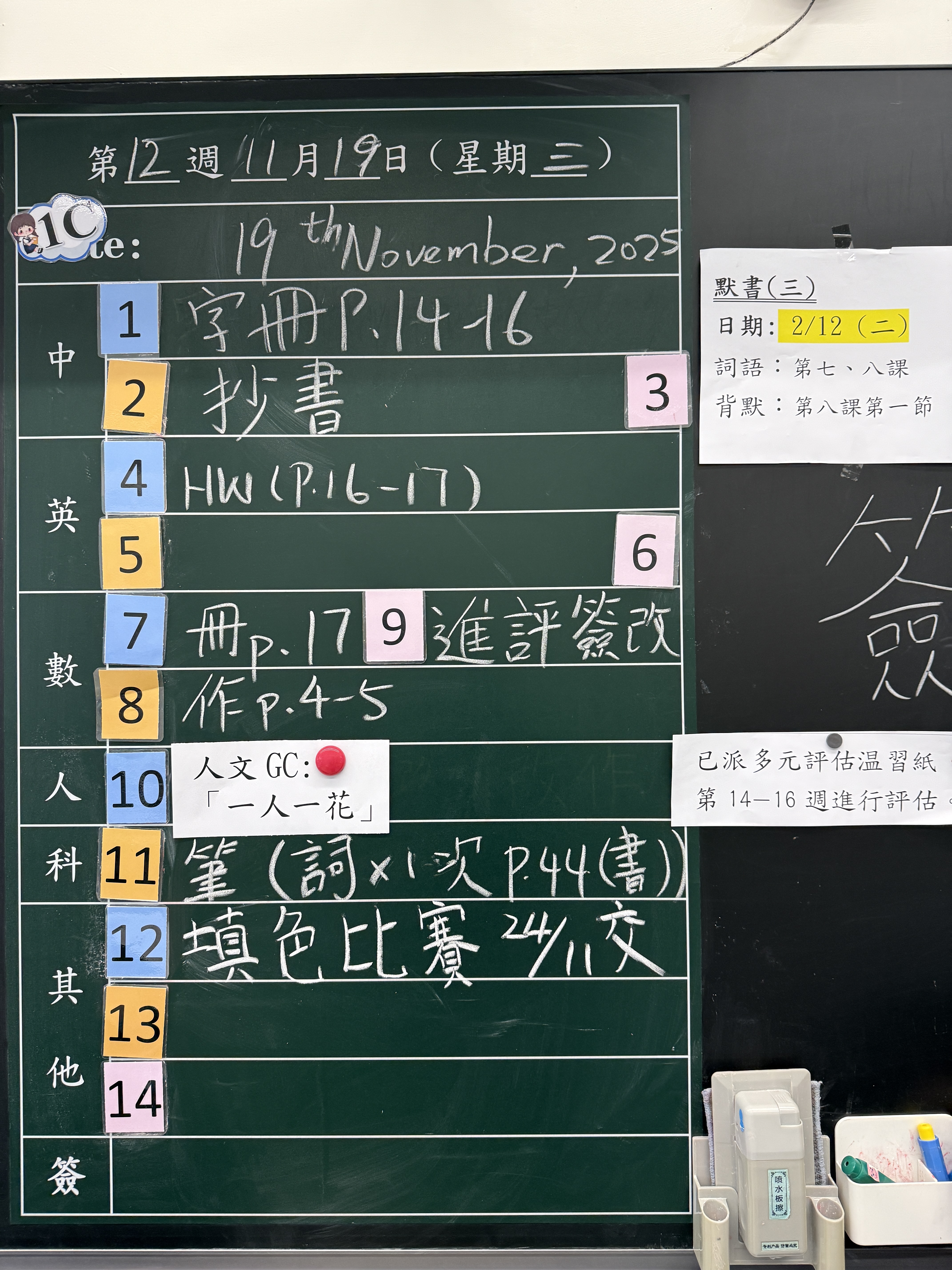 | 1C | 星期一 | 星期二 | 星期三 | 星期四 | 星期五 |