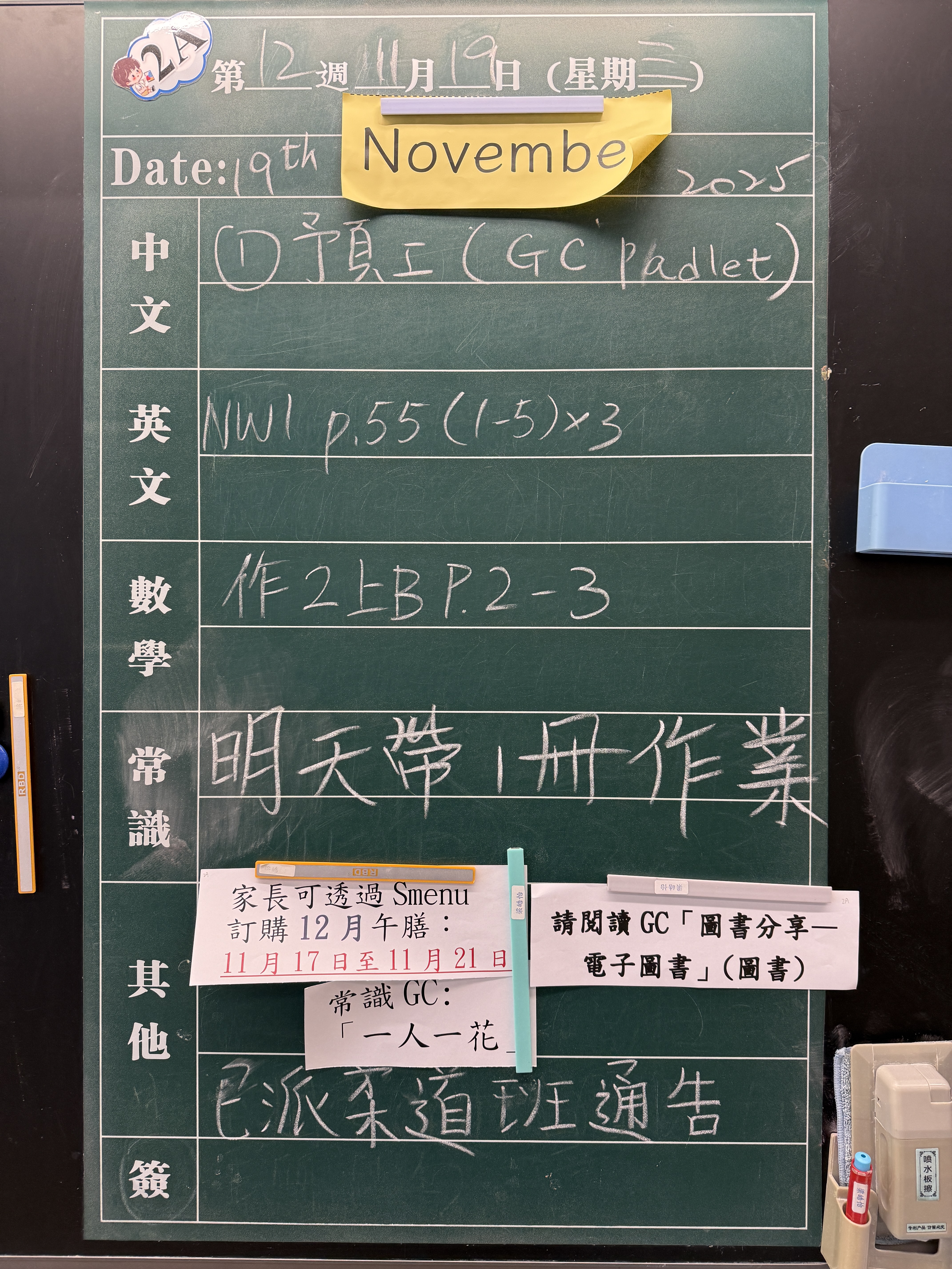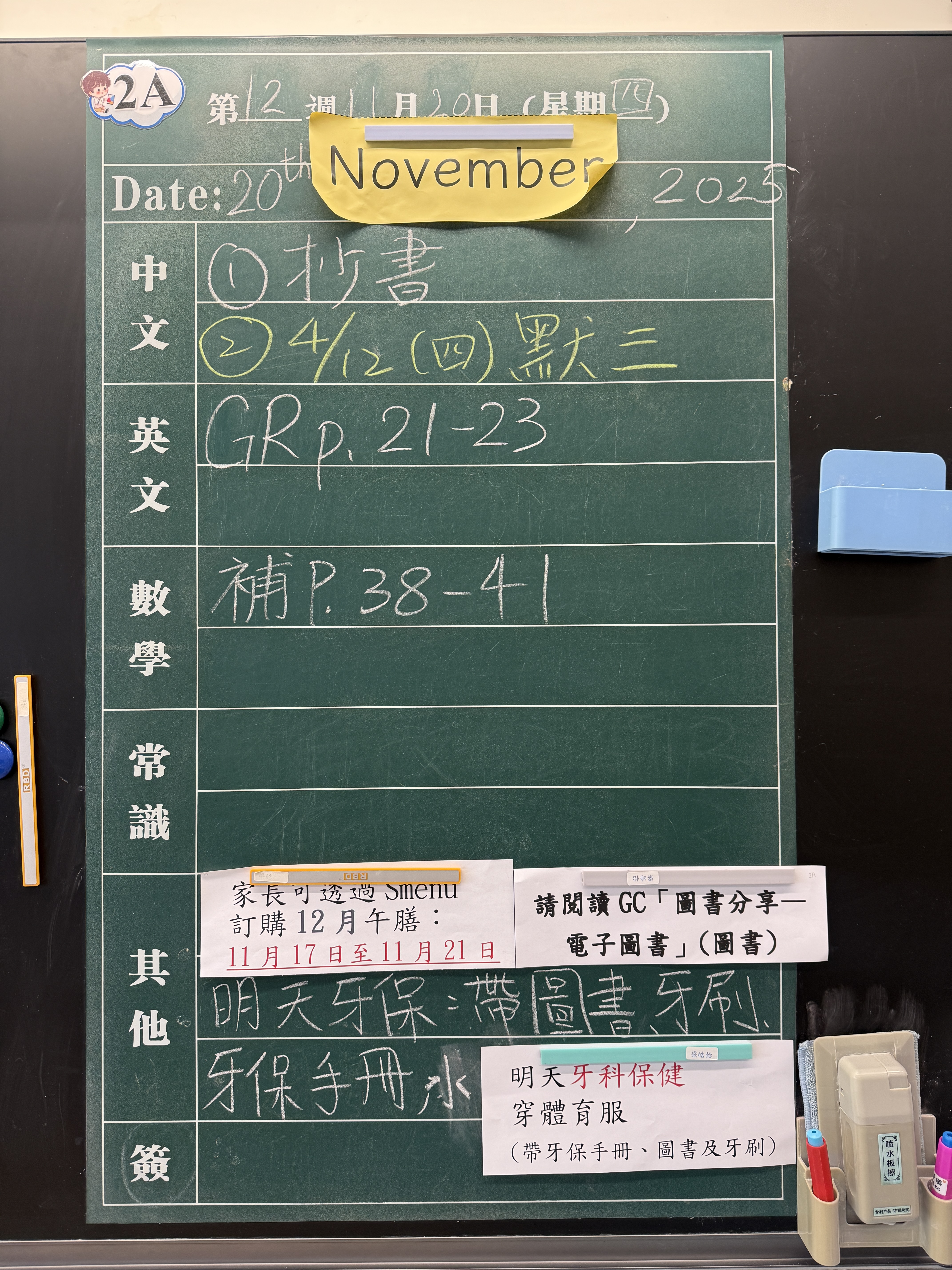 | 2A | 星期一 | 星期二 | 星期三 | 星期四 | 星期五 |