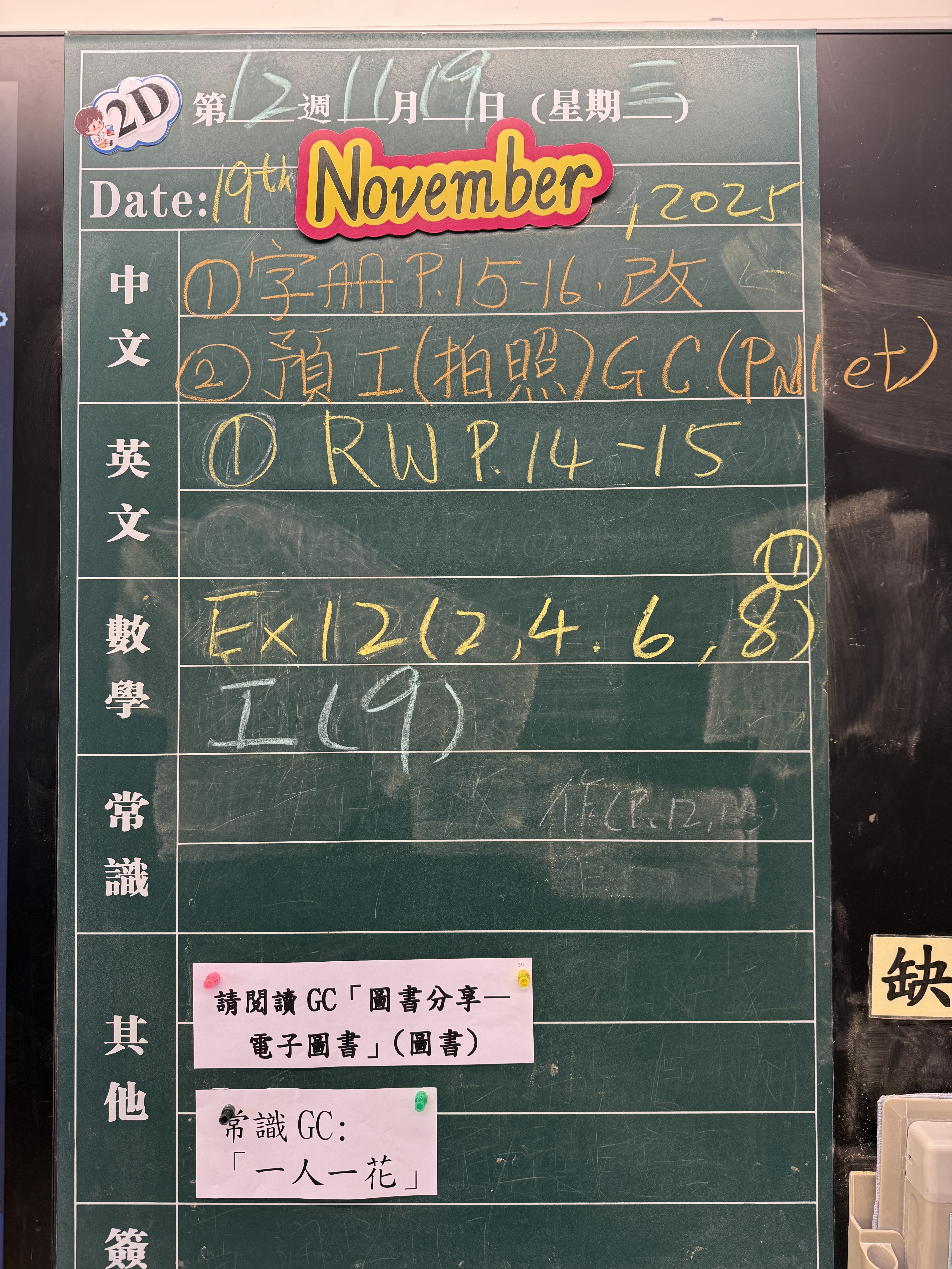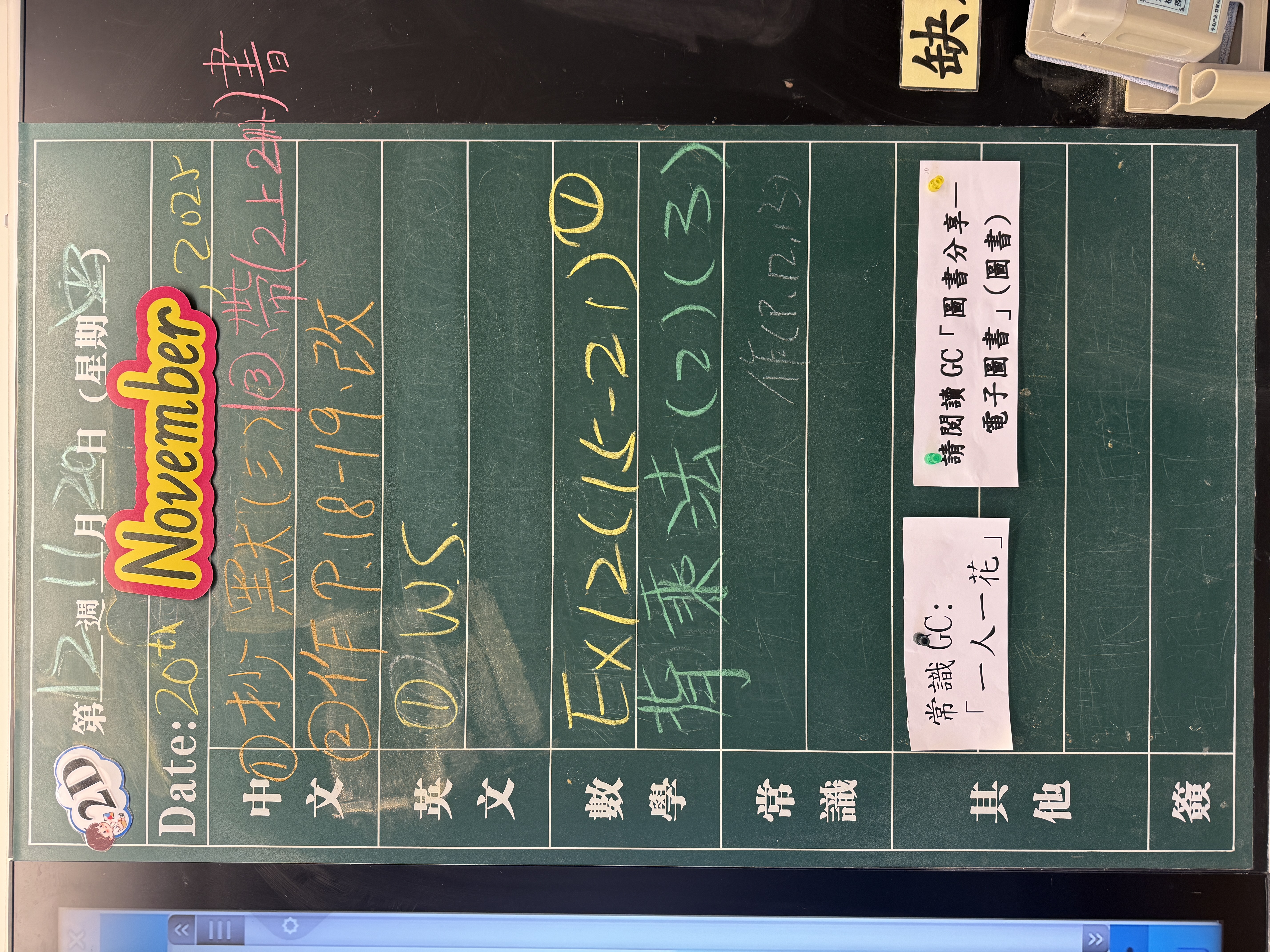 | 2D | 星期一 | 星期二 | 星期三 | 星期四 | 星期五 |