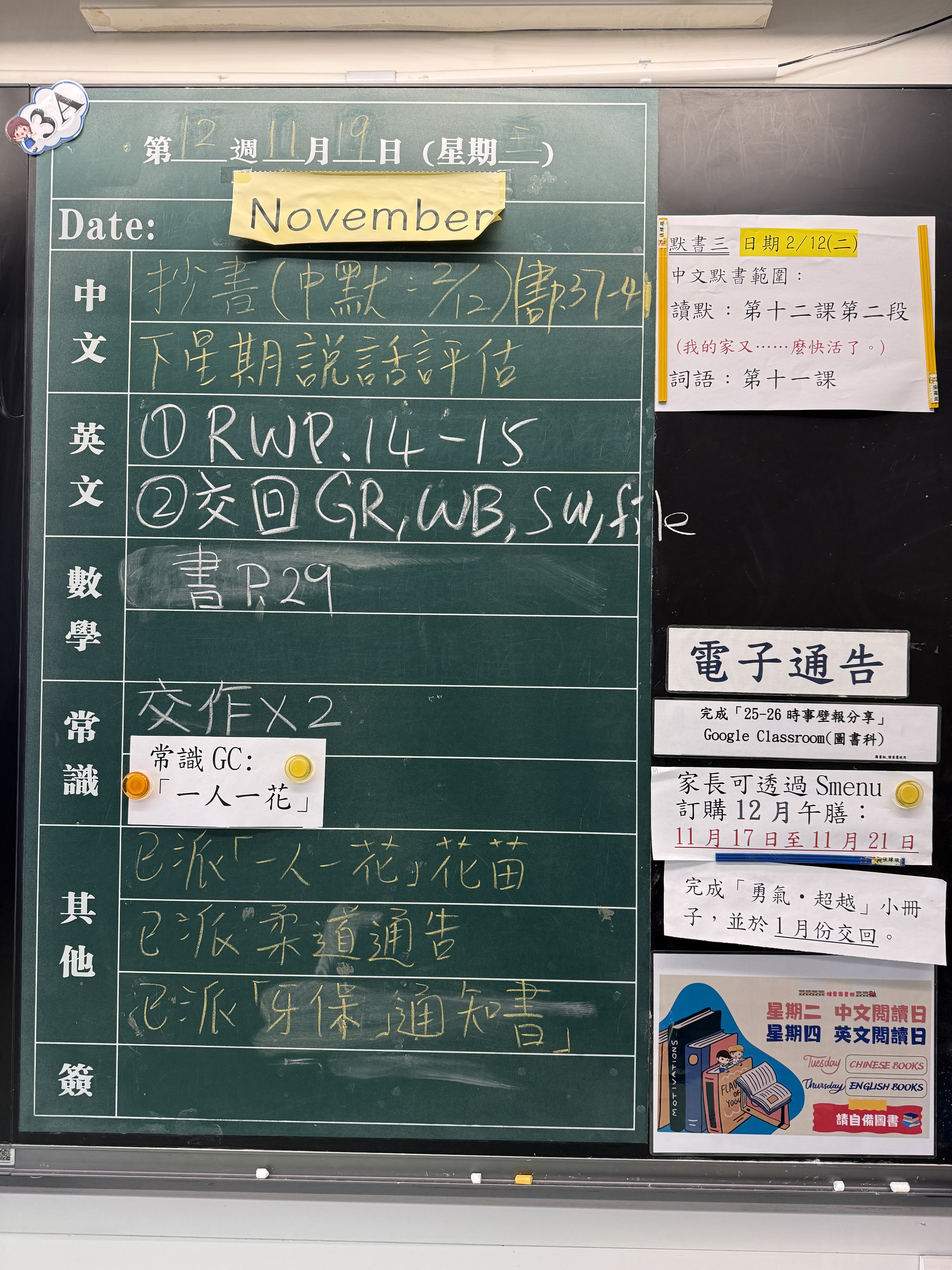 | 3A | 星期一 | 星期二 | 星期三 | 星期四 | 星期五 |