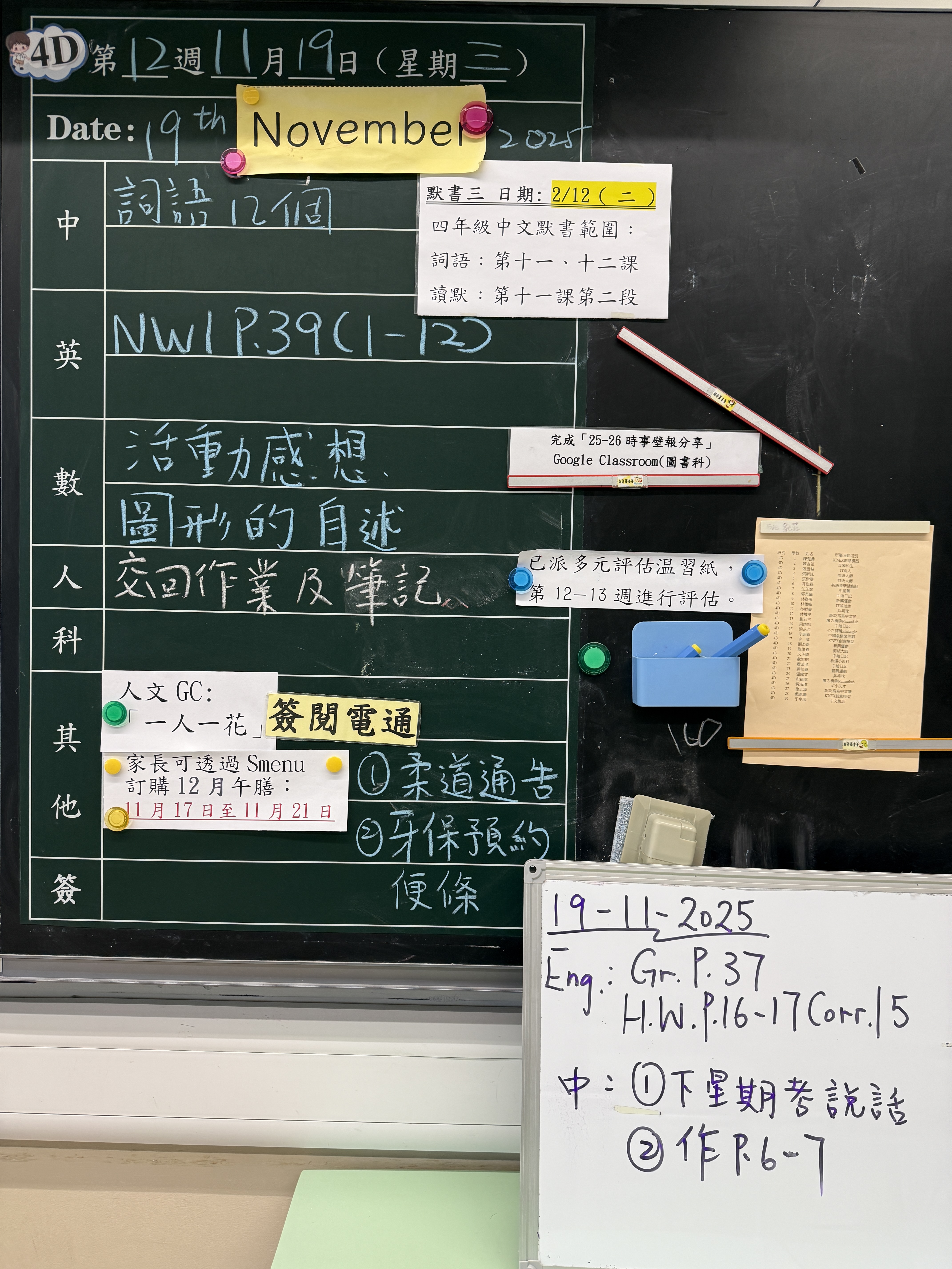 | 4D | 星期一 | 星期二 | 星期三 | 星期四 | 星期五 |