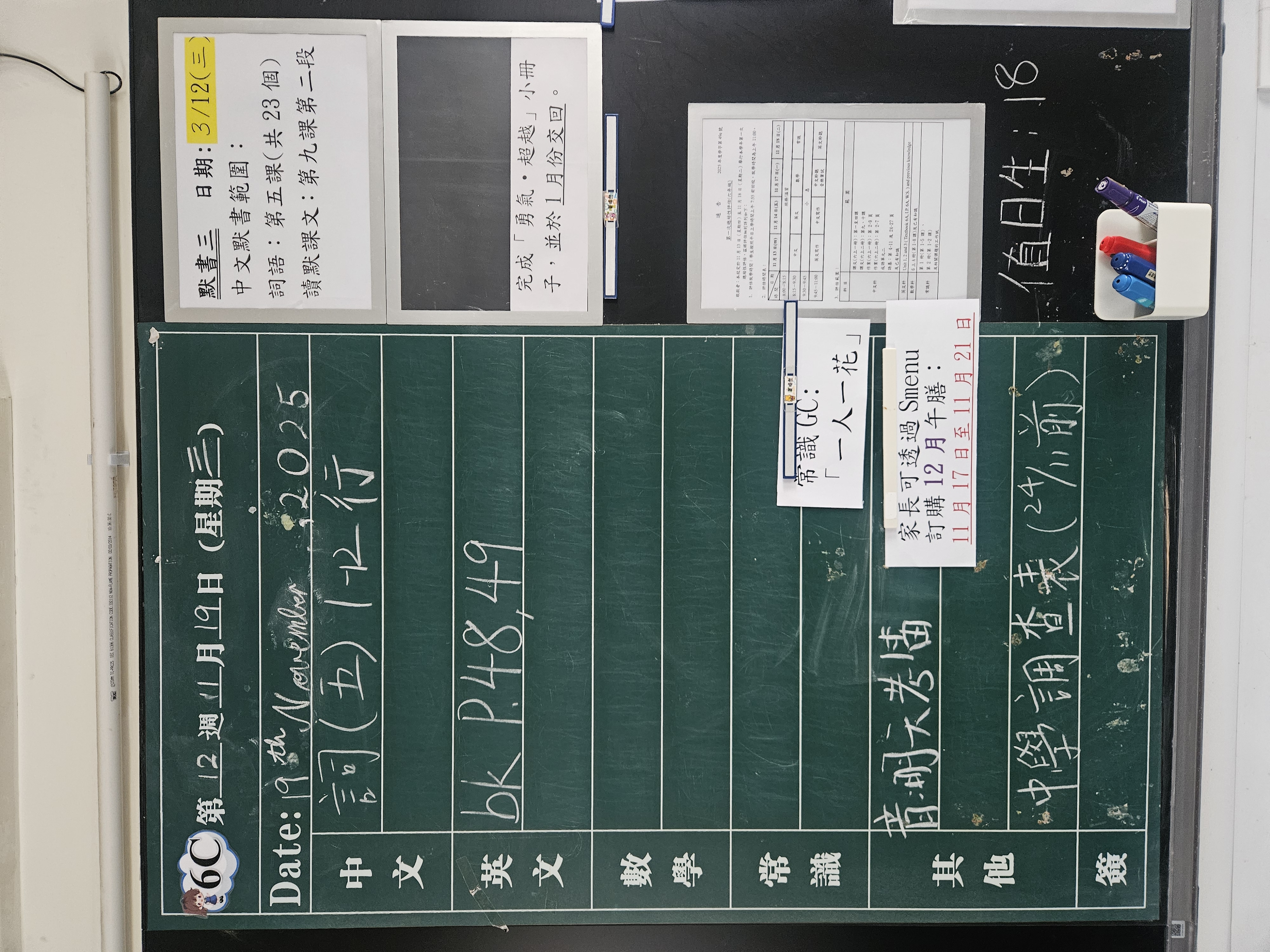 | 6C | 星期一 | 星期二 | 星期三 | 星期四 | 星期五 |