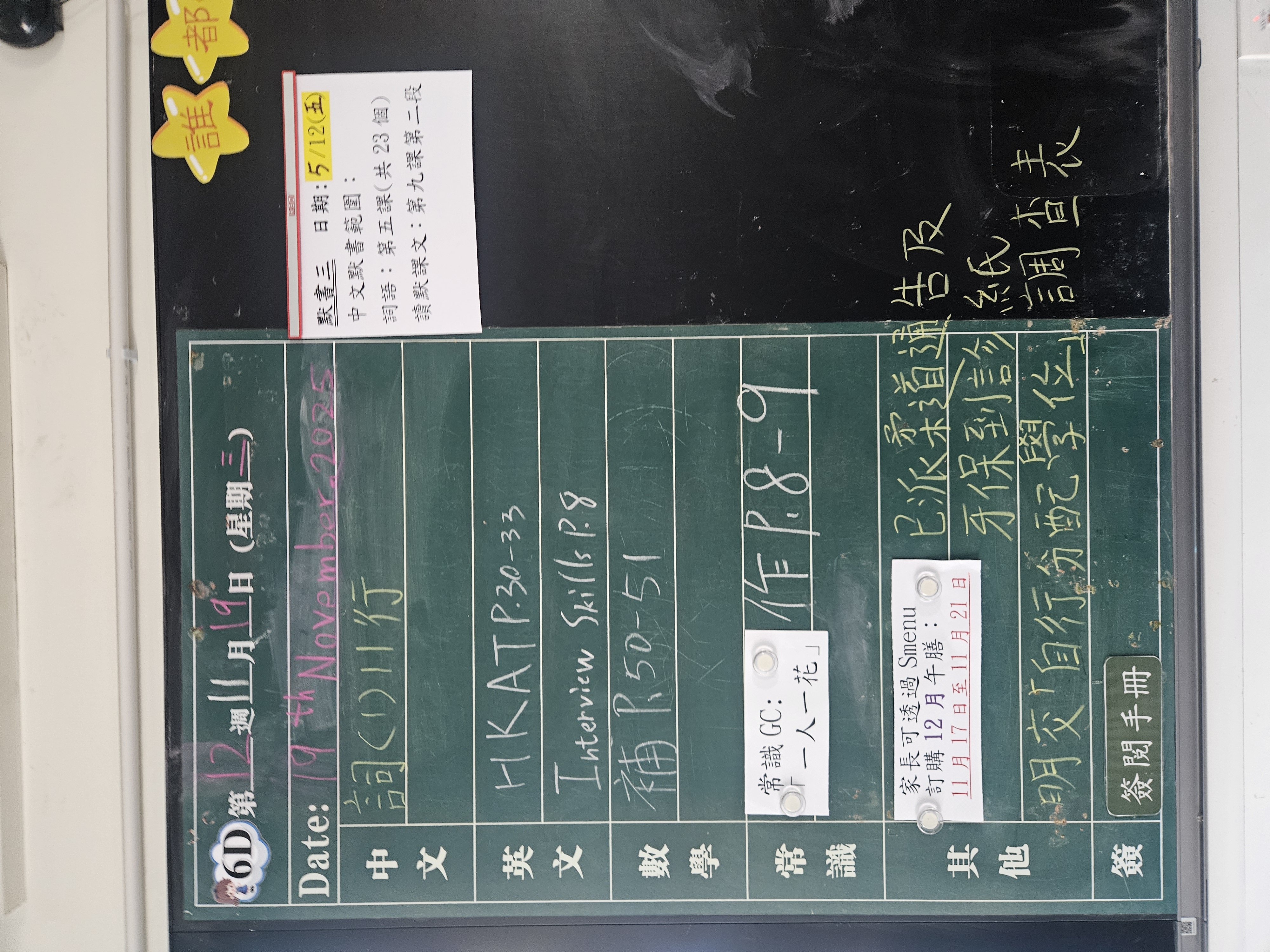 | 6D | 星期一 | 星期二 | 星期三 | 星期四 | 星期五 |