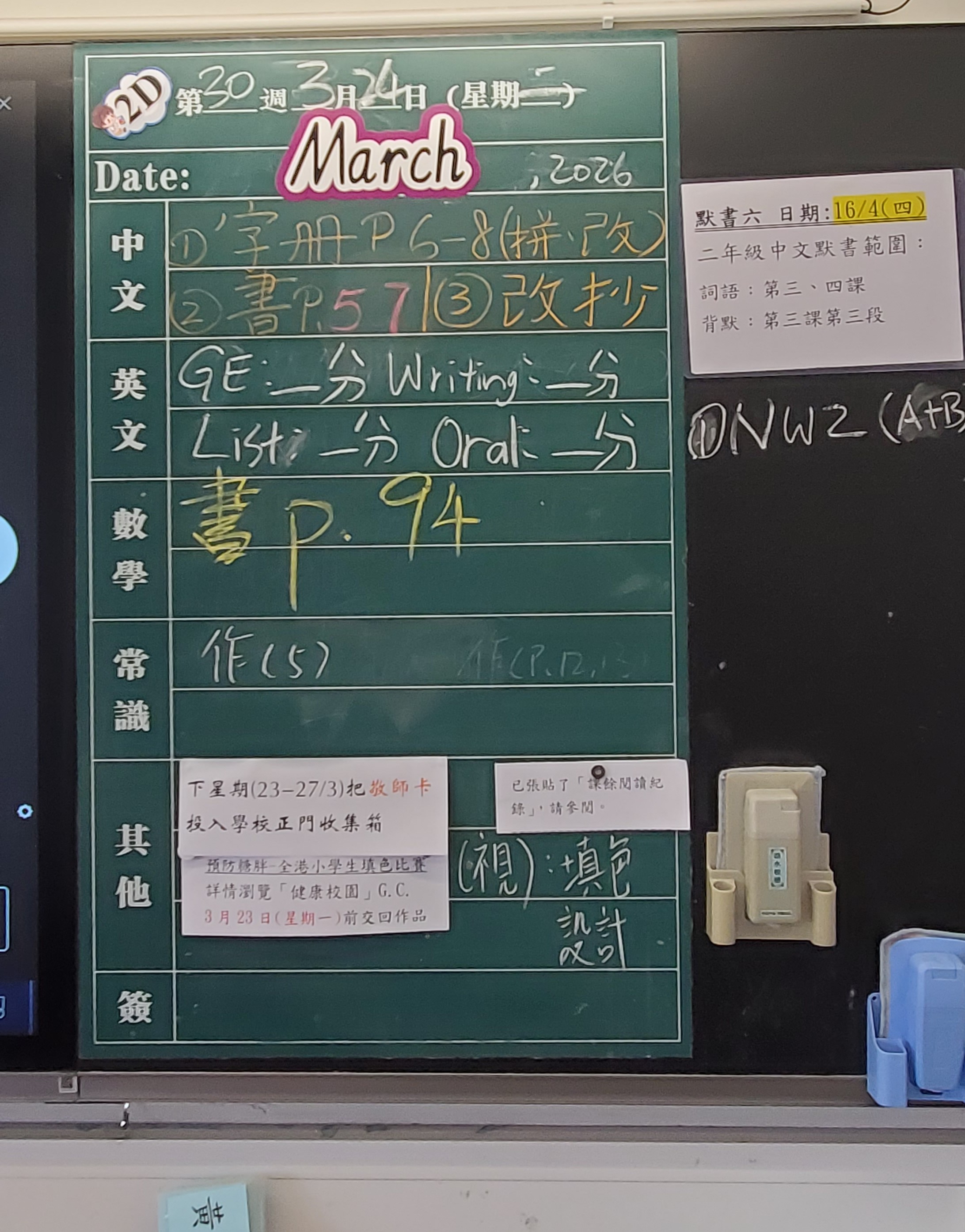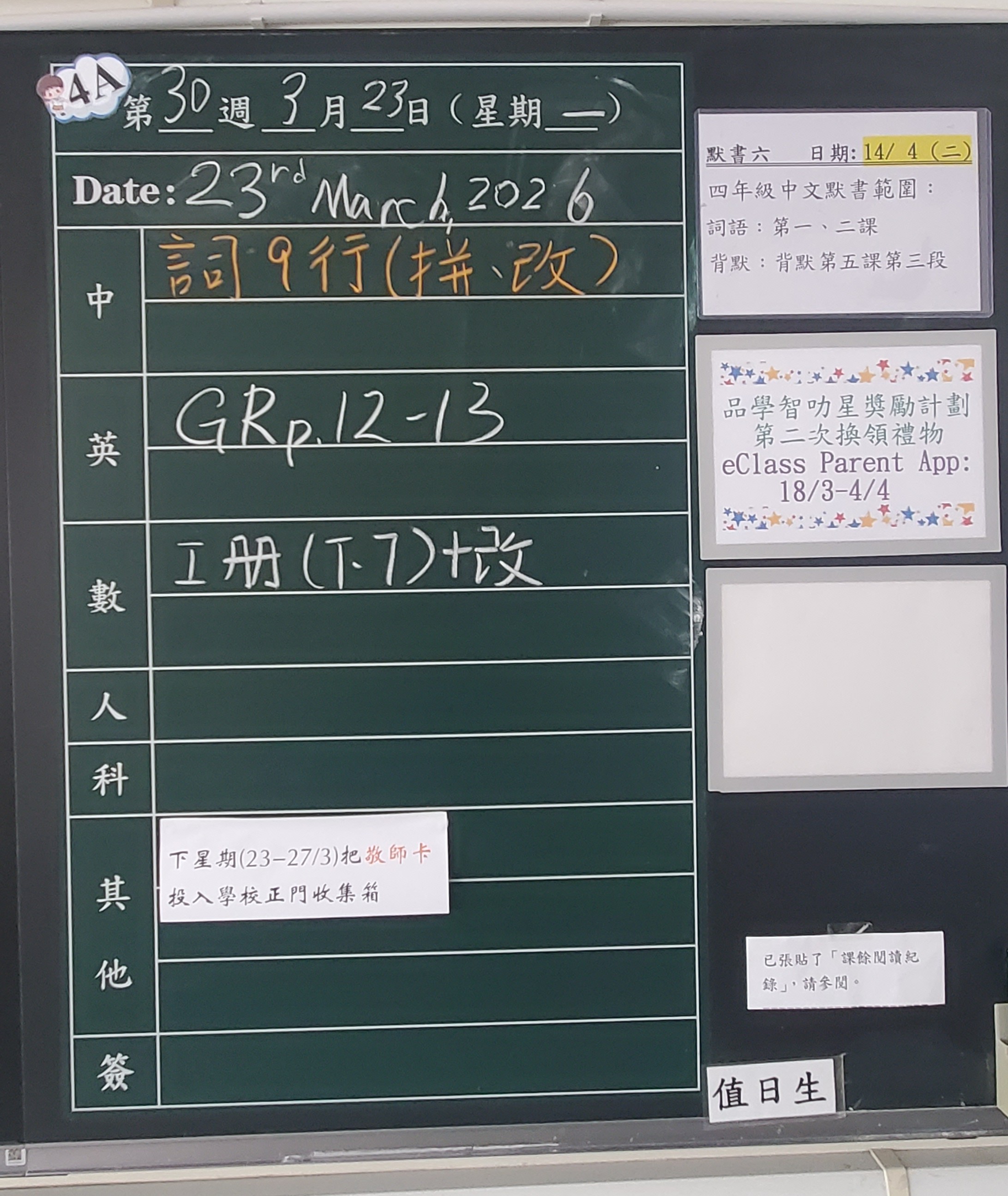 本週家課