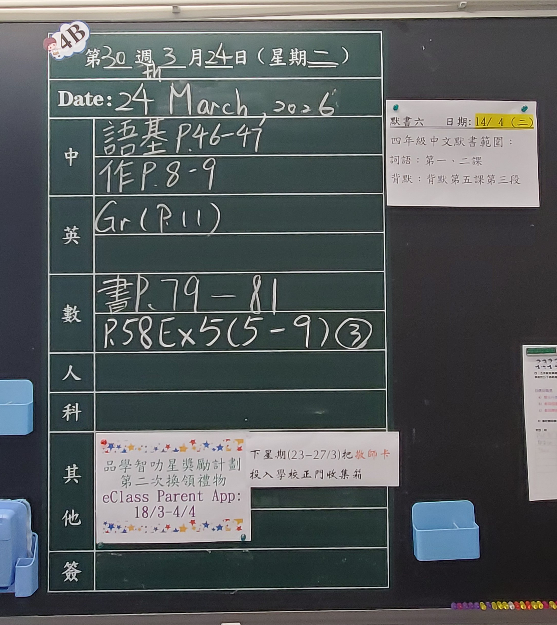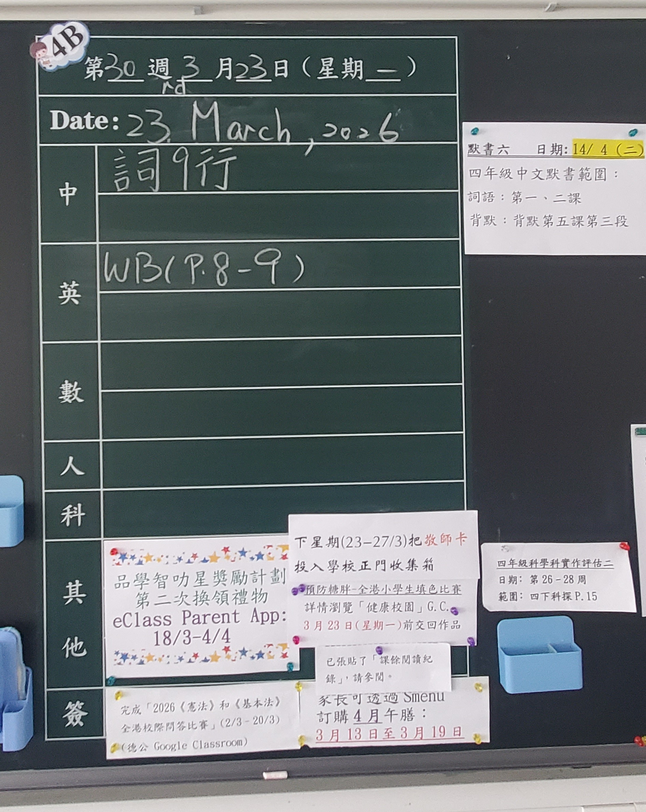 | 4B | 星期一 | 星期二 | 星期三 | 星期四 | 星期五 |