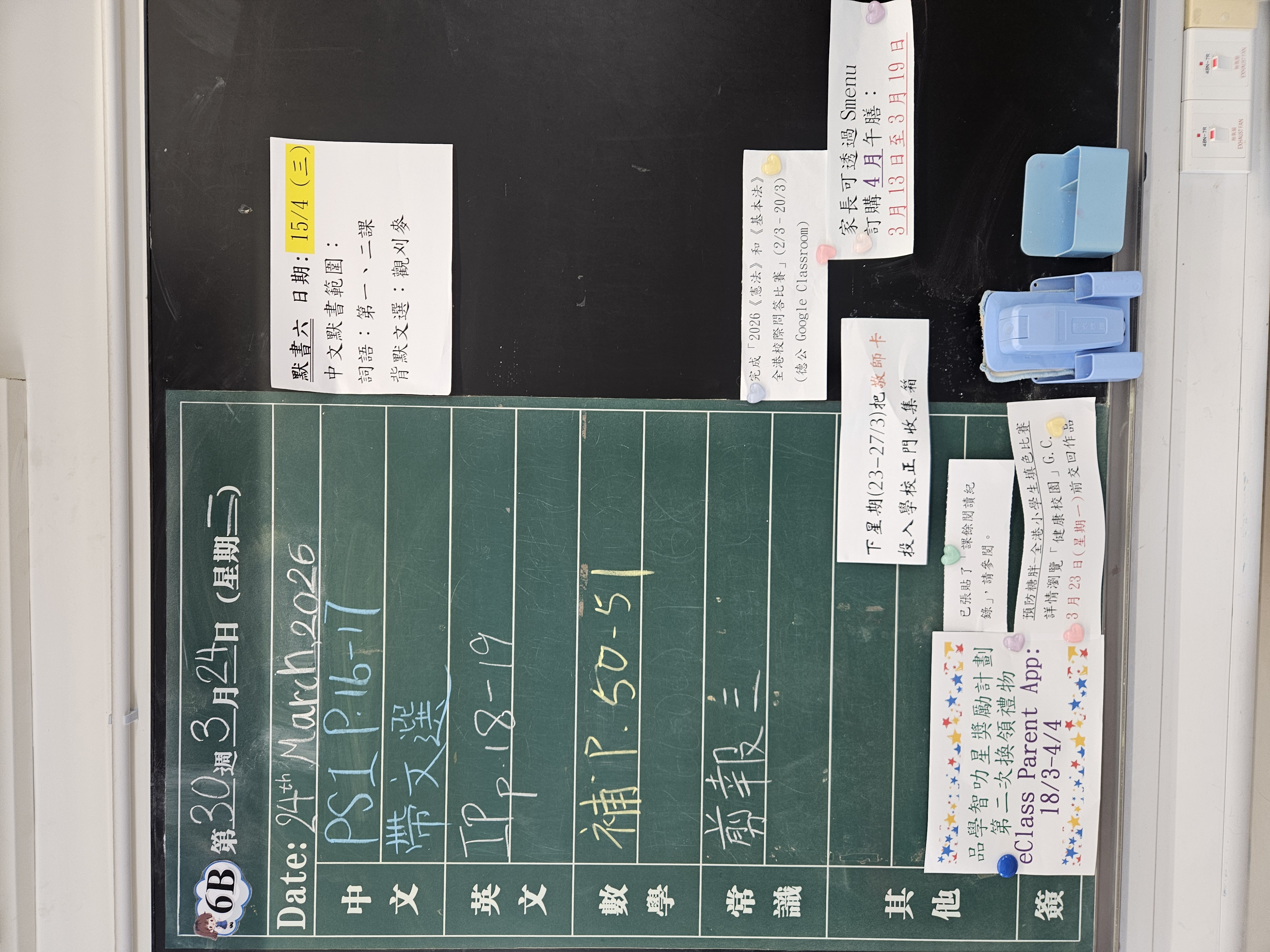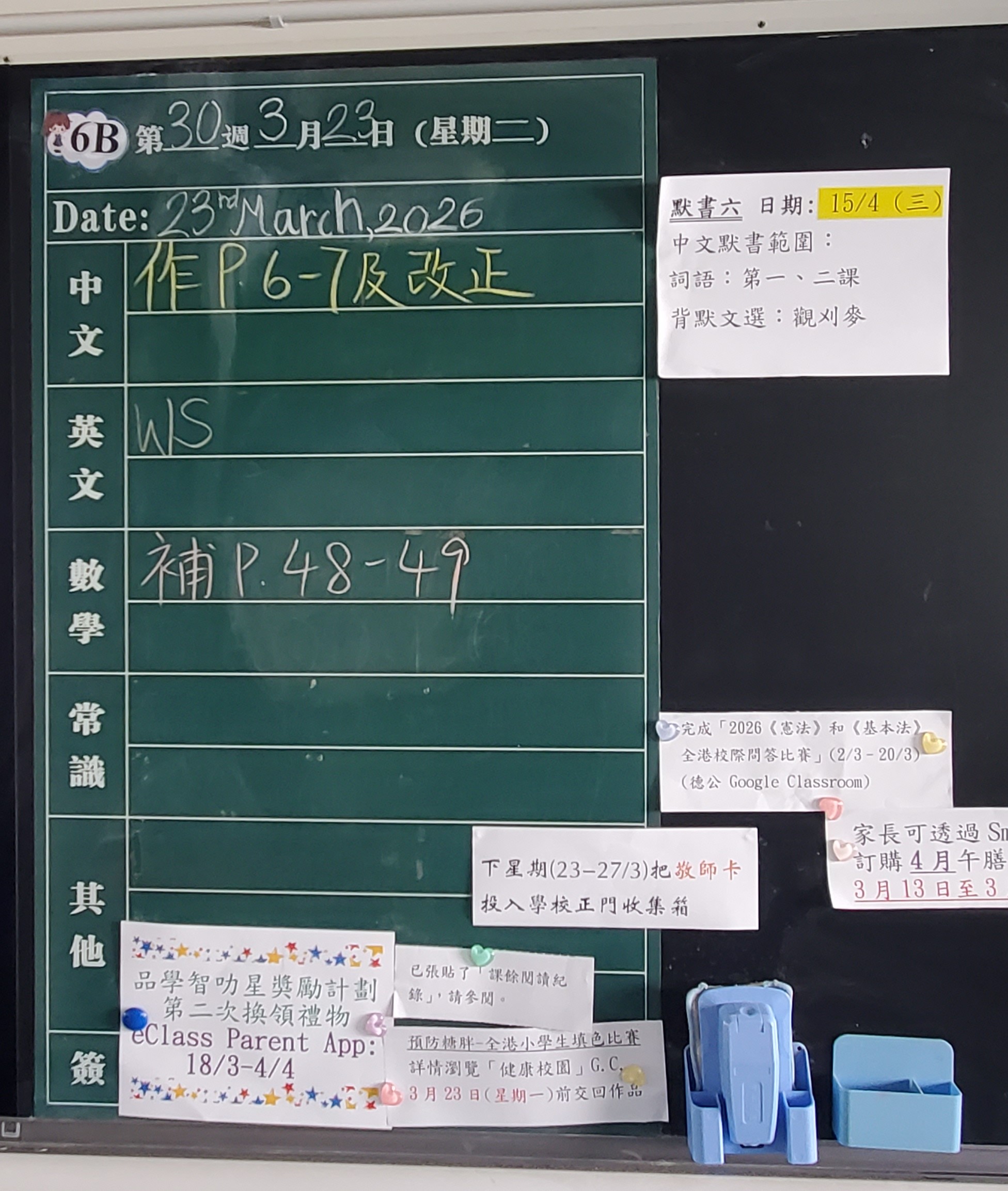 | 6B | 星期一 | 星期二 | 星期三 | 星期四 | 星期五 |
