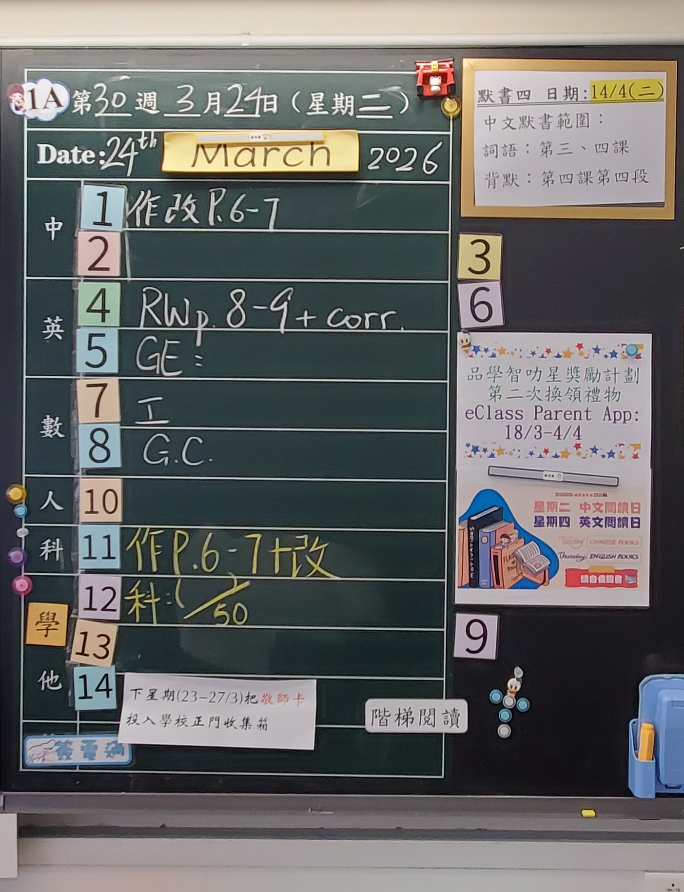 | 1A | 星期一 | 星期二 | 星期三 | 星期四 | 星期五 |