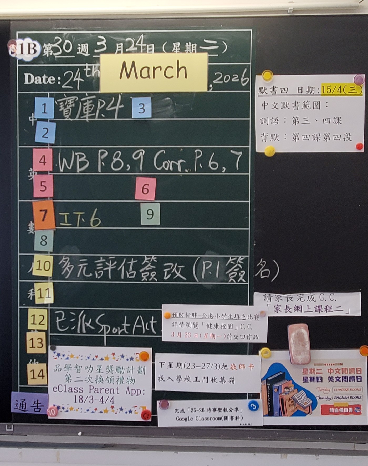 | 1B | 星期一 | 星期二 | 星期三 | 星期四 | 星期五 |