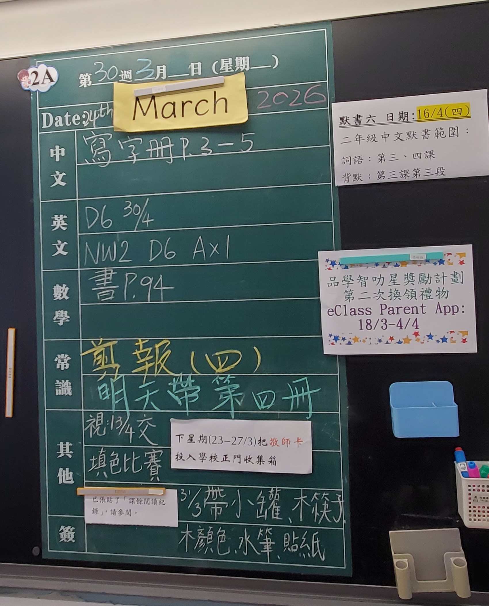 | 2A | 星期一 | 星期二 | 星期三 | 星期四 | 星期五 |