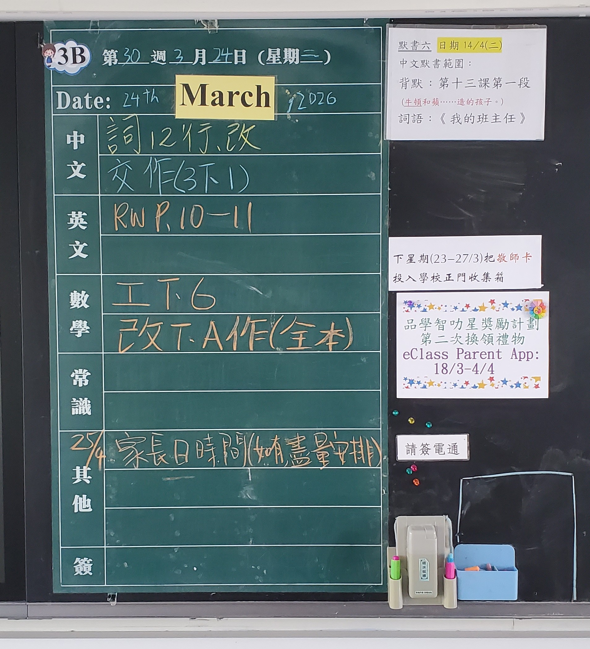 | 3B | 星期一 | 星期二 | 星期三 | 星期四 | 星期五 |