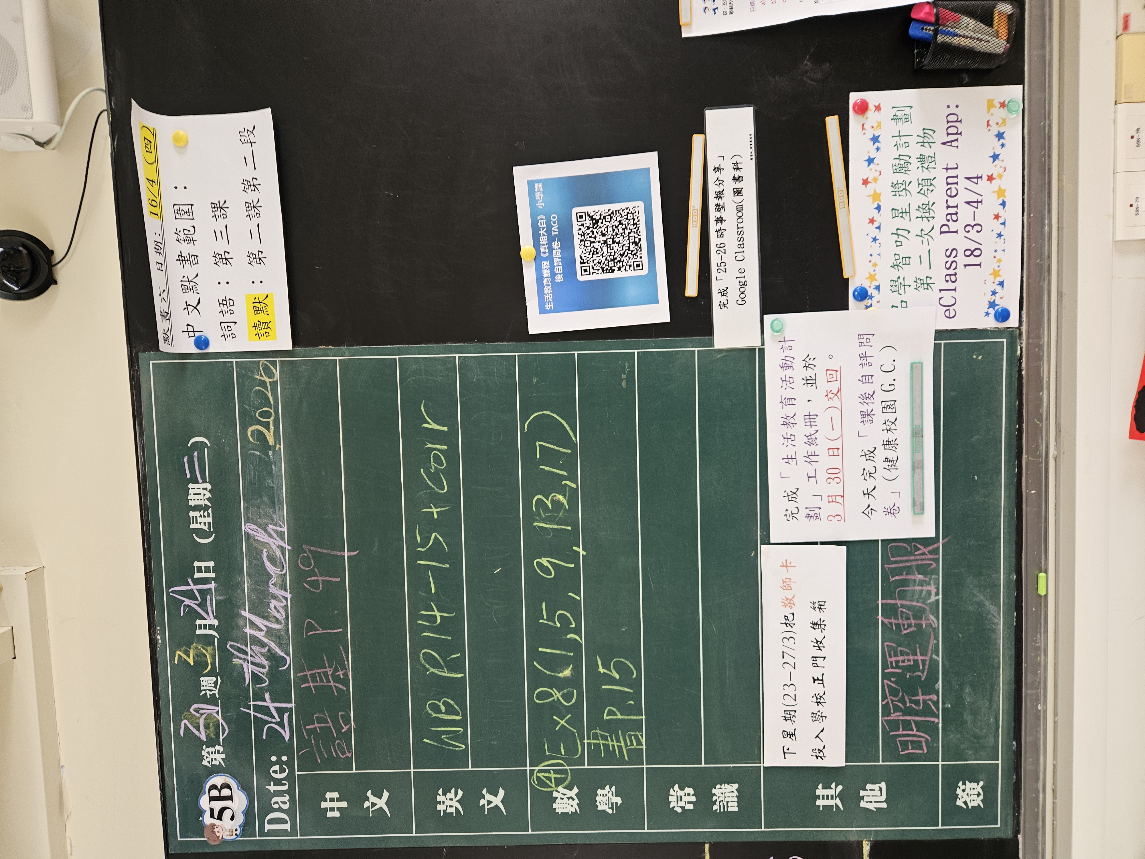 | 5B | 星期一 | 星期二 | 星期三 | 星期四 | 星期五 |