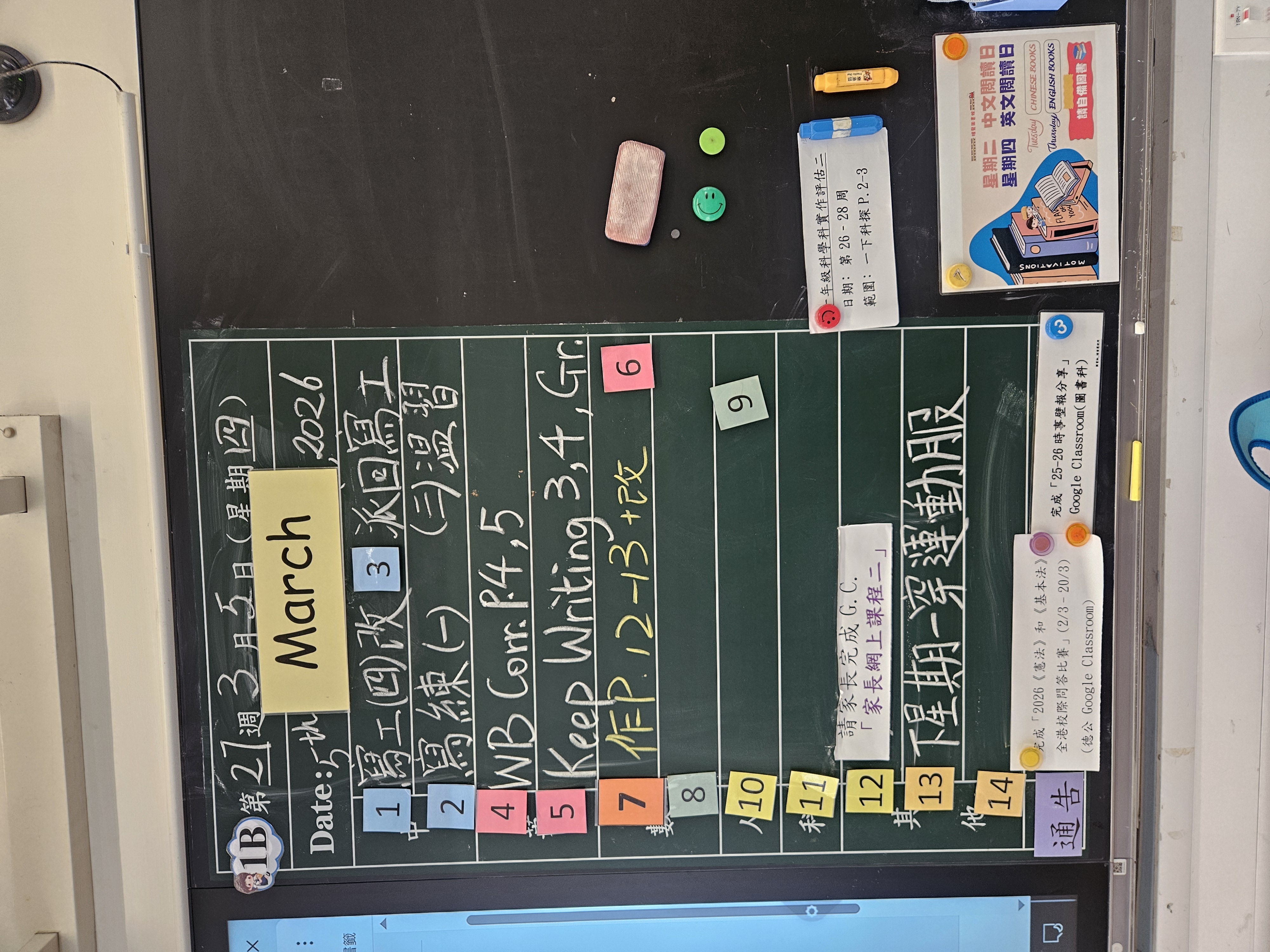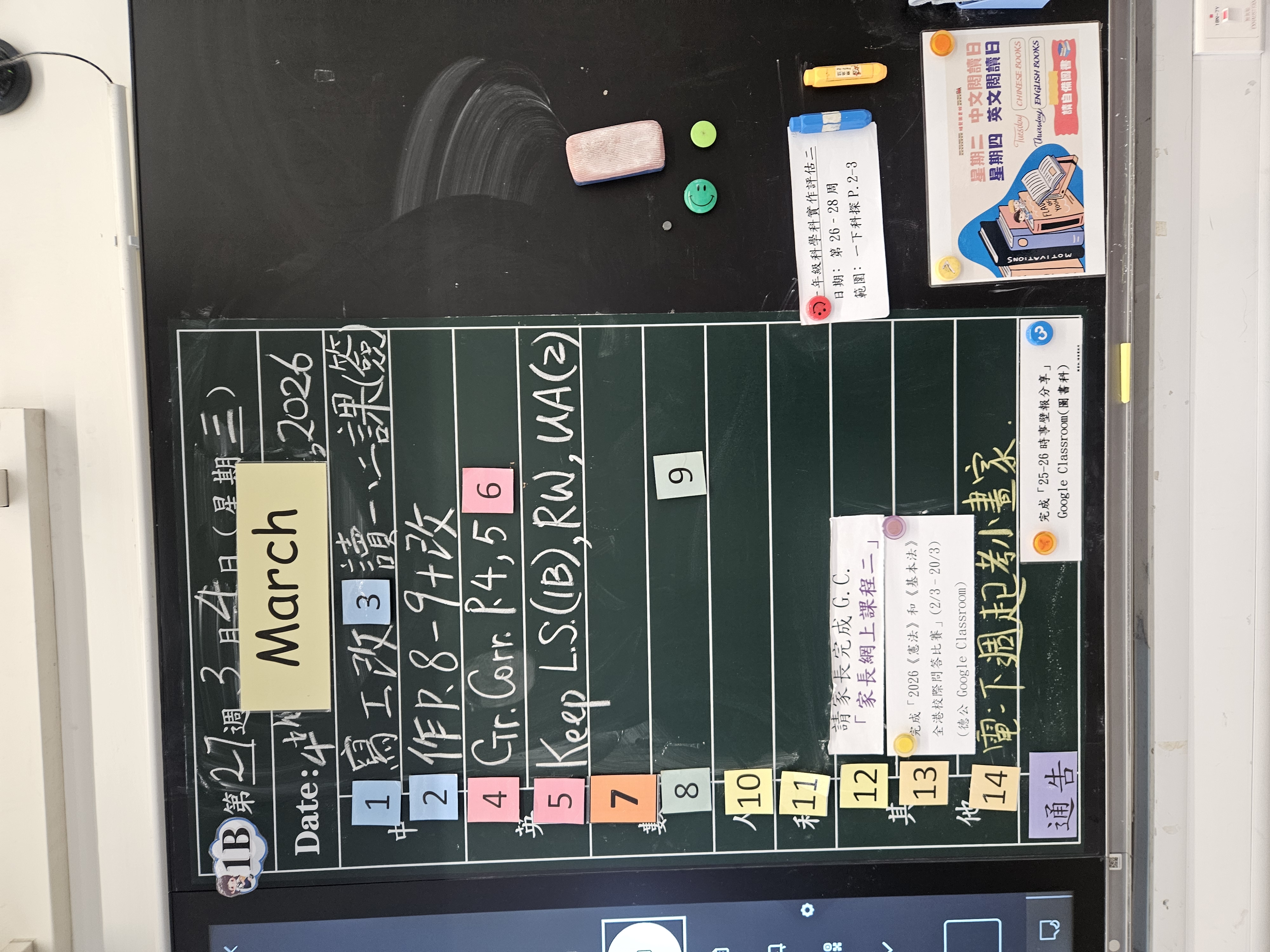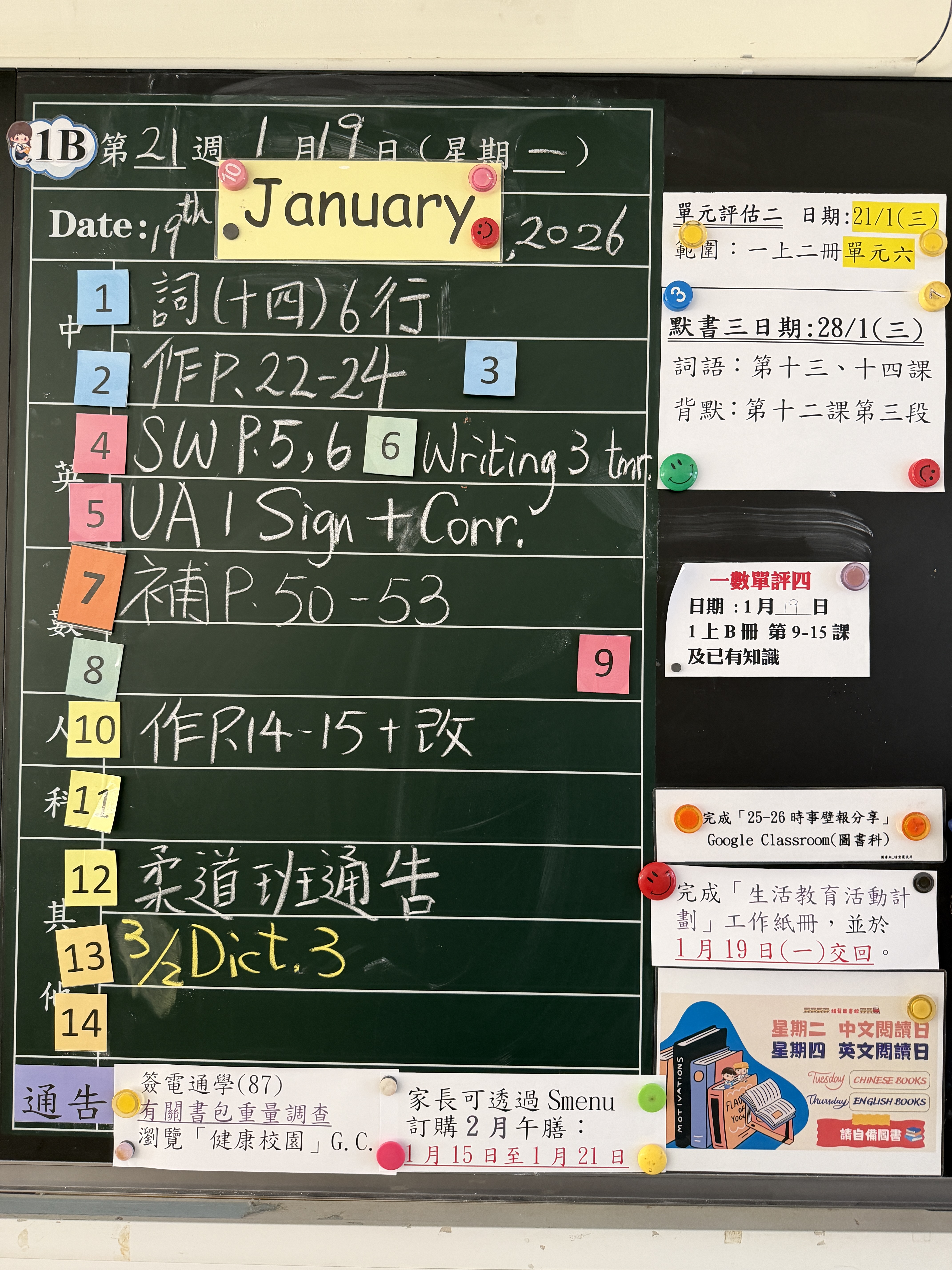 | 1B | 星期一 | 星期二 | 星期三 | 星期四 | 星期五 |