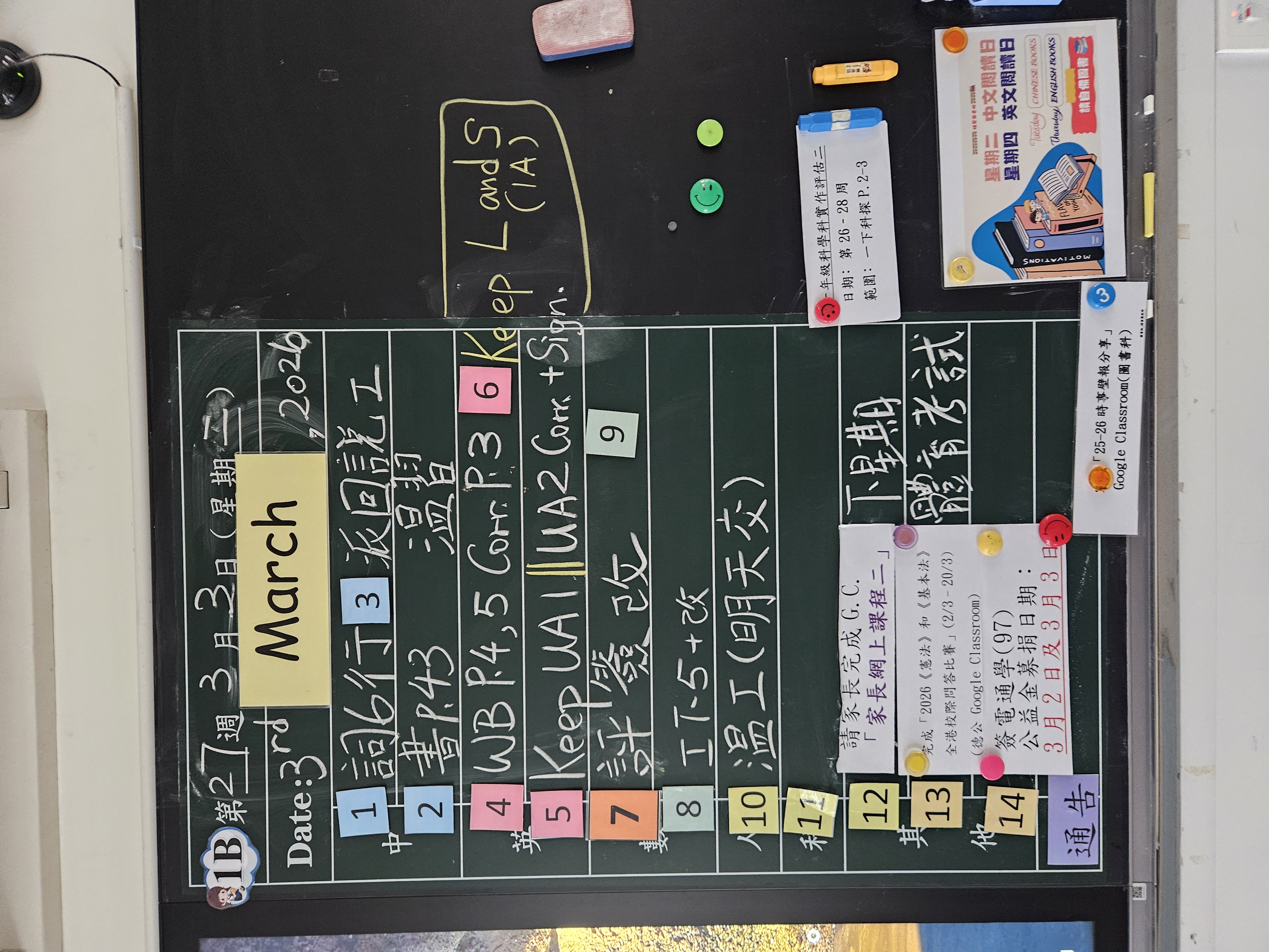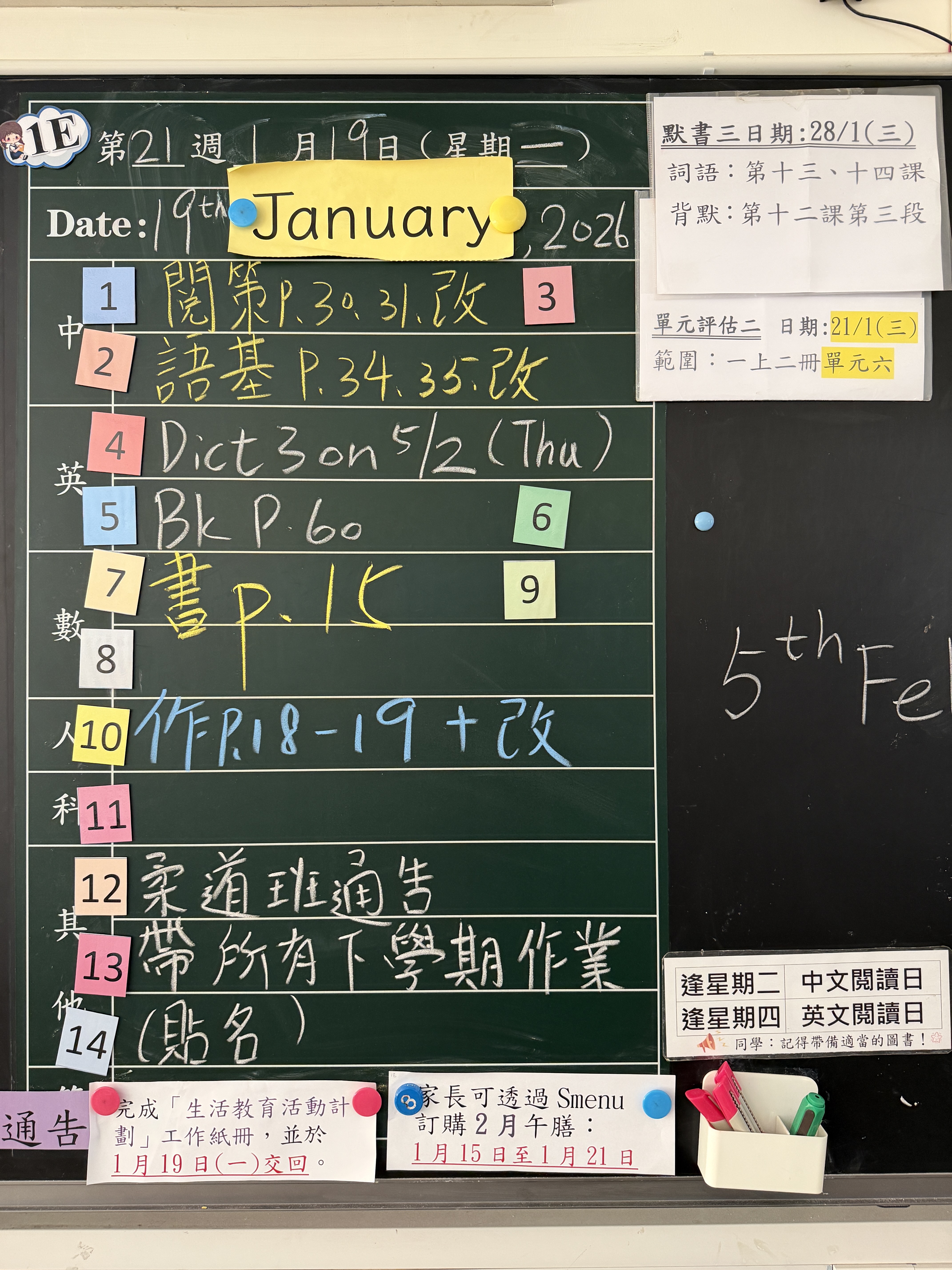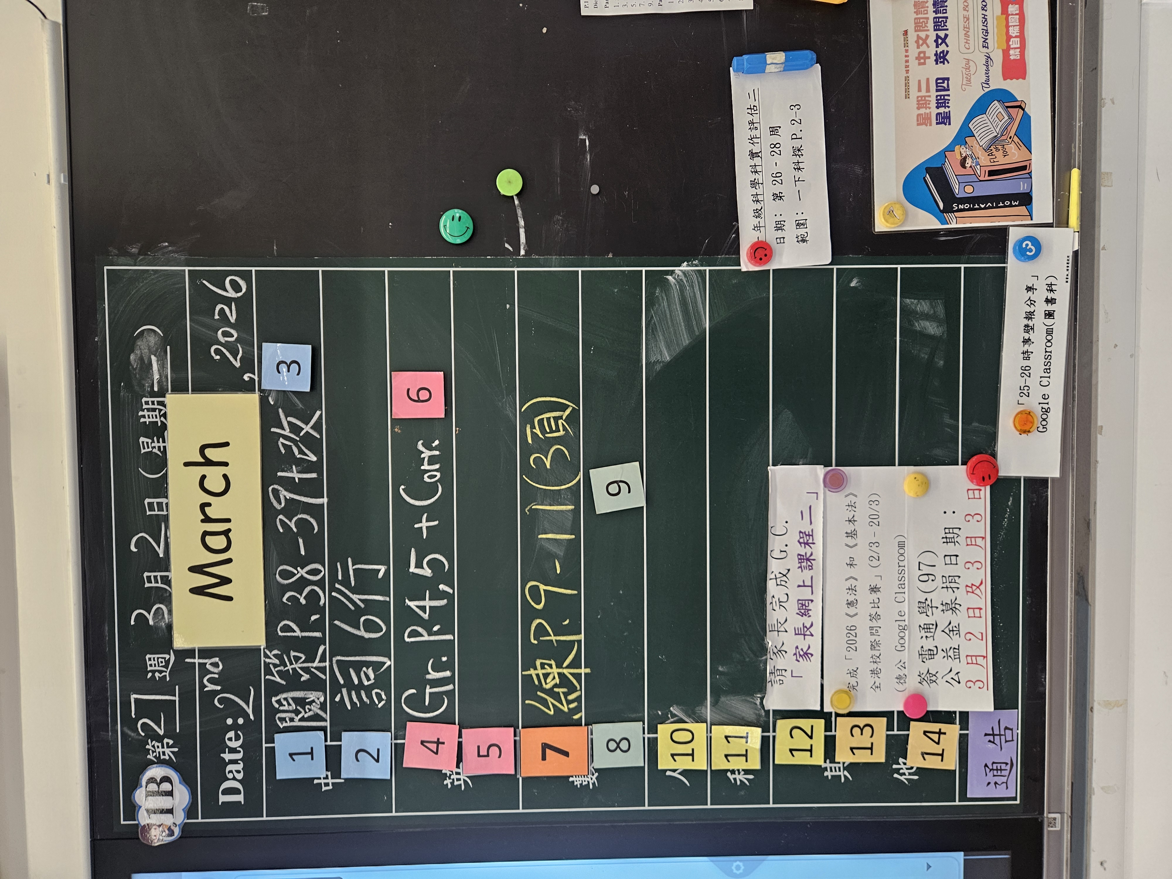 | 1B | 星期一 | 星期二 | 星期三 | 星期四 | 星期五 |