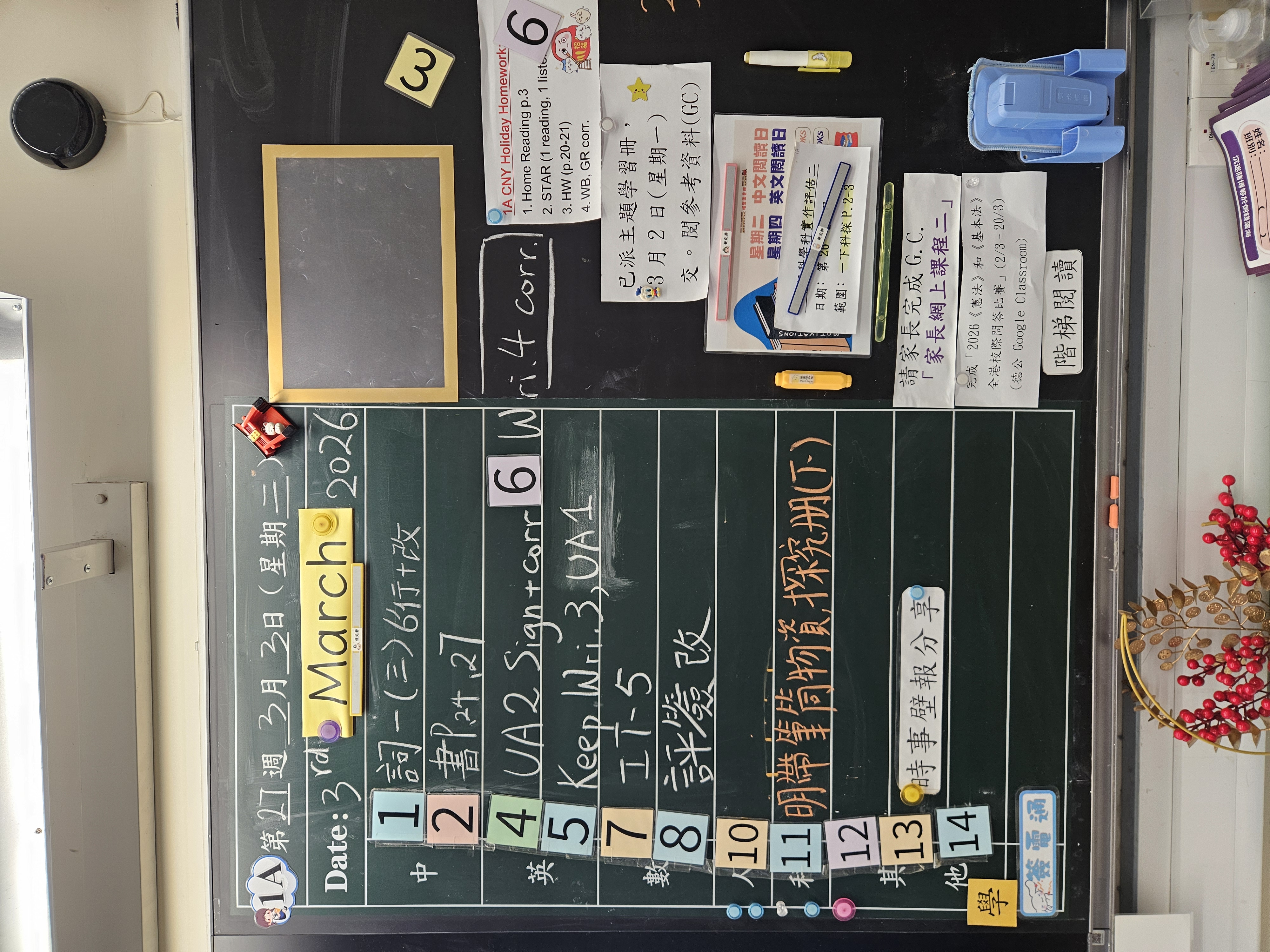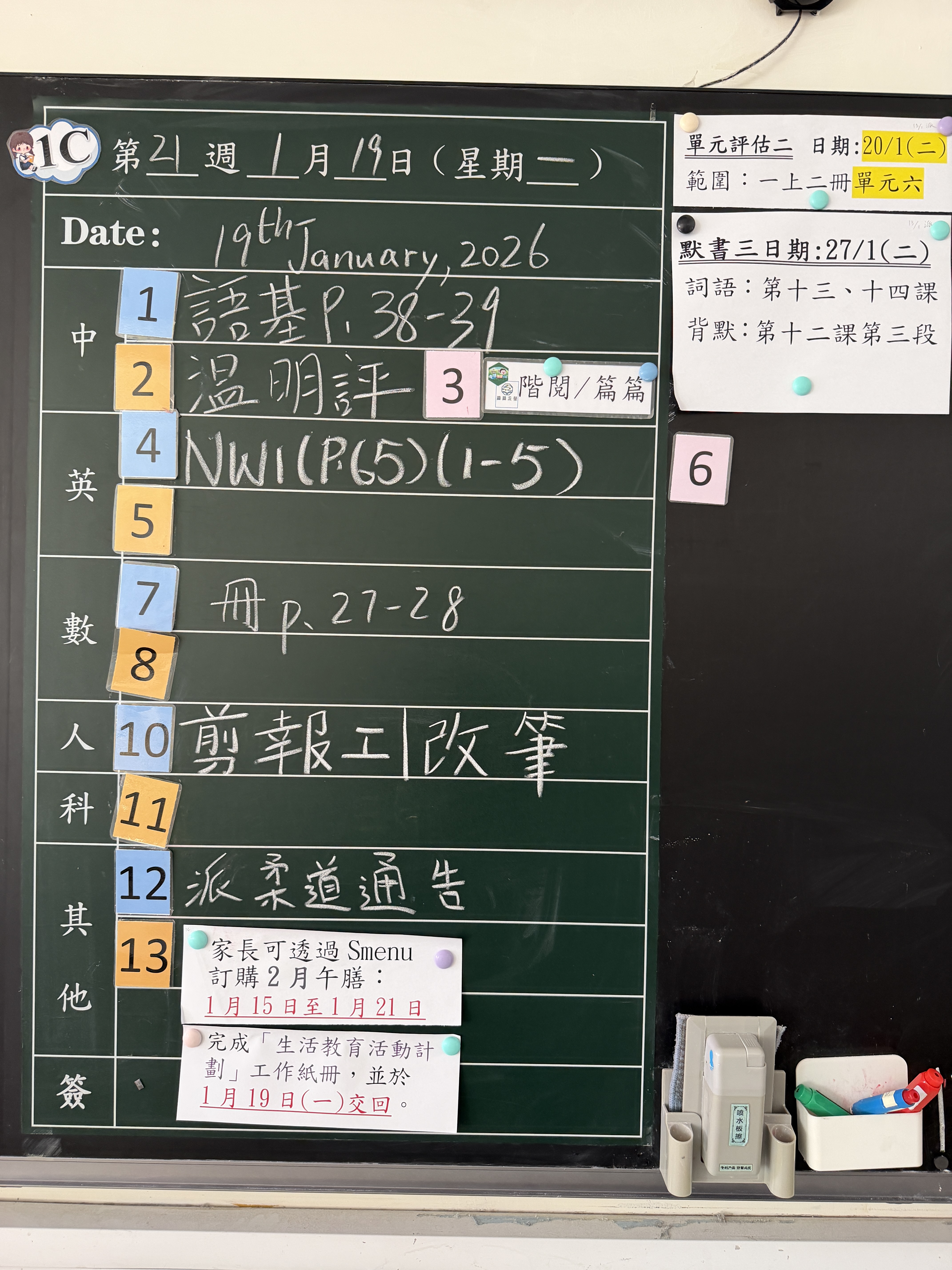 | 1A | 星期一 | 星期二 | 星期三 | 星期四 | 星期五 |