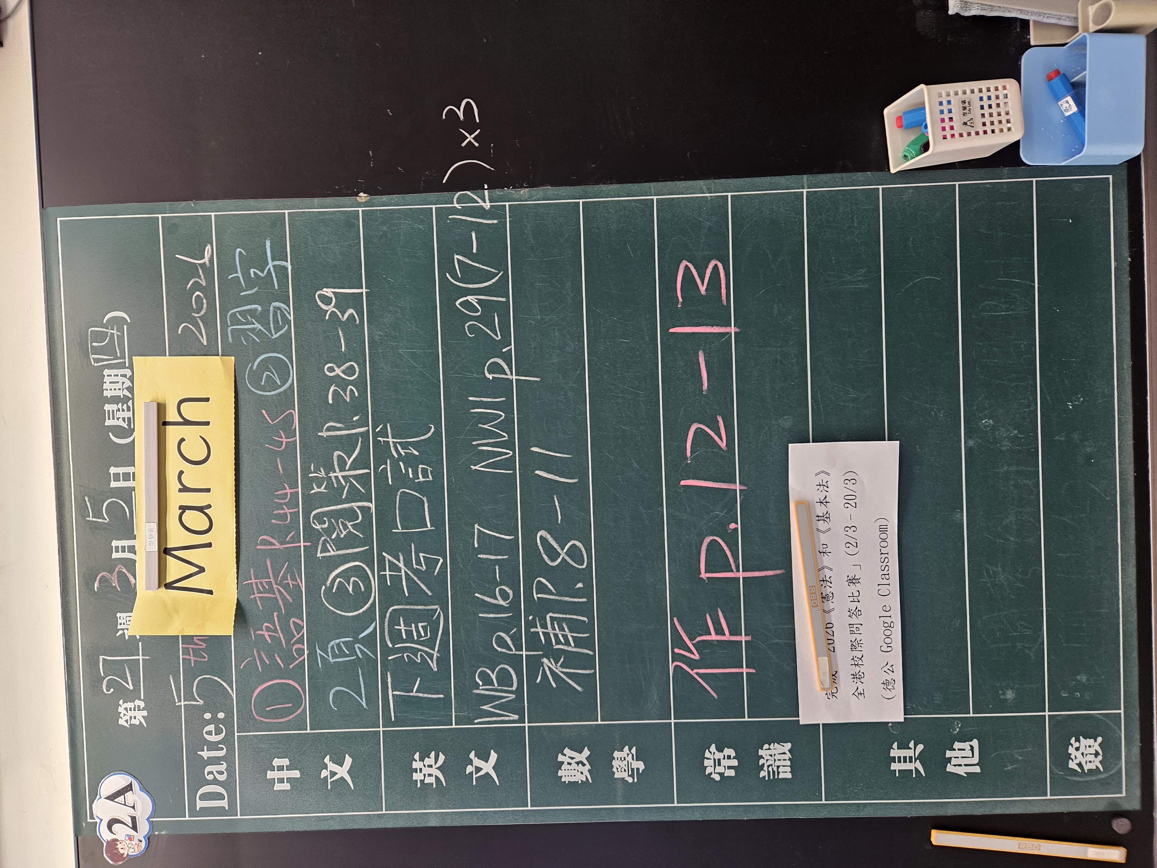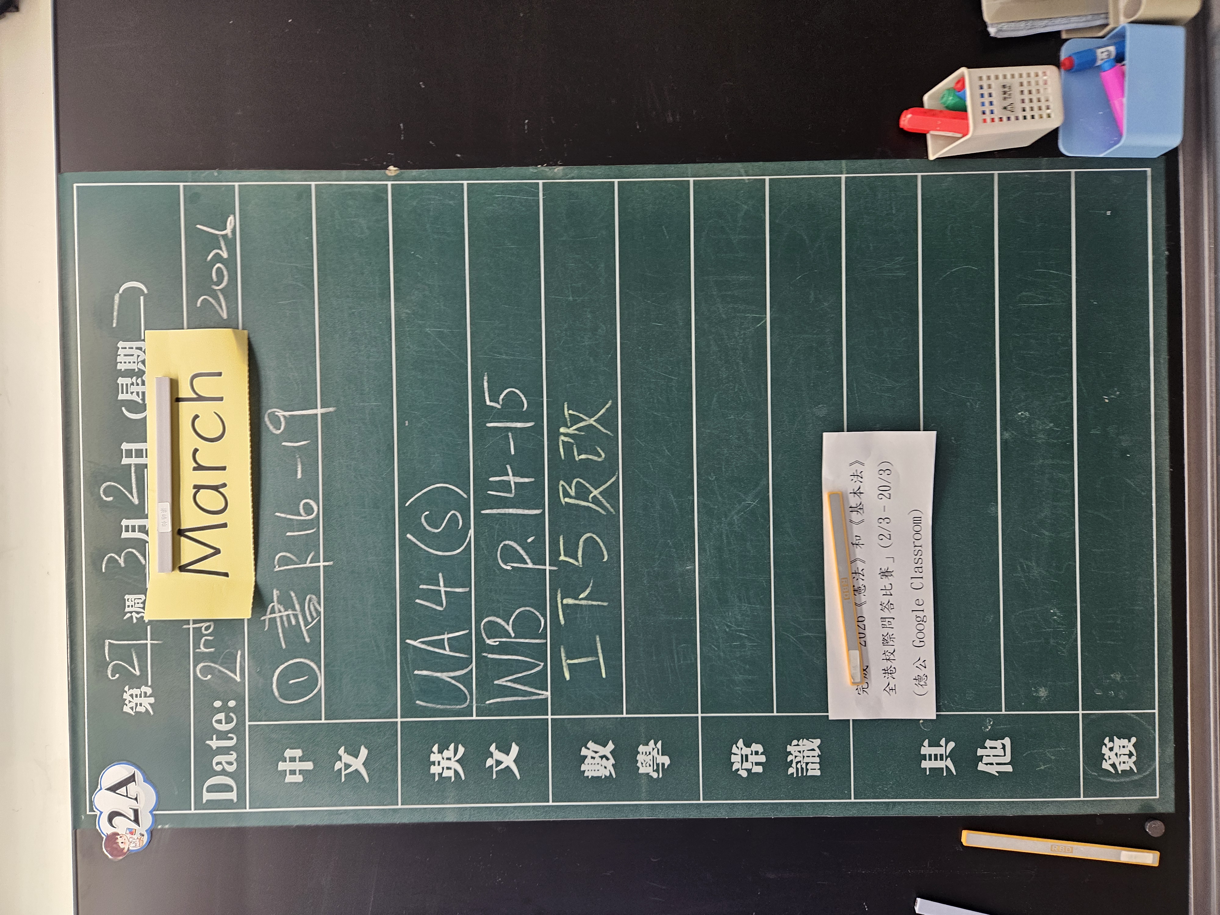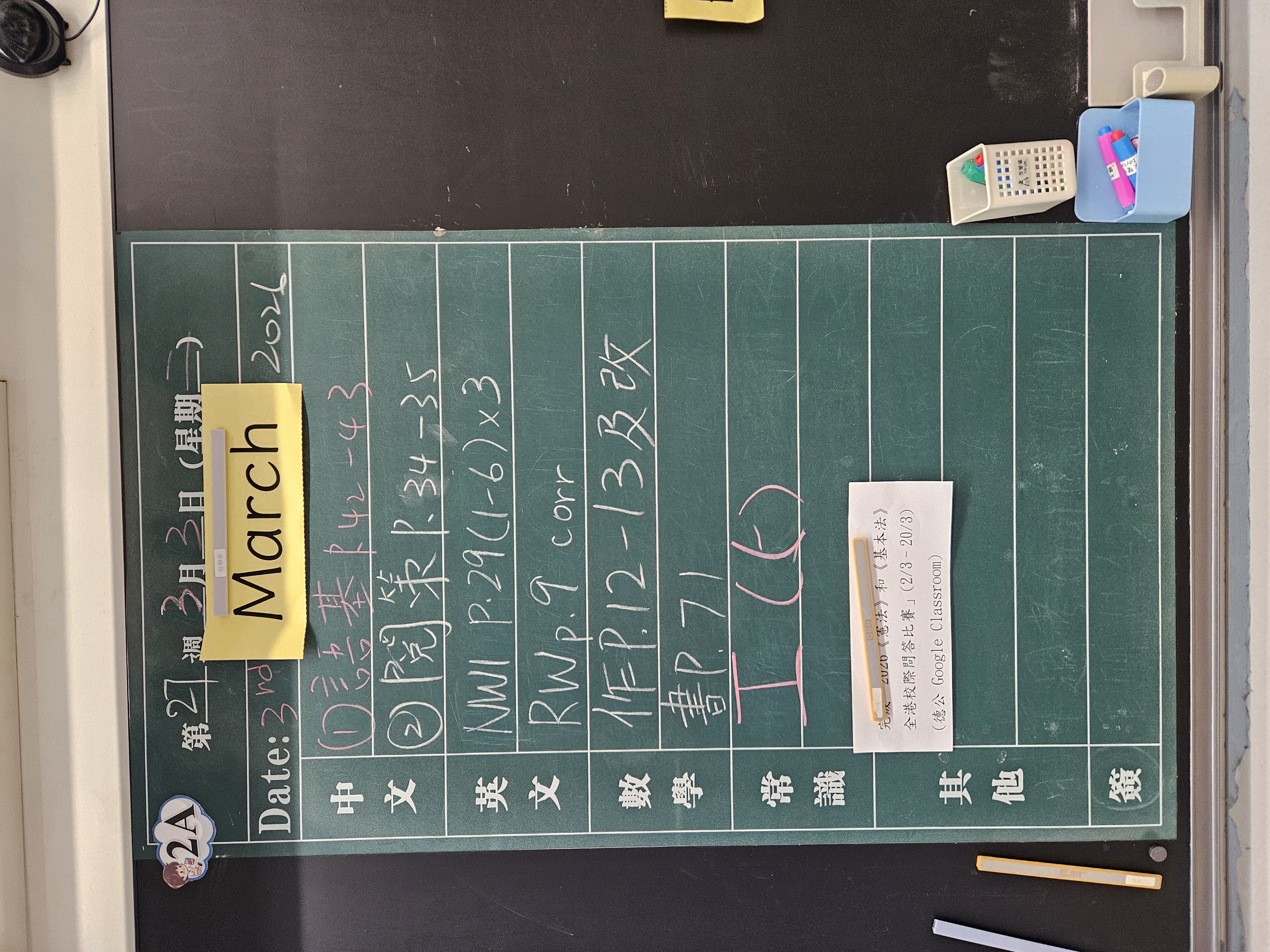 | 2A | 星期一 | 星期二 | 星期三 | 星期四 | 星期五 |
