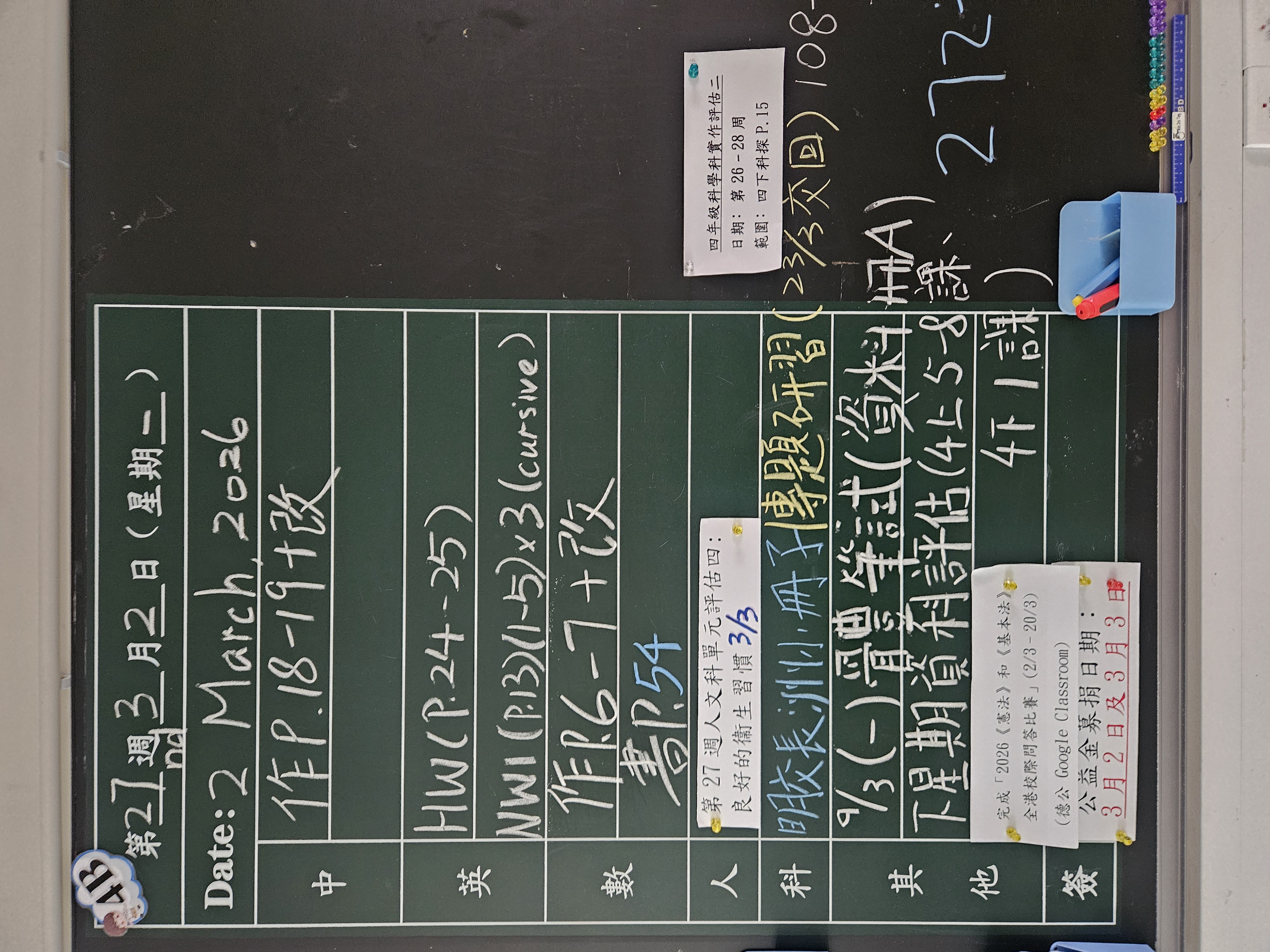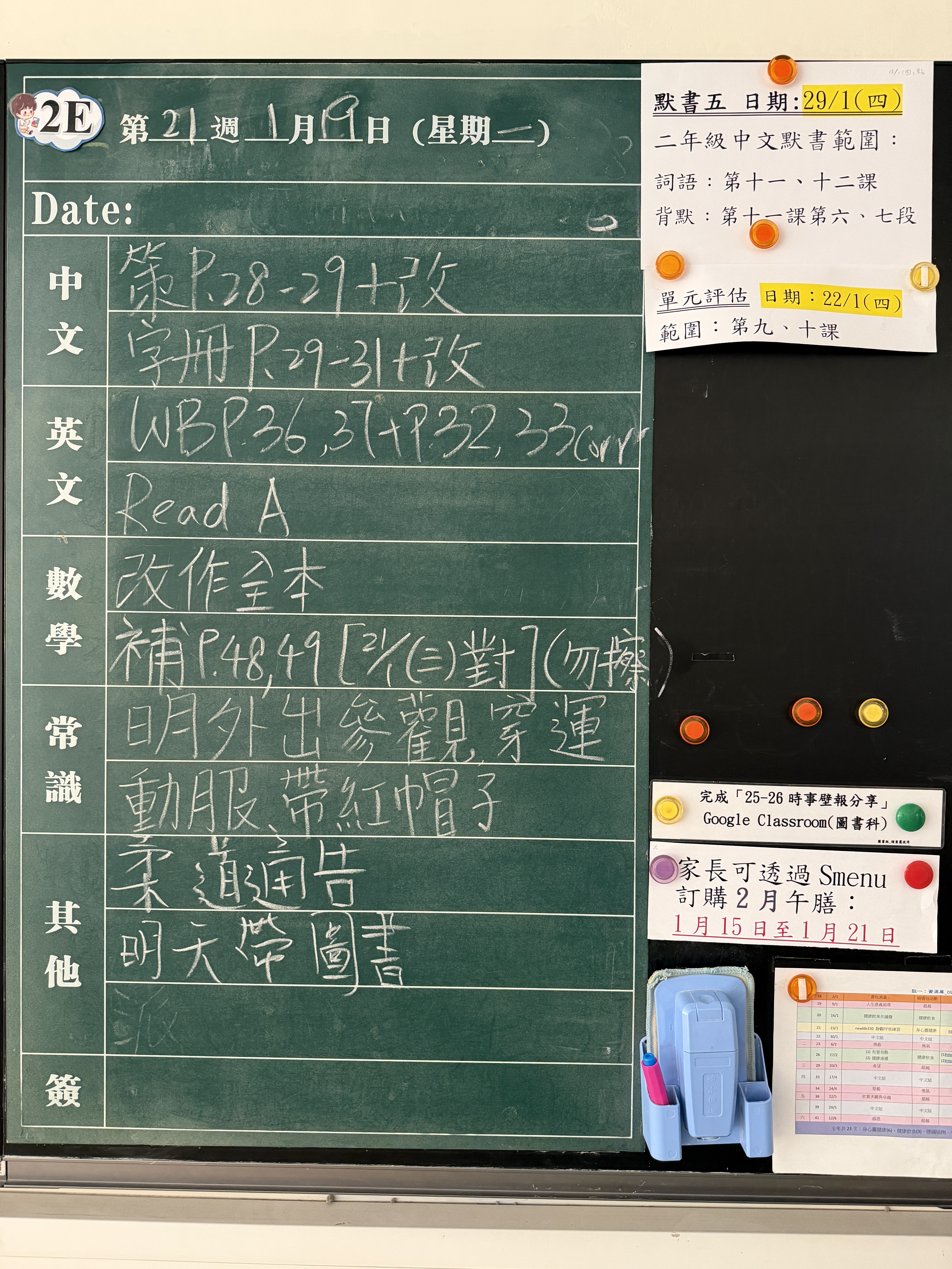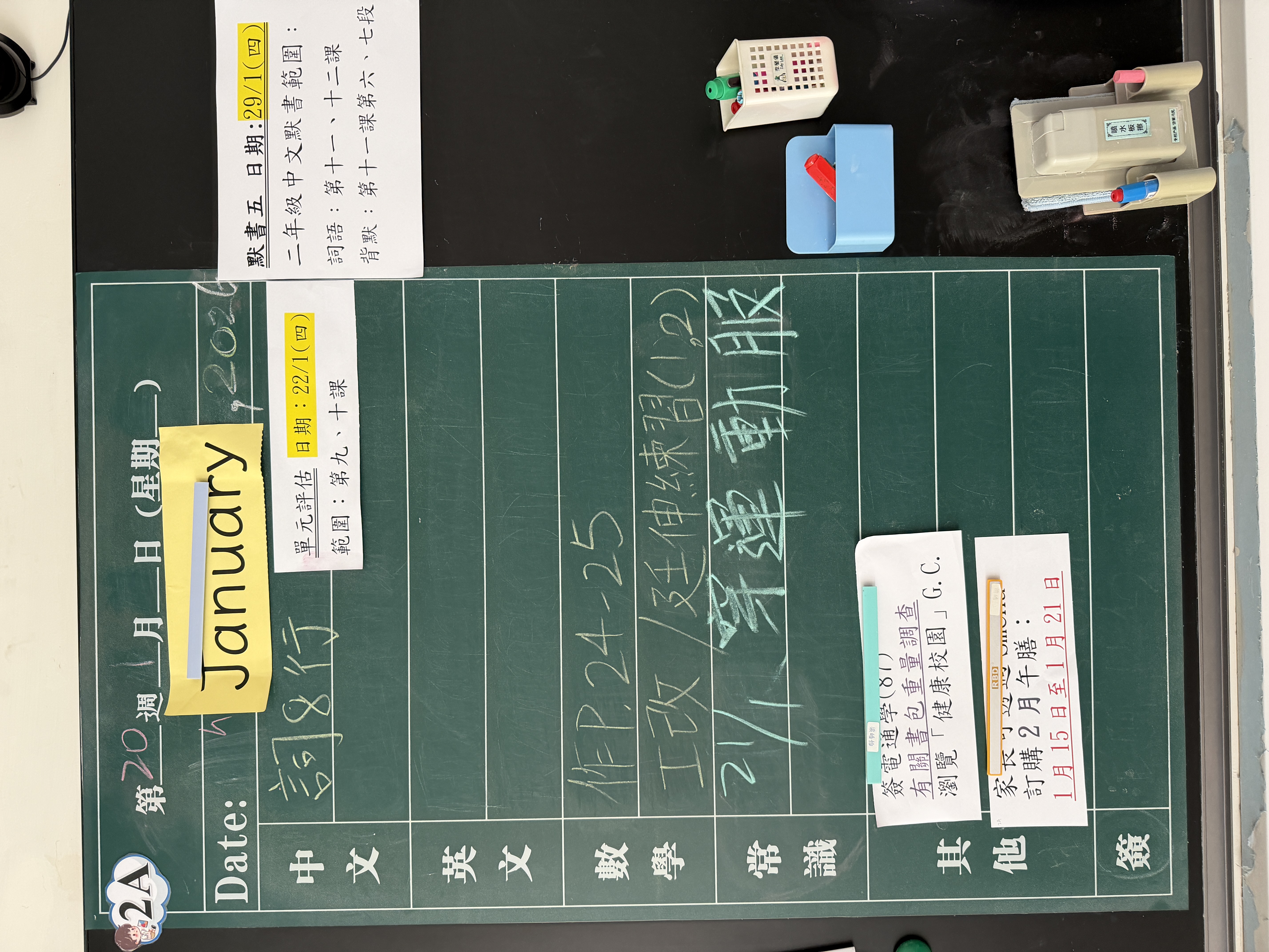 | 2A | 星期一 | 星期二 | 星期三 | 星期四 | 星期五 |