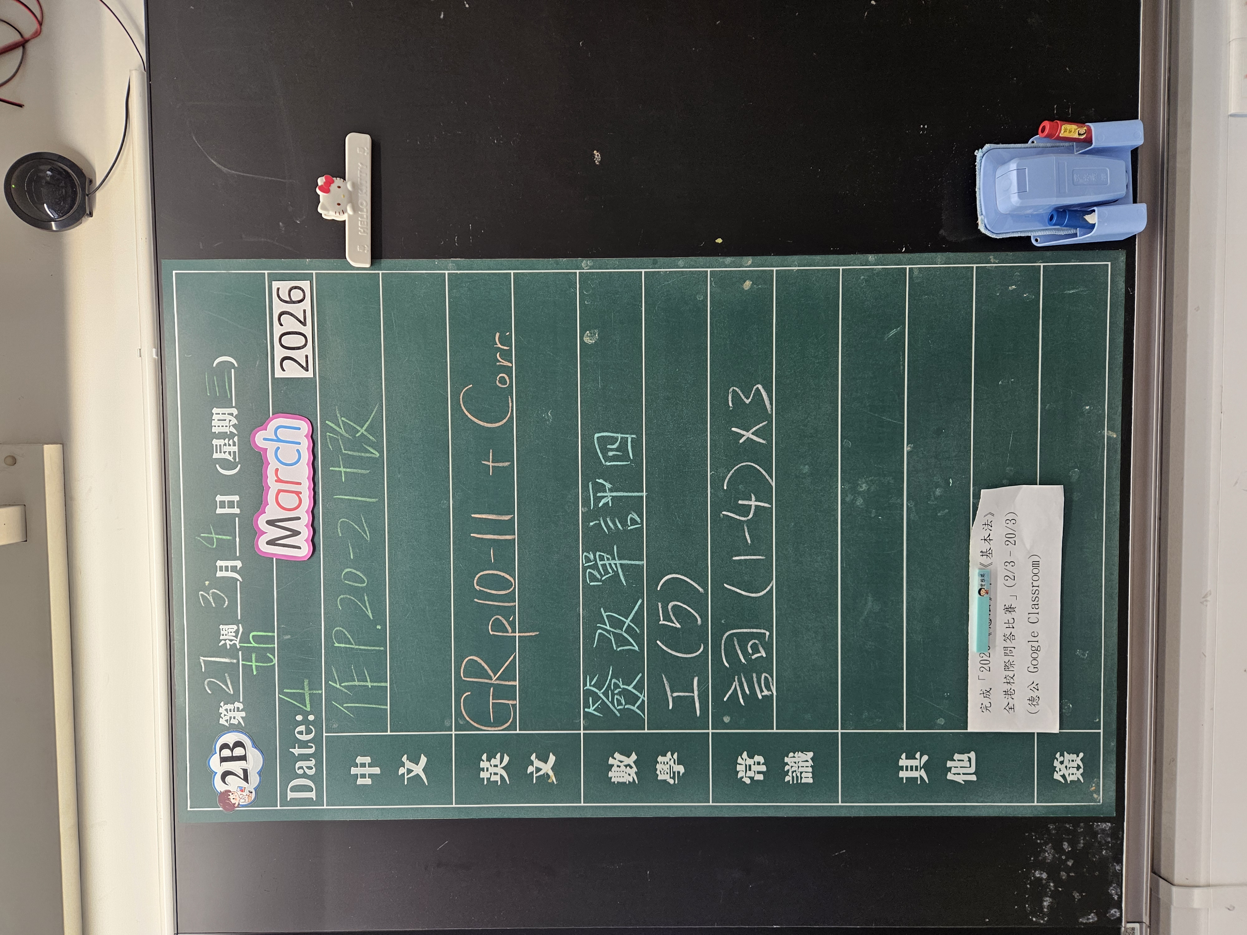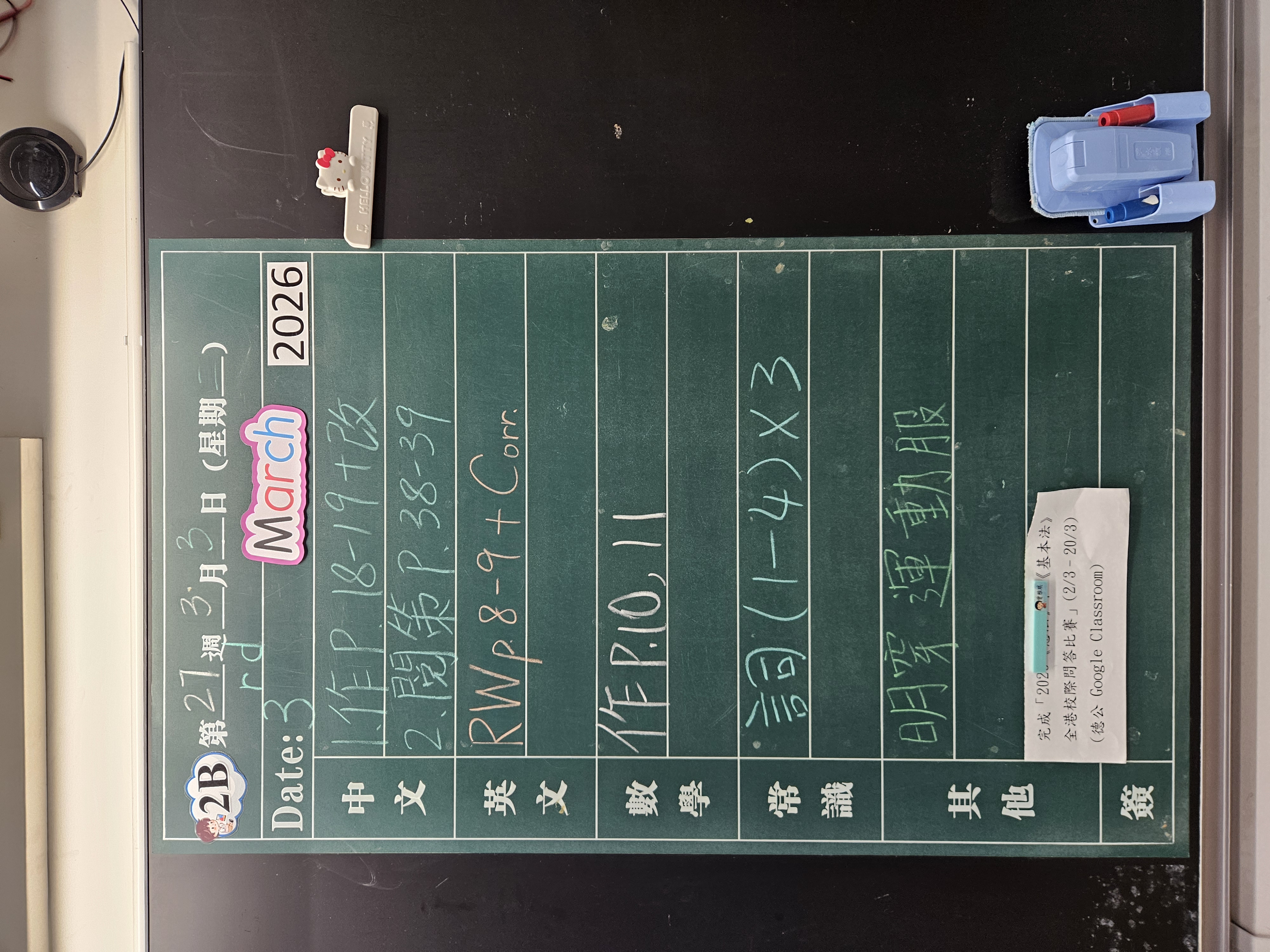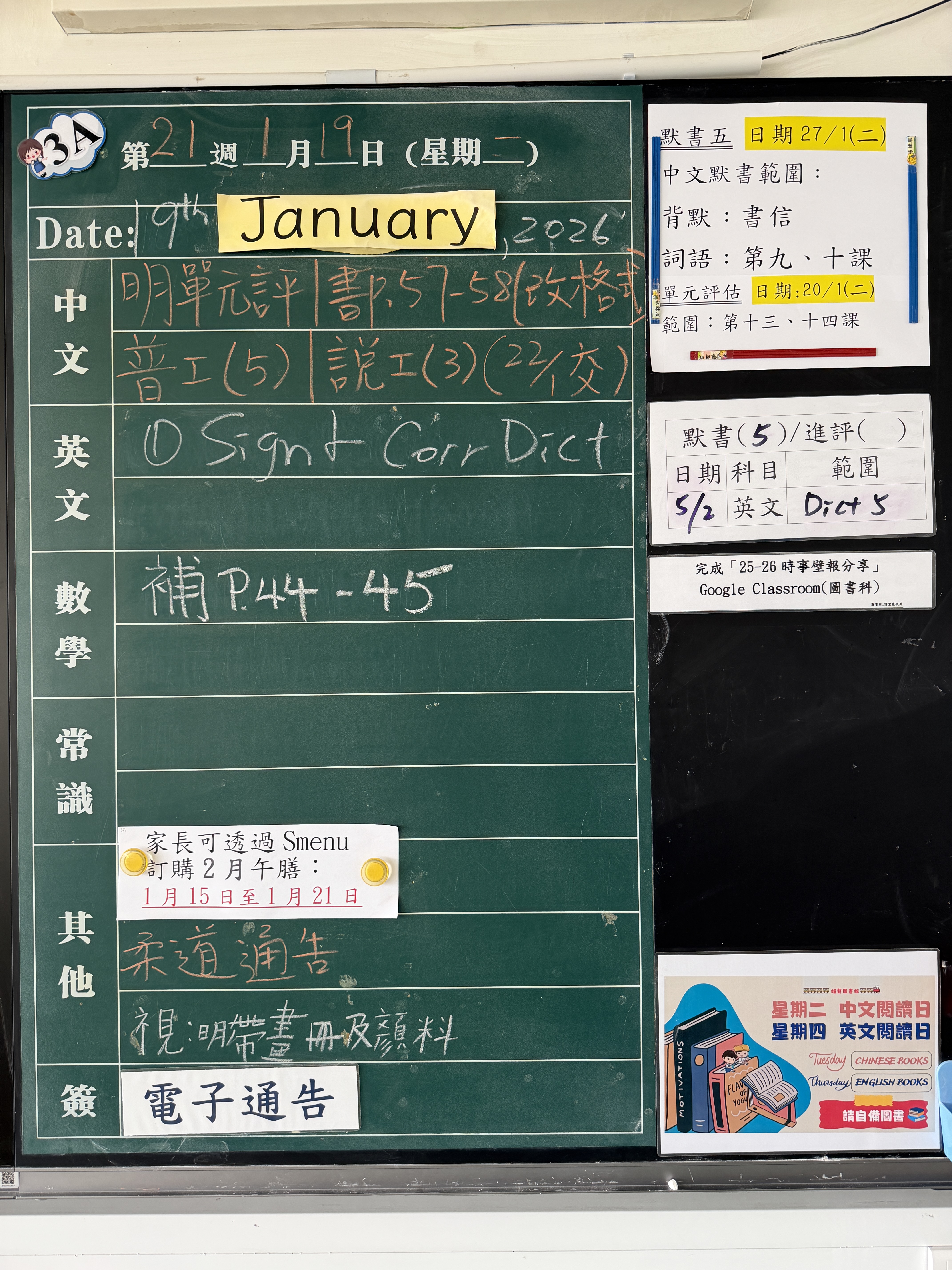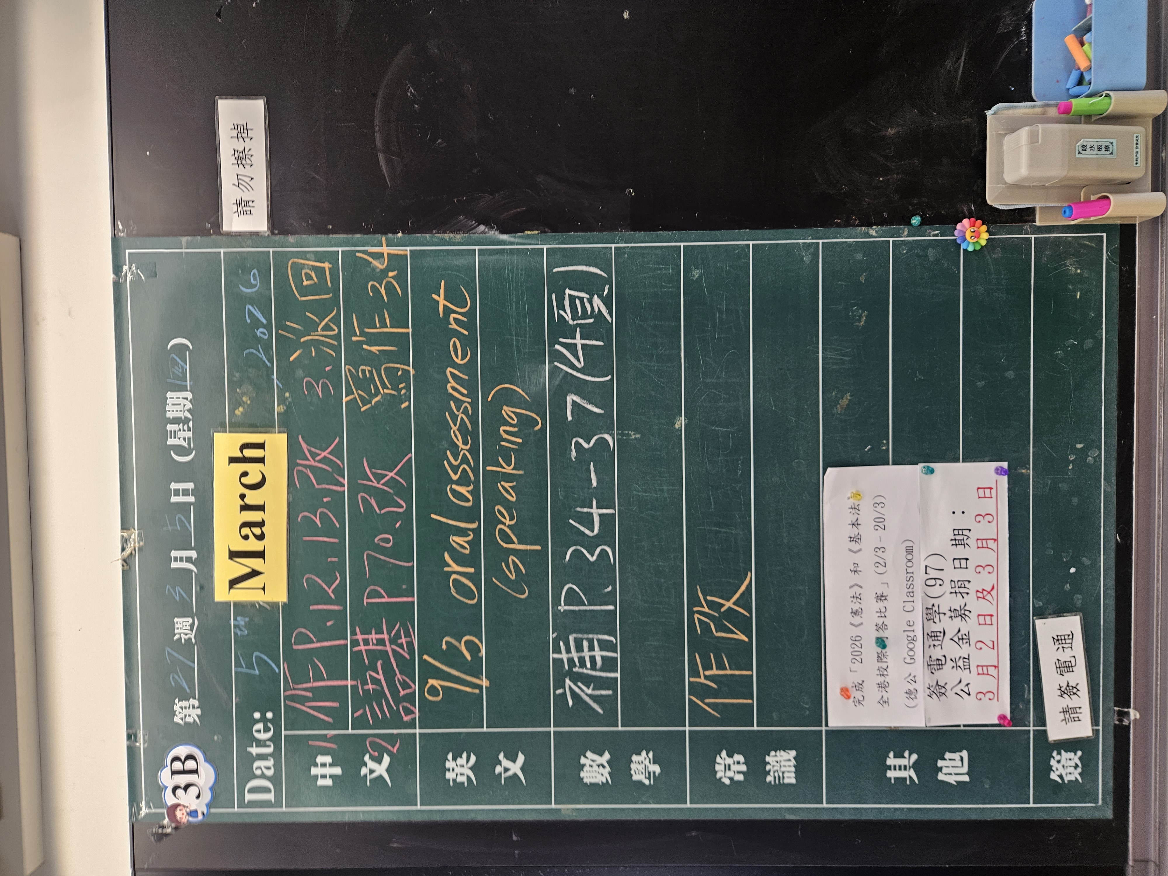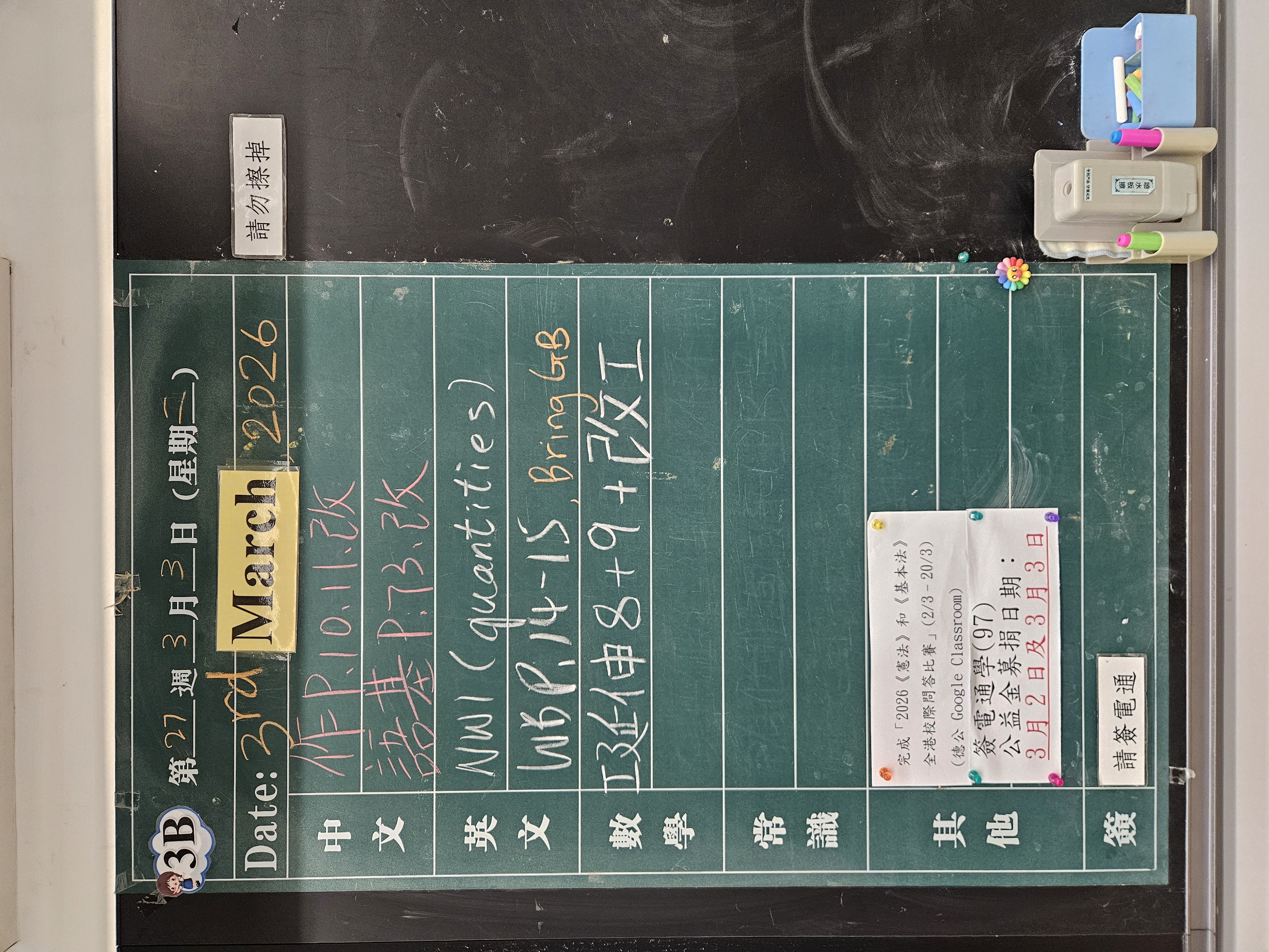 | 3B | 星期一 | 星期二 | 星期三 | 星期四 | 星期五 |