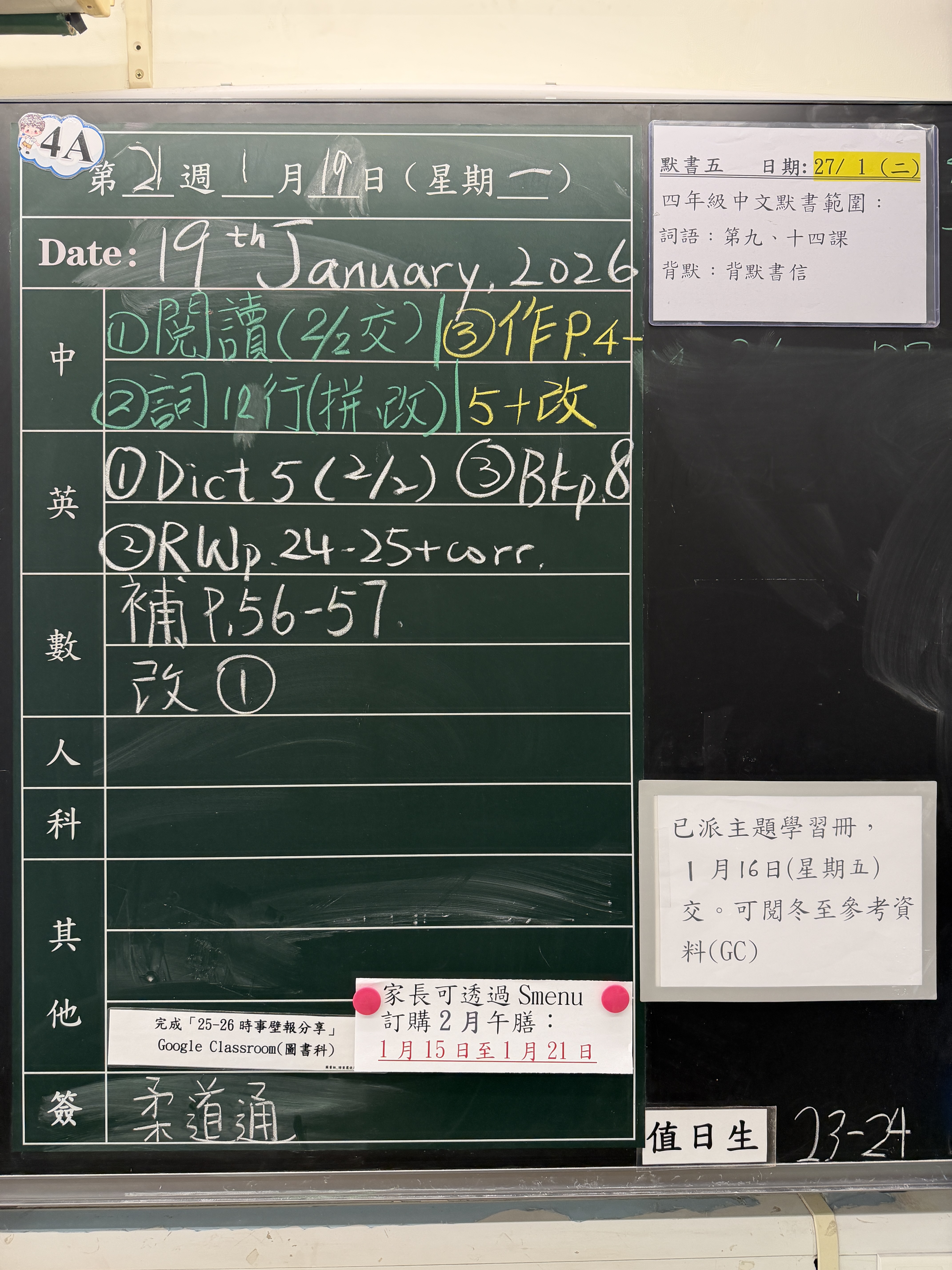 | 4A | 星期一 | 星期二 | 星期三 | 星期四 | 星期五 |