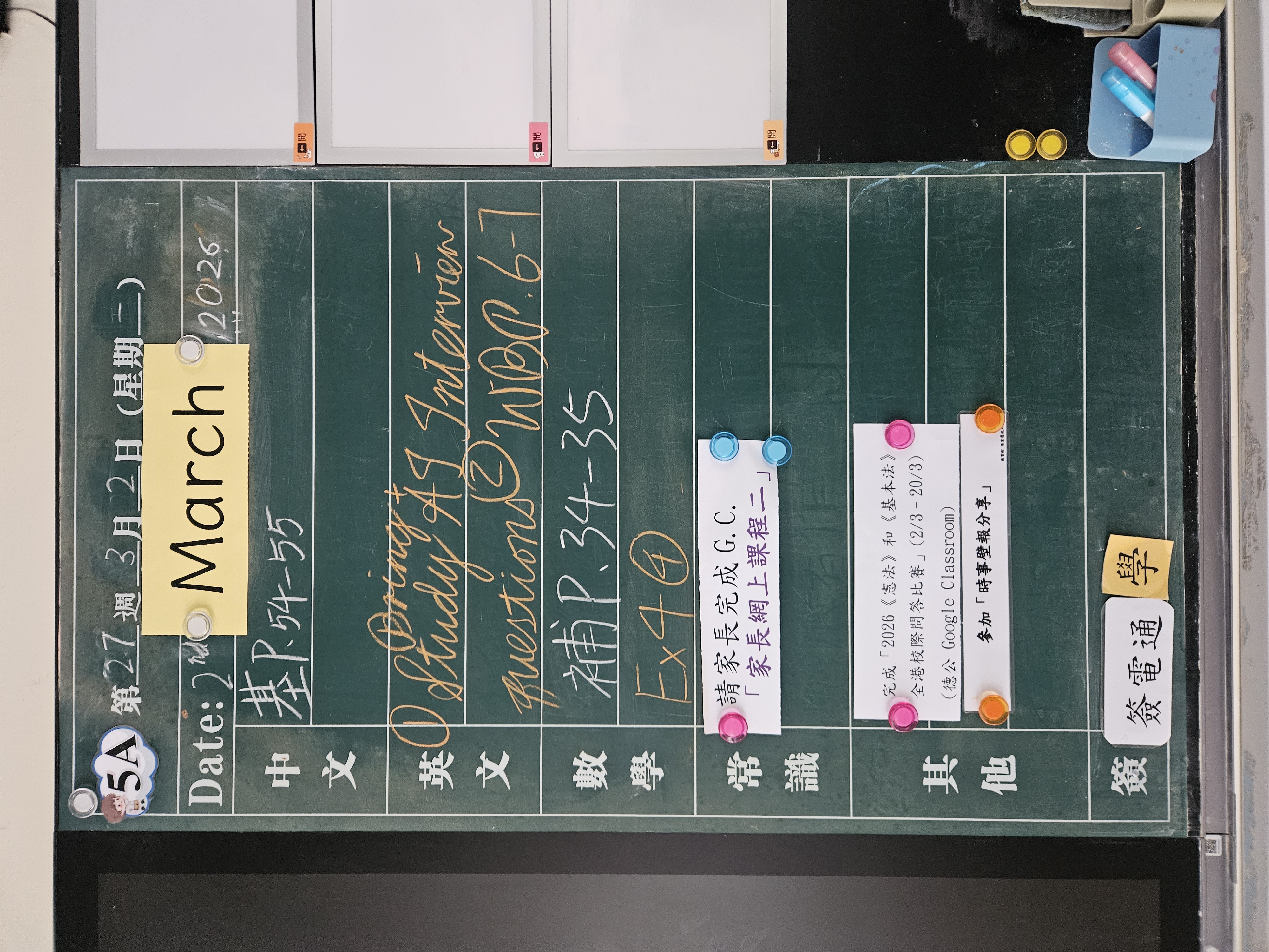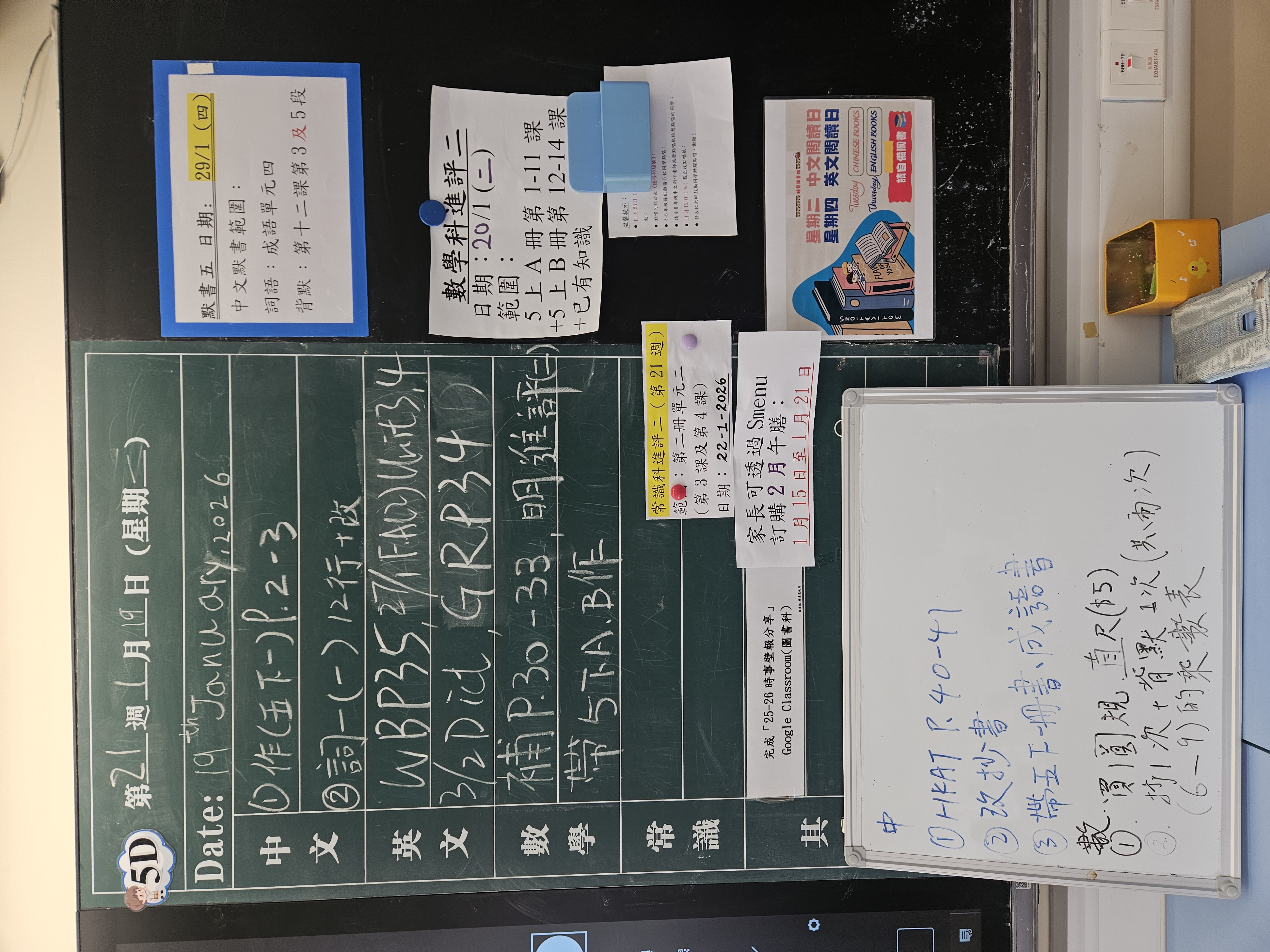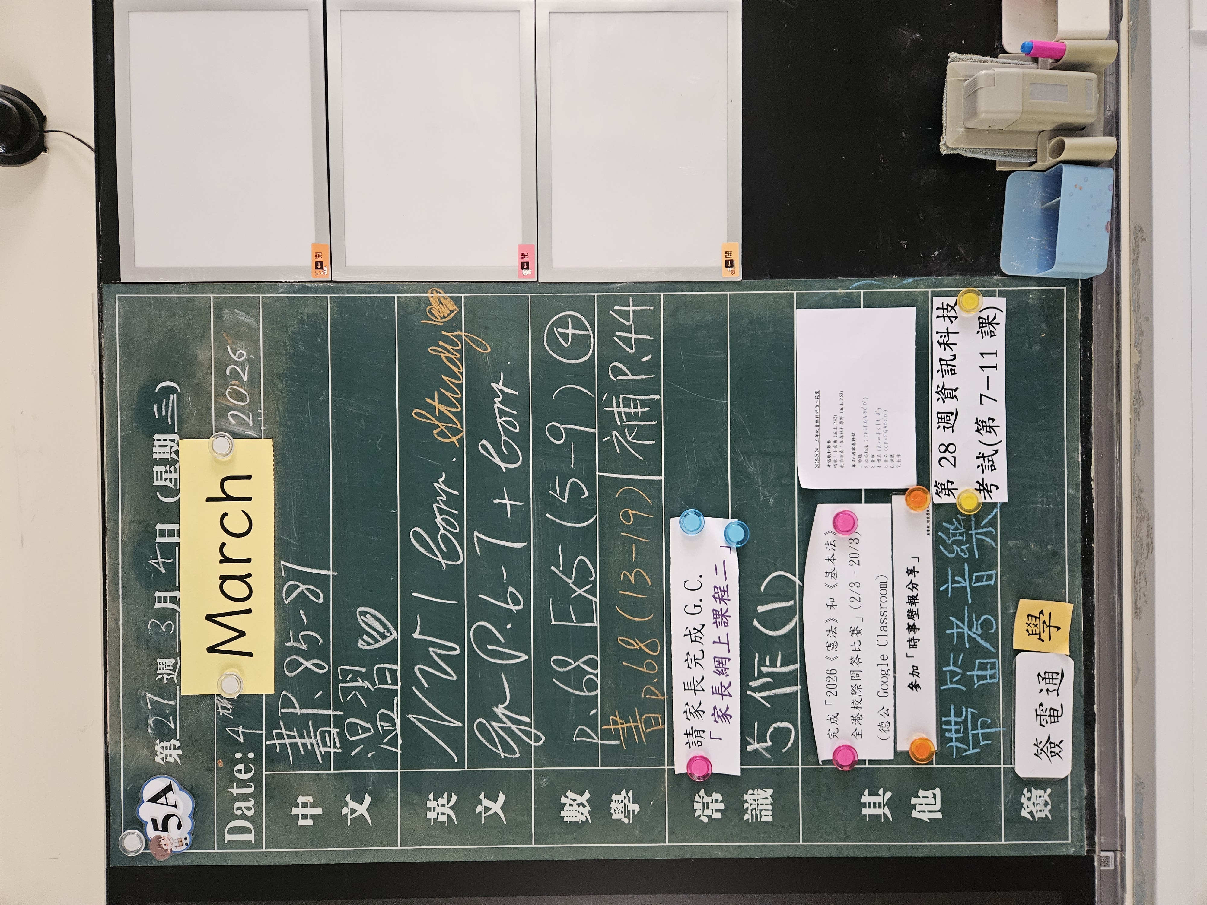 | 5A | 星期一 | 星期二 | 星期三 | 星期四 | 星期五 |