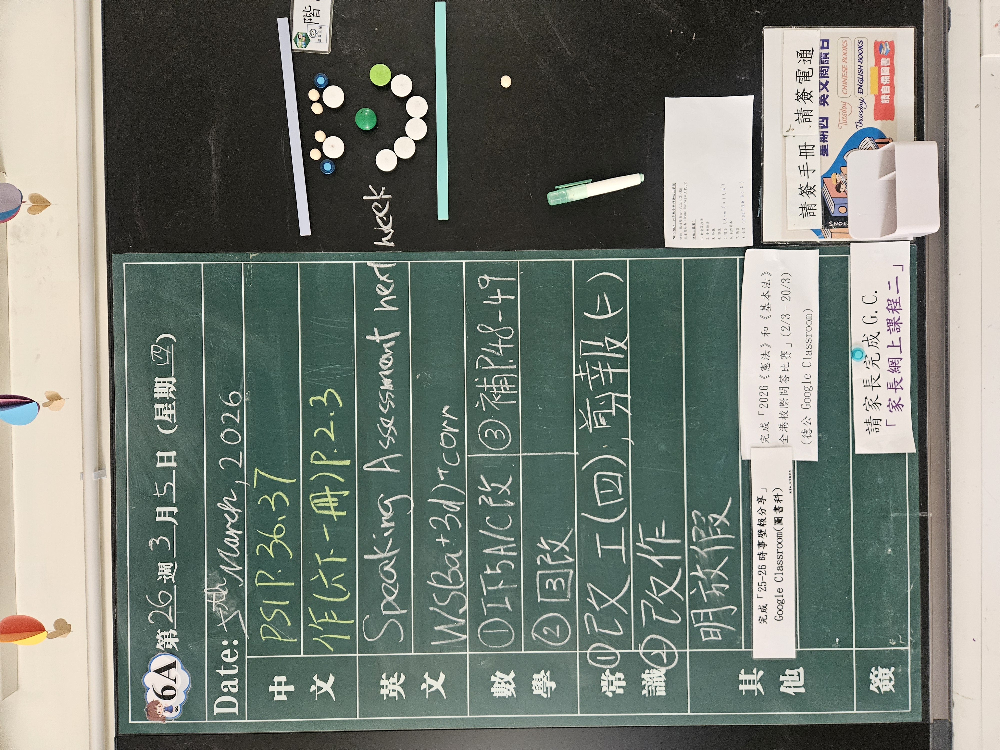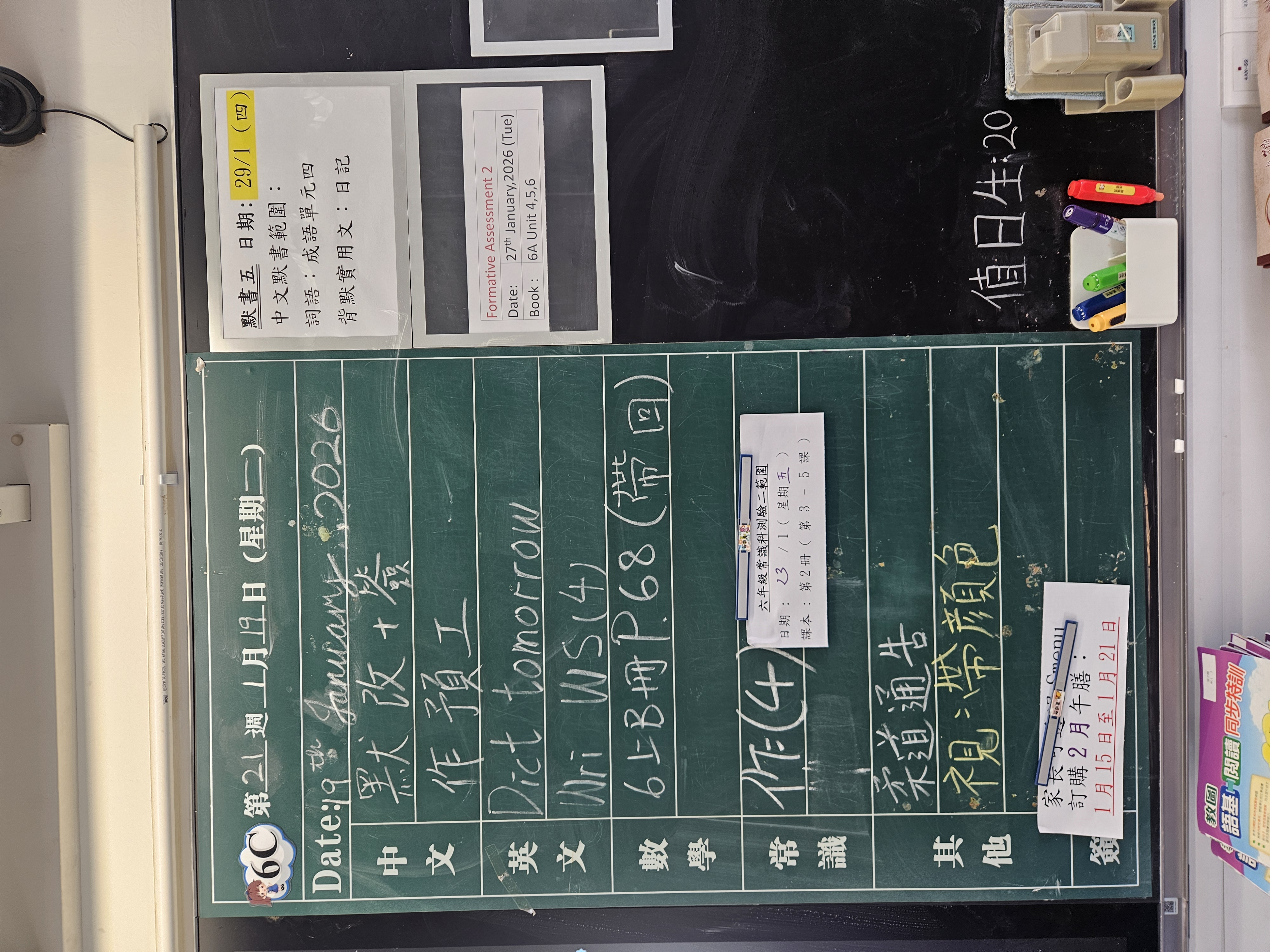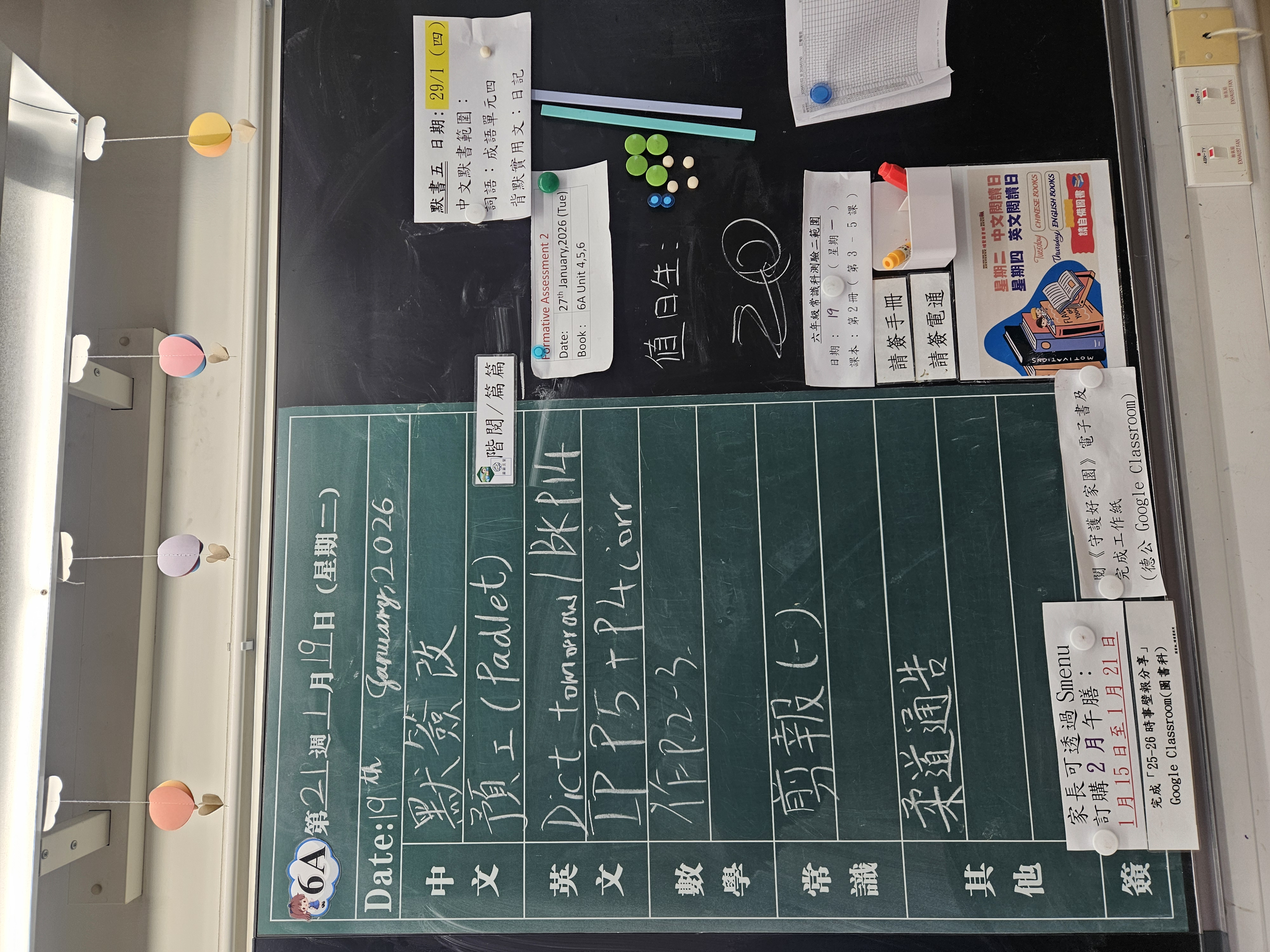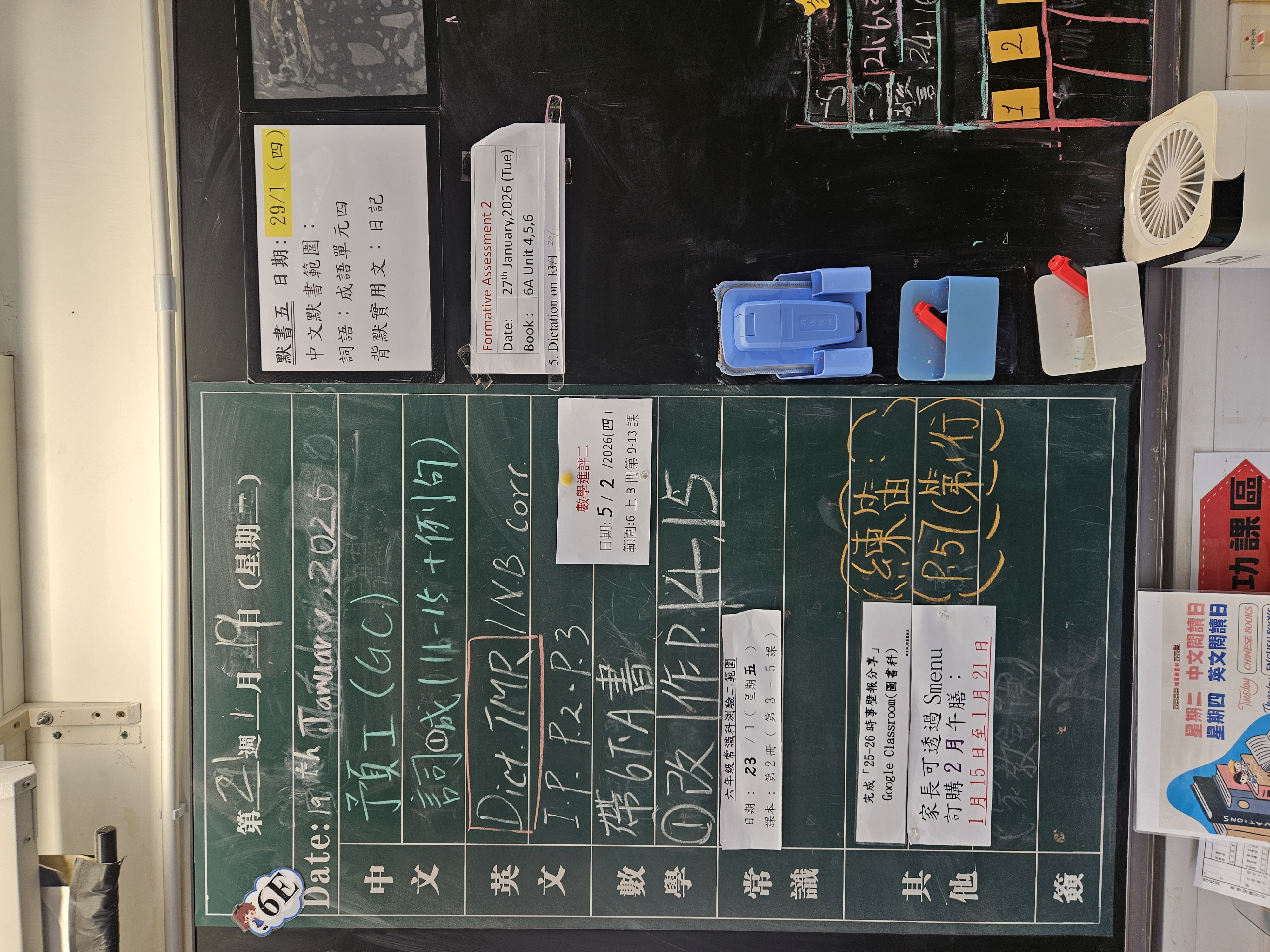 | 6A | 星期一 | 星期二 | 星期三 | 星期四 | 星期五 |