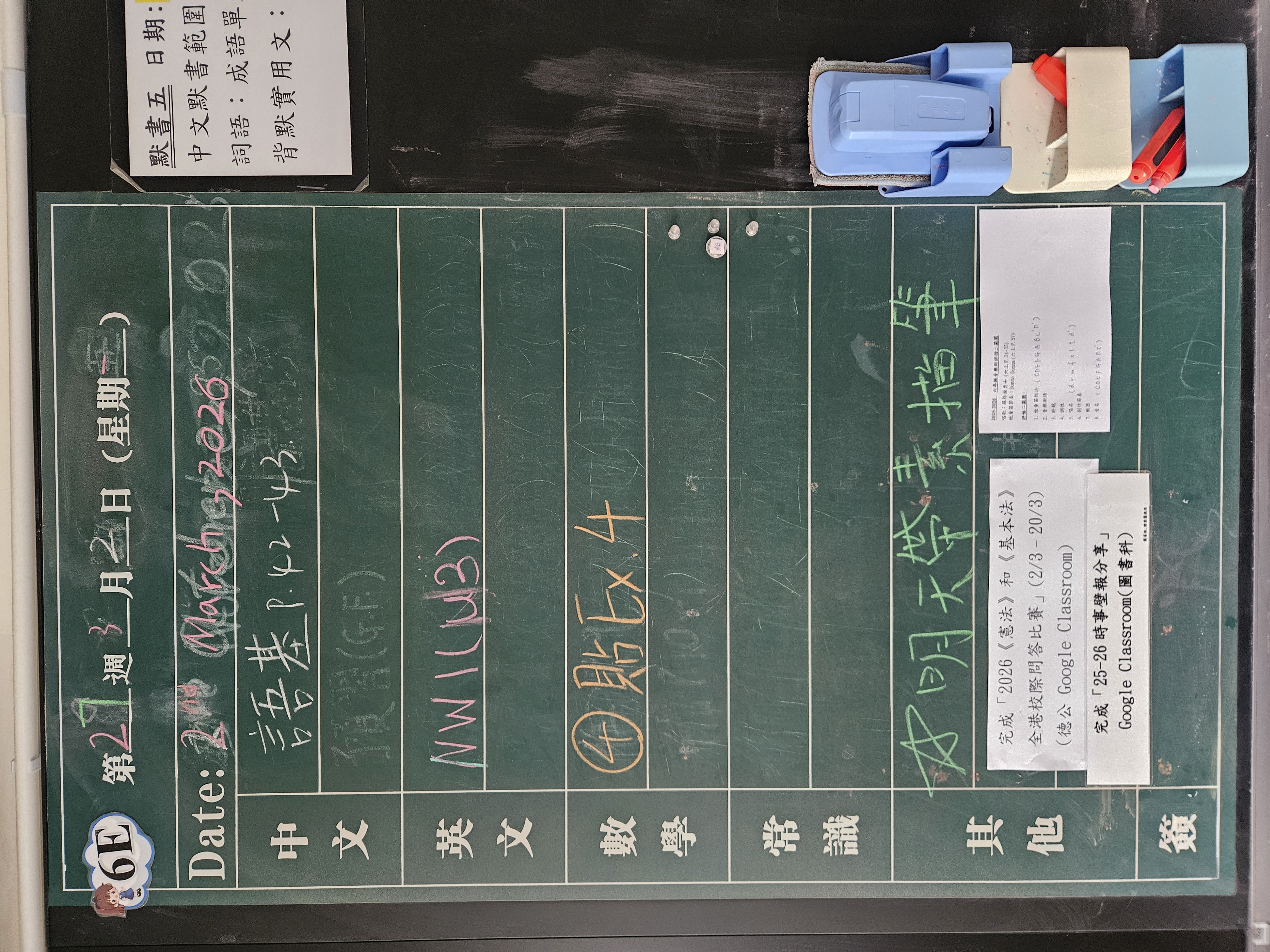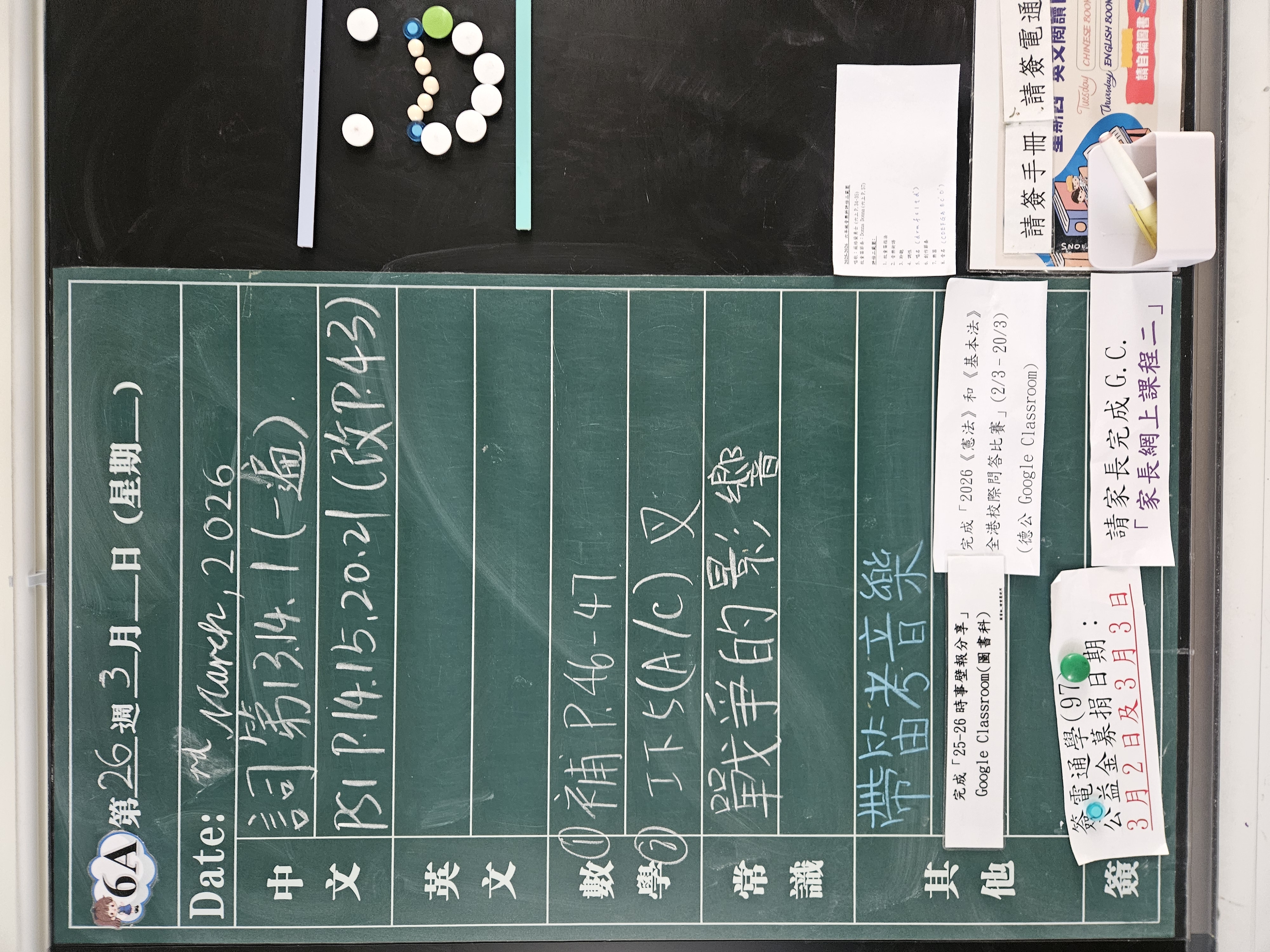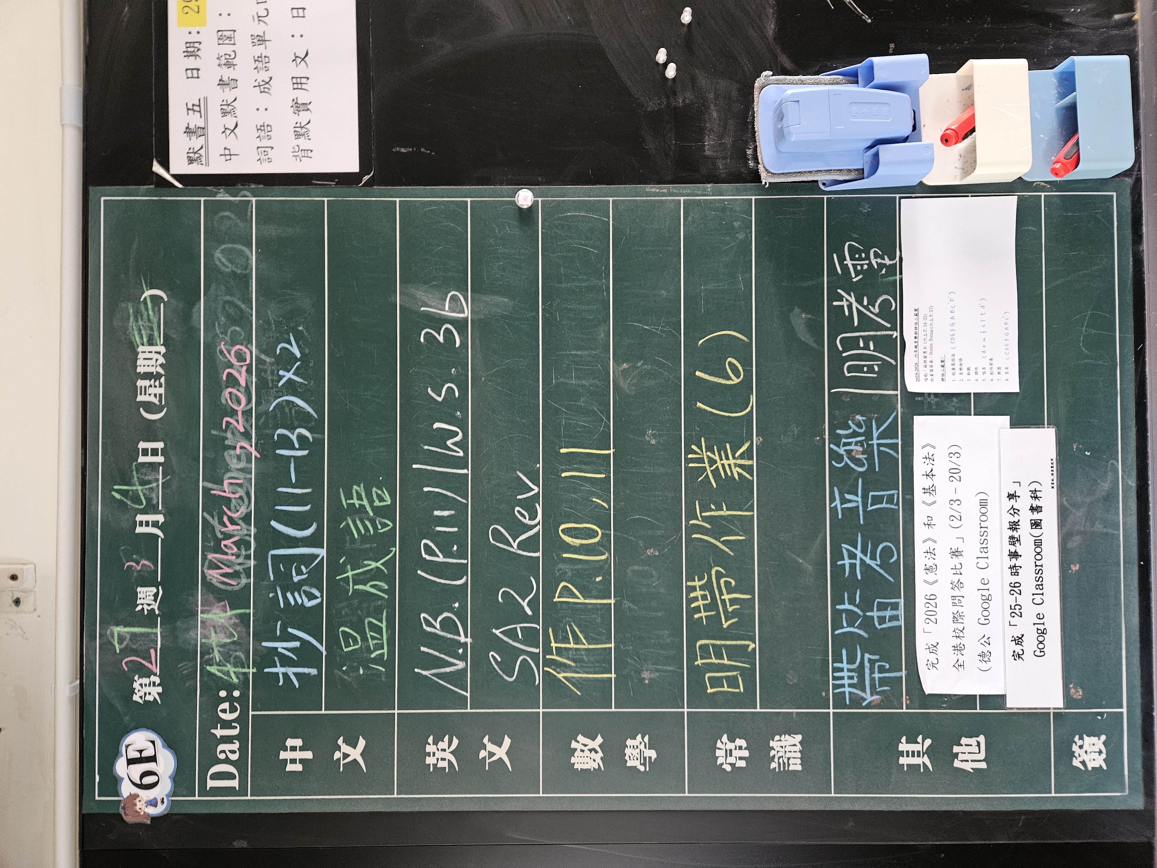 | 6A | 星期一 | 星期二 | 星期三 | 星期四 | 星期五 |