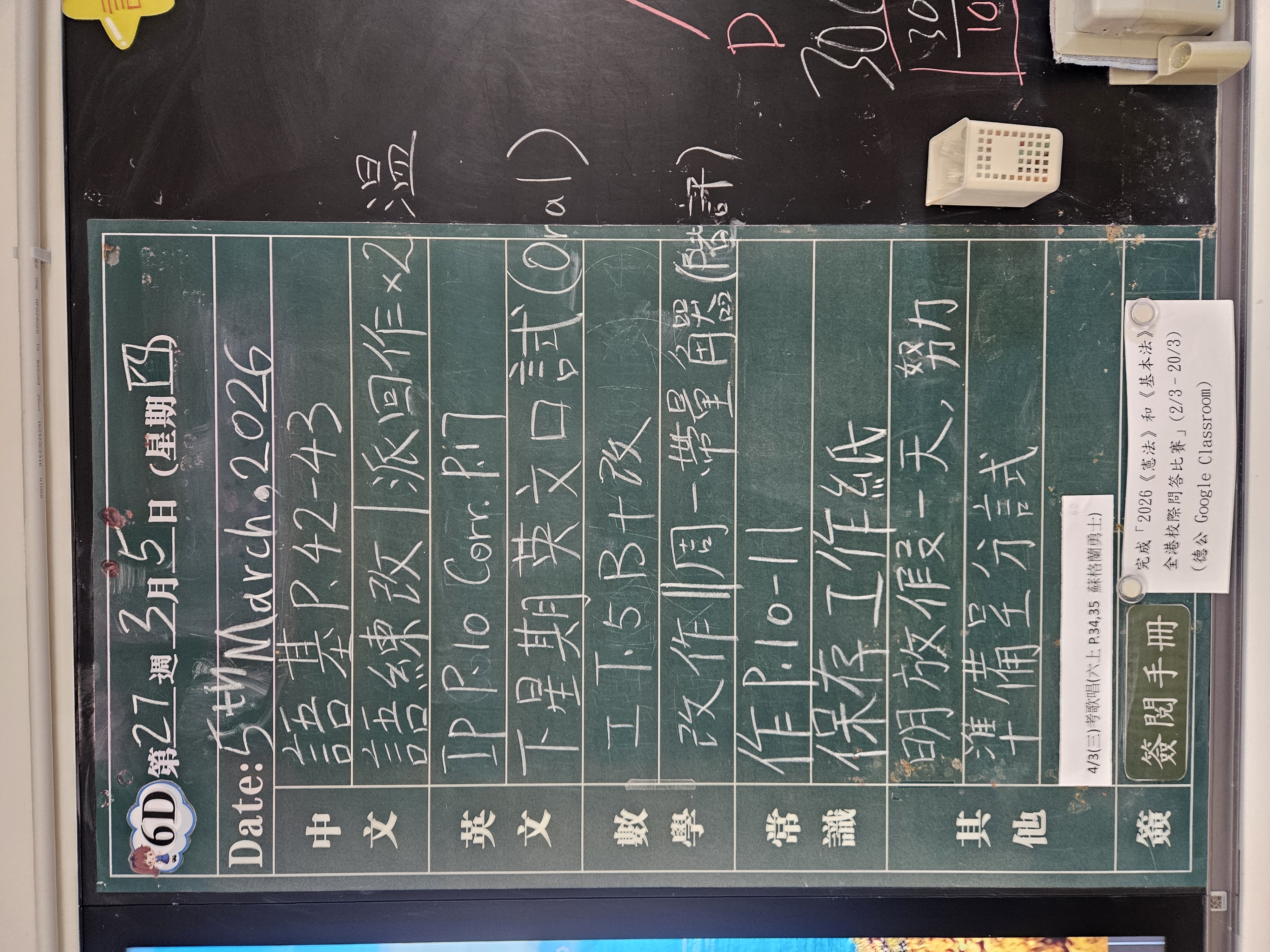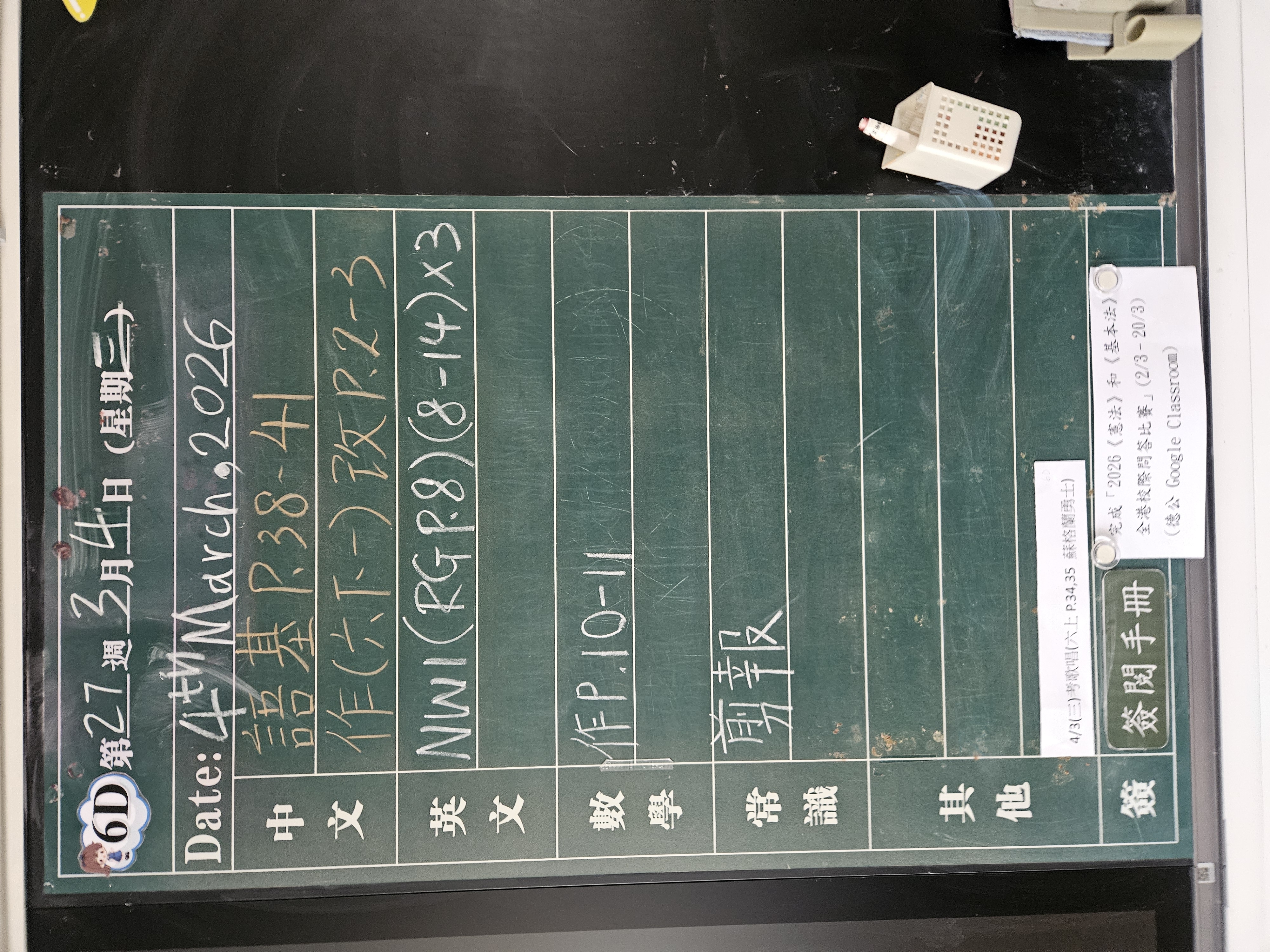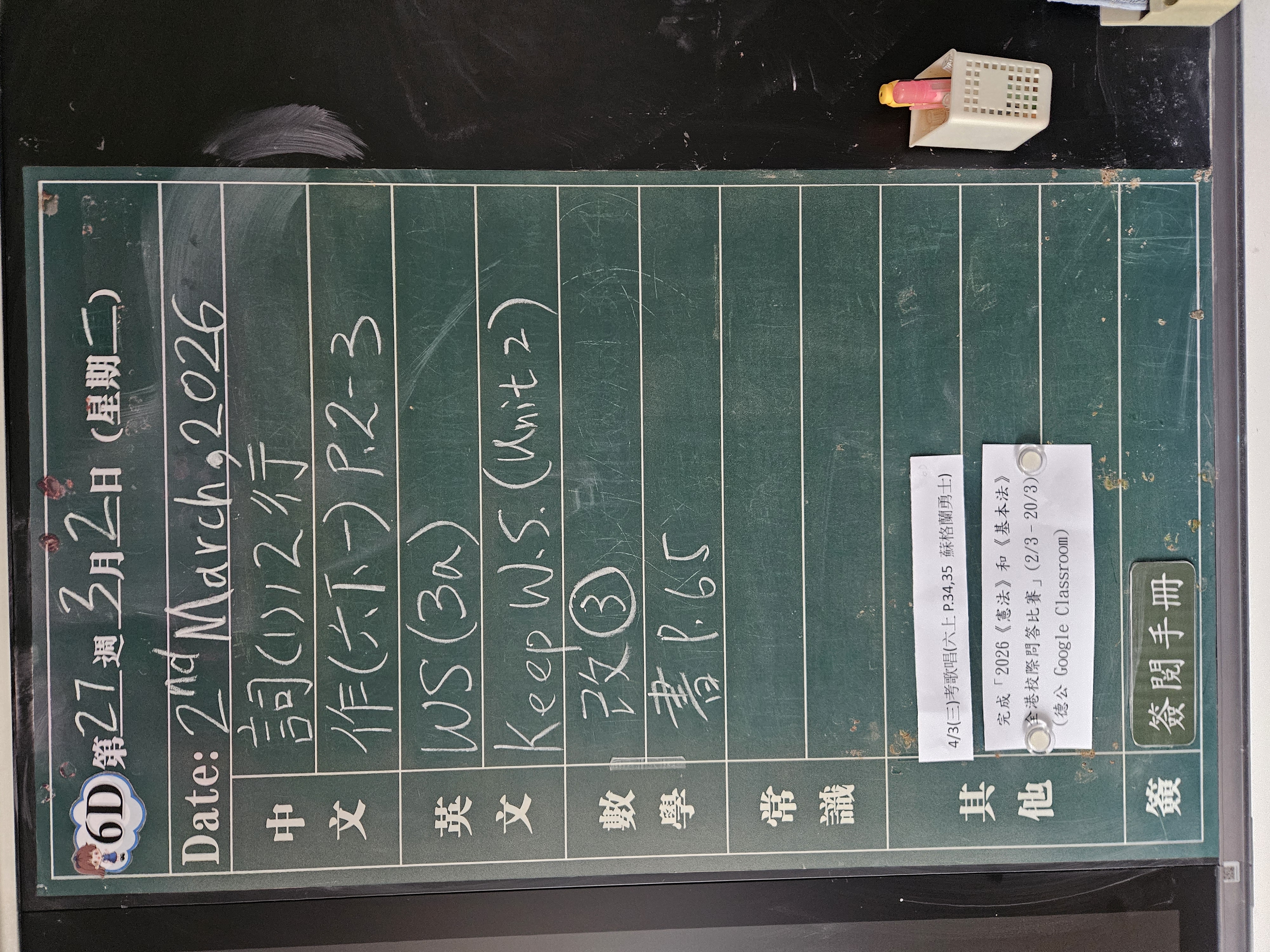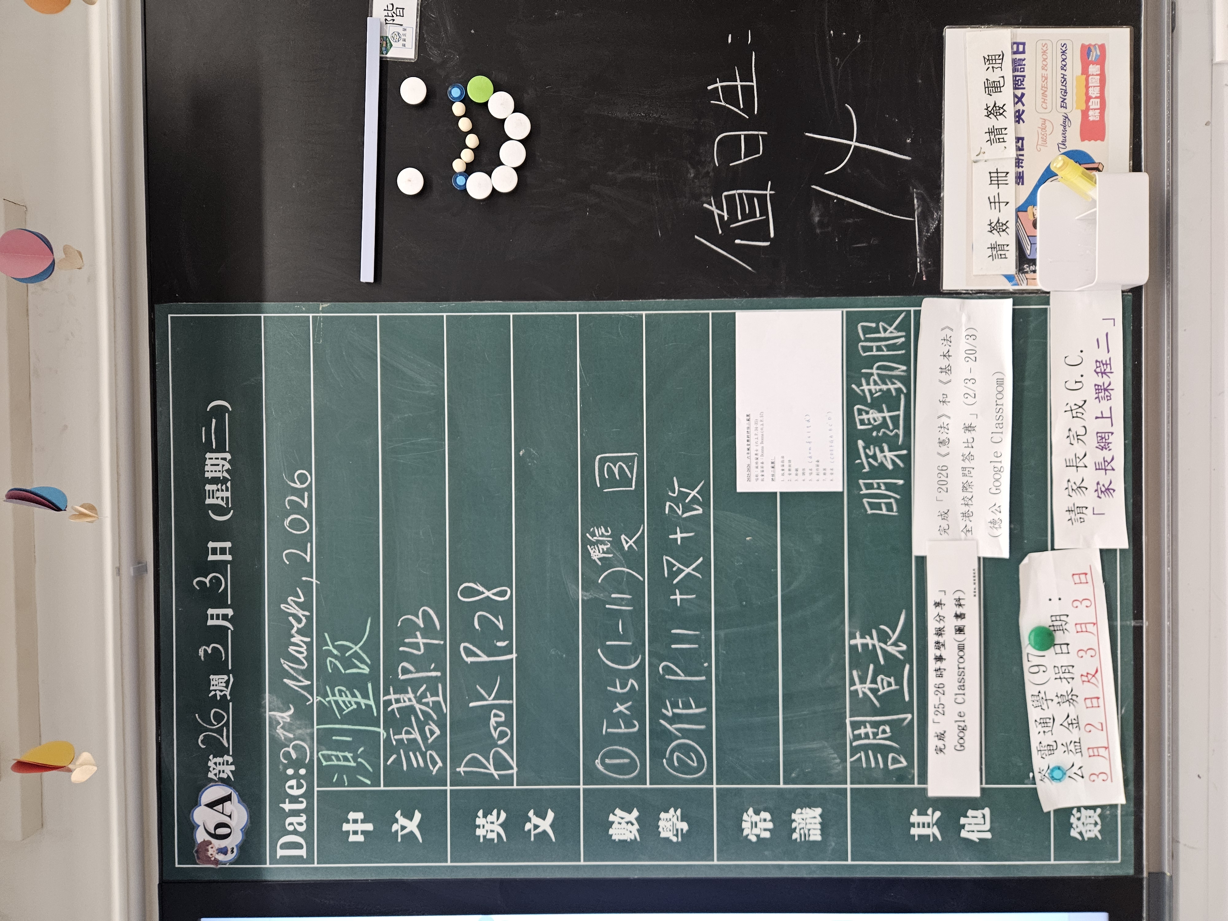 | 6A | 星期一 | 星期二 | 星期三 | 星期四 | 星期五 |