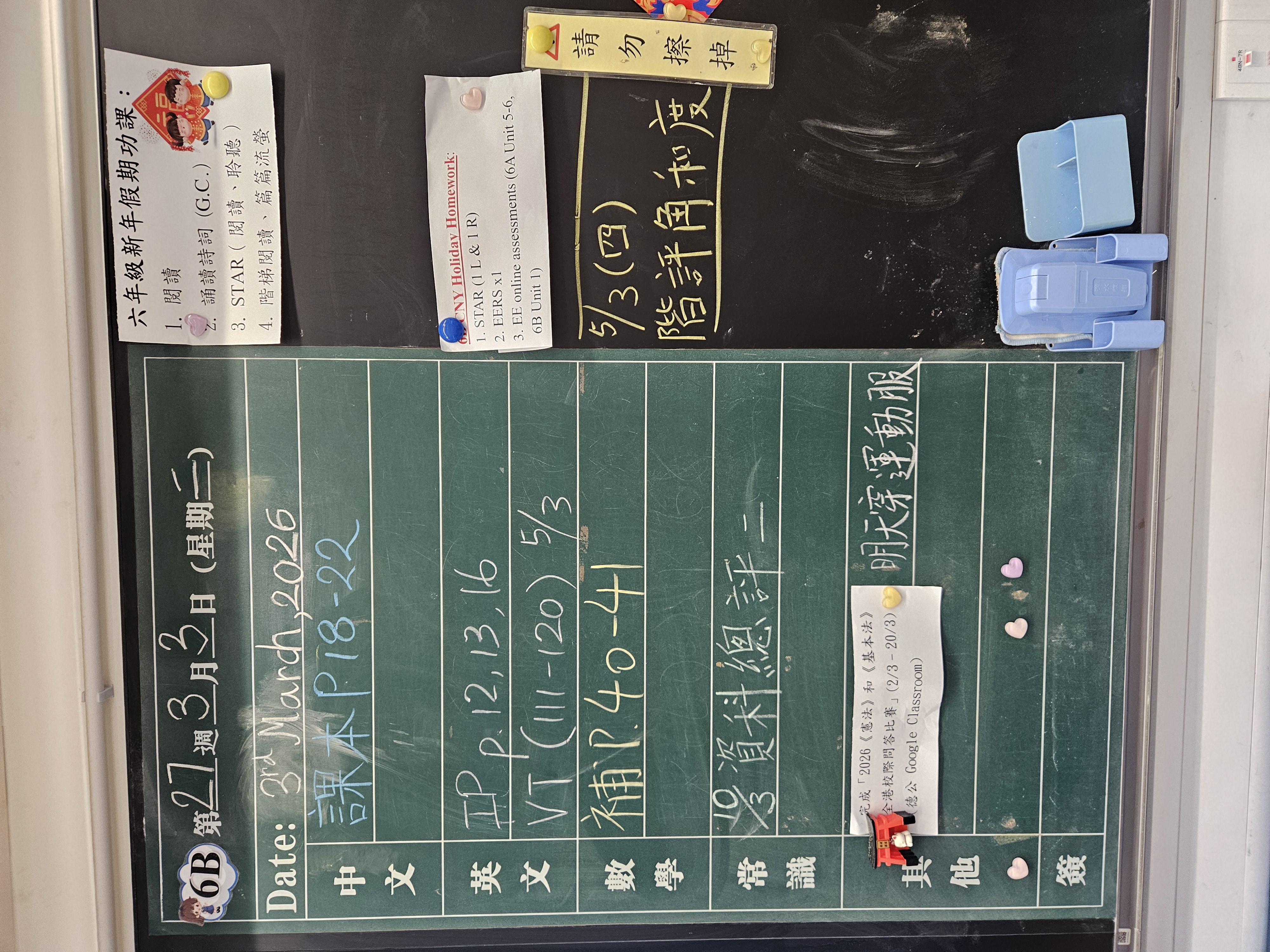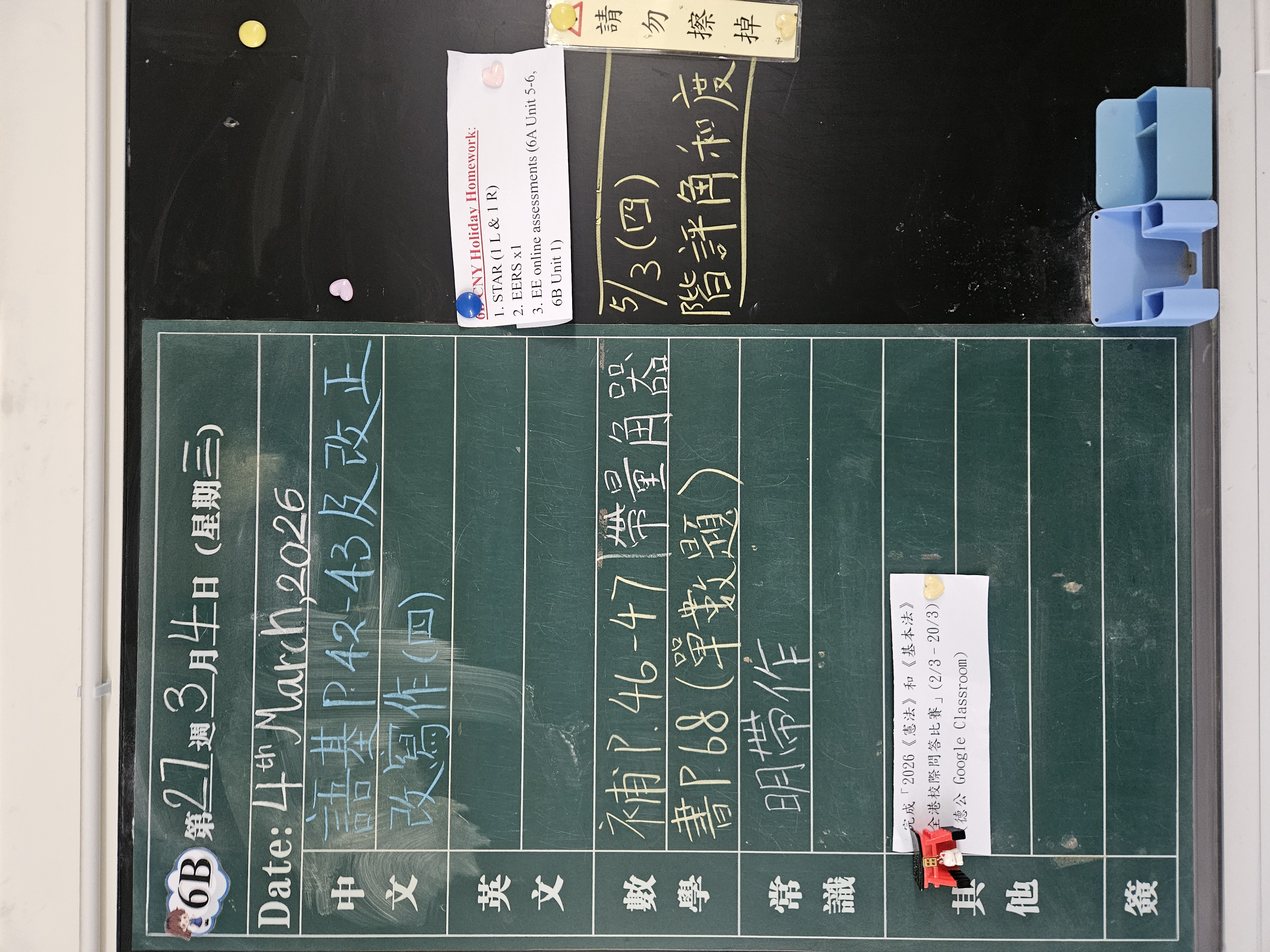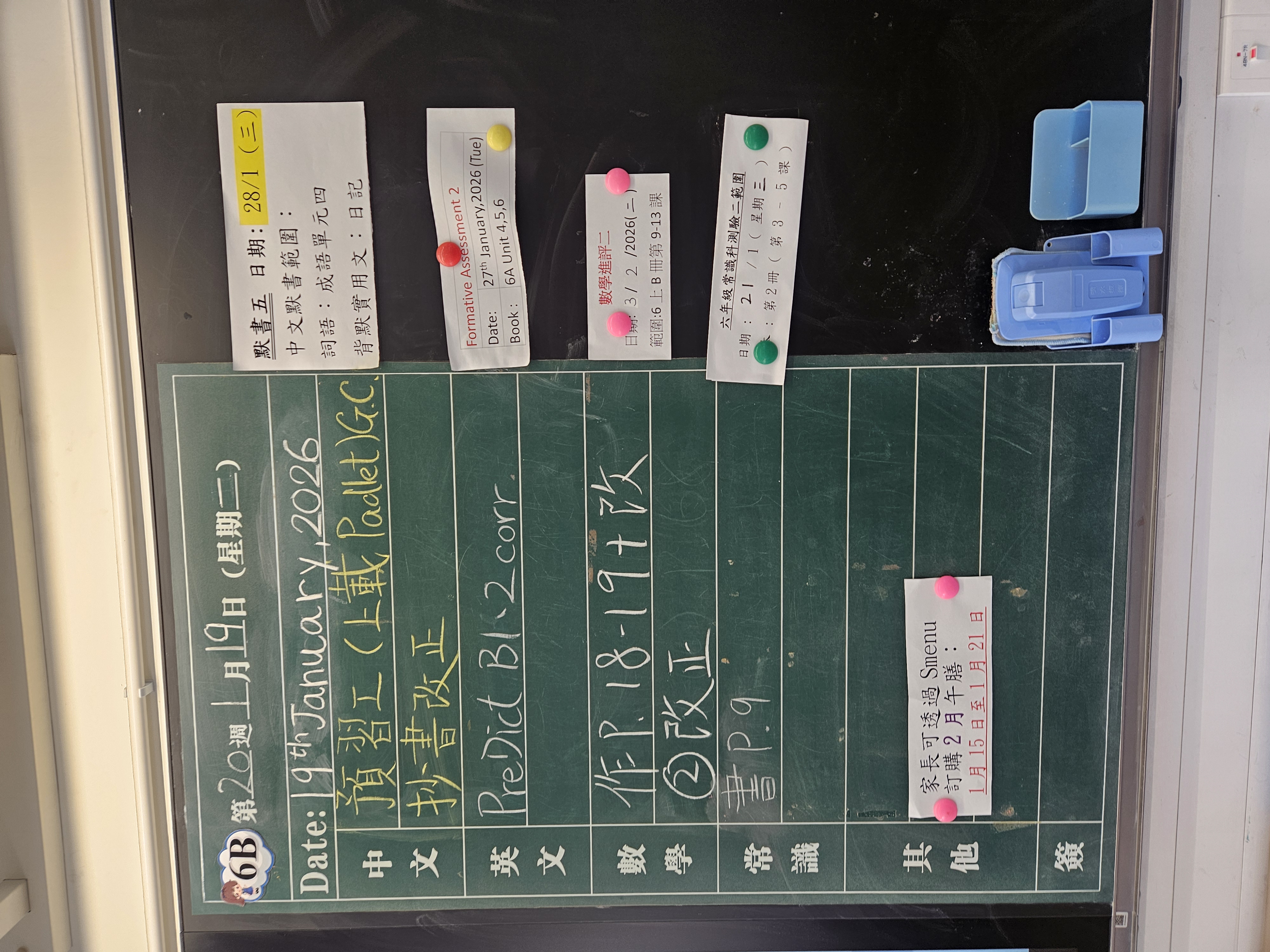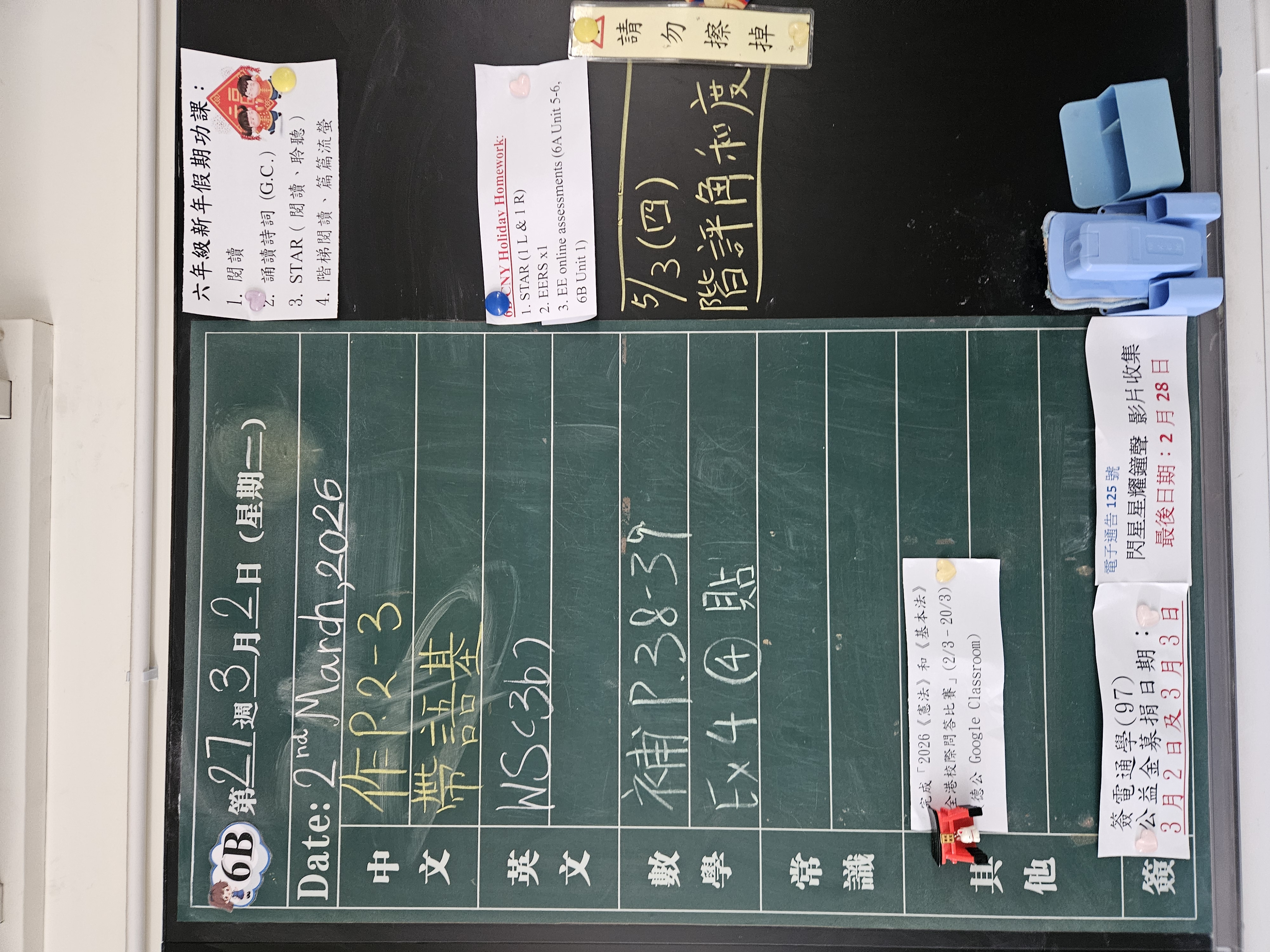 | 6B | 星期一 | 星期二 | 星期三 | 星期四 | 星期五 |